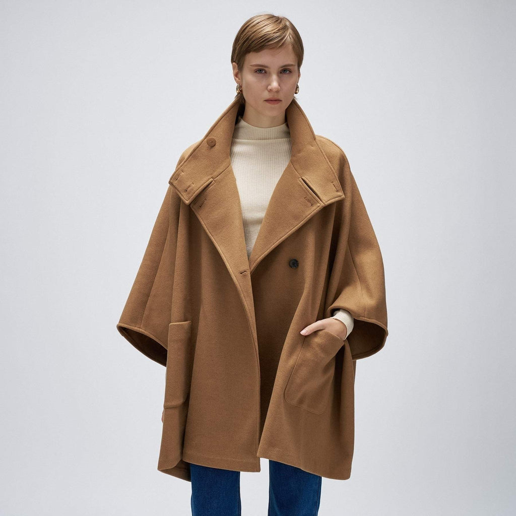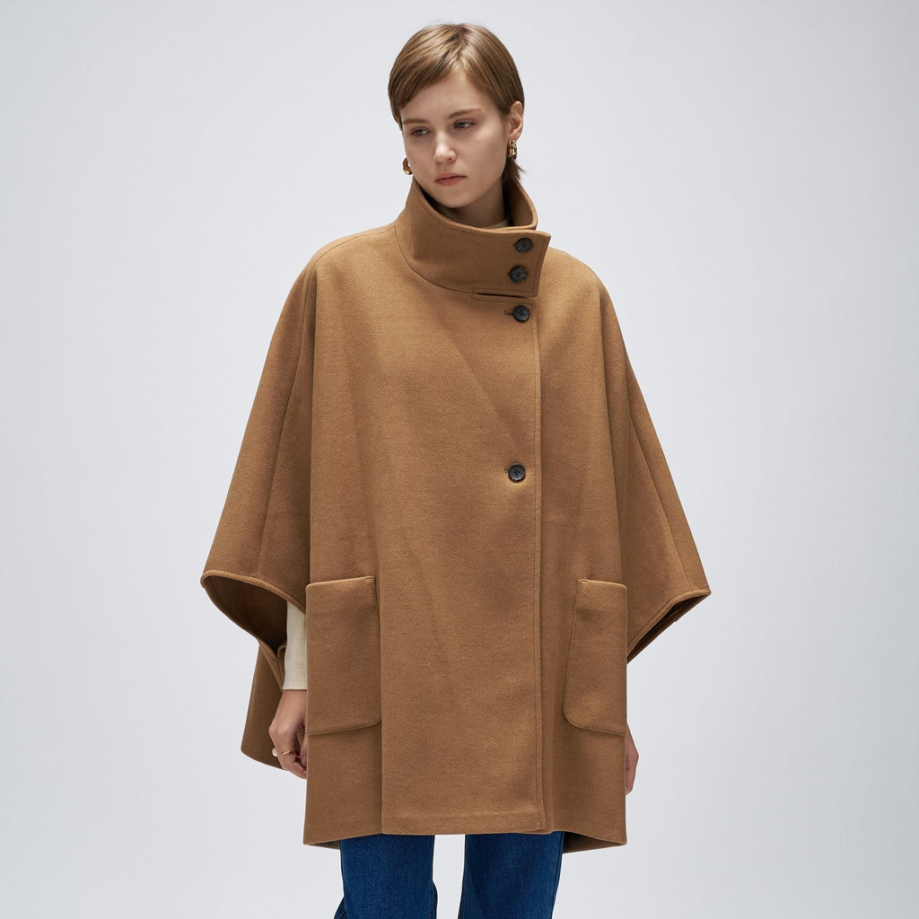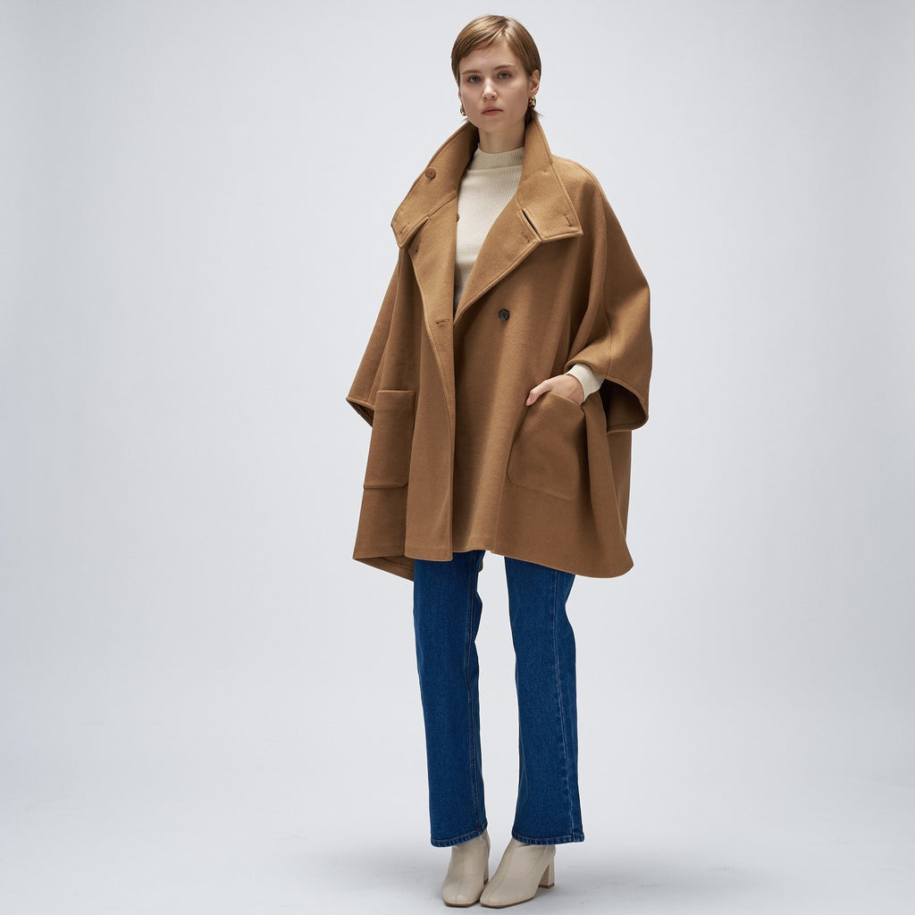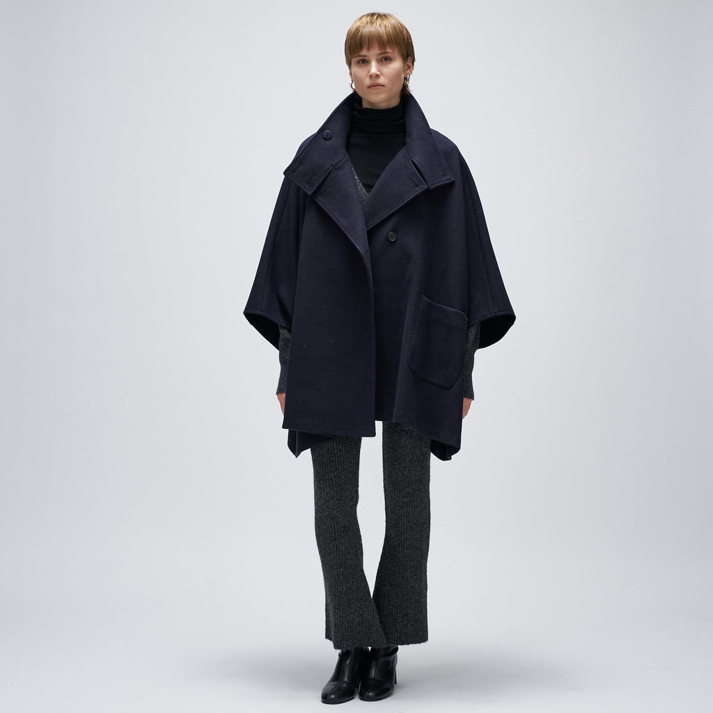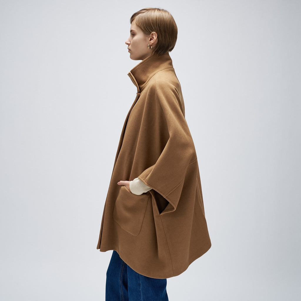 Cloenc 【Hand Washable】 Melton Jersey Cape Coat