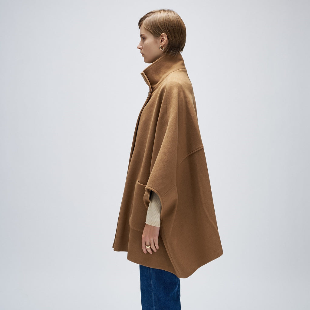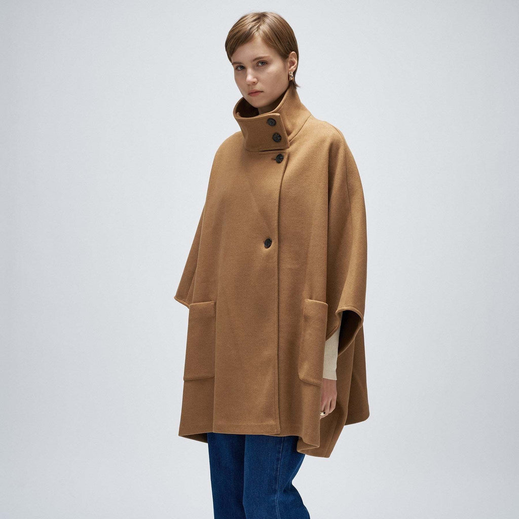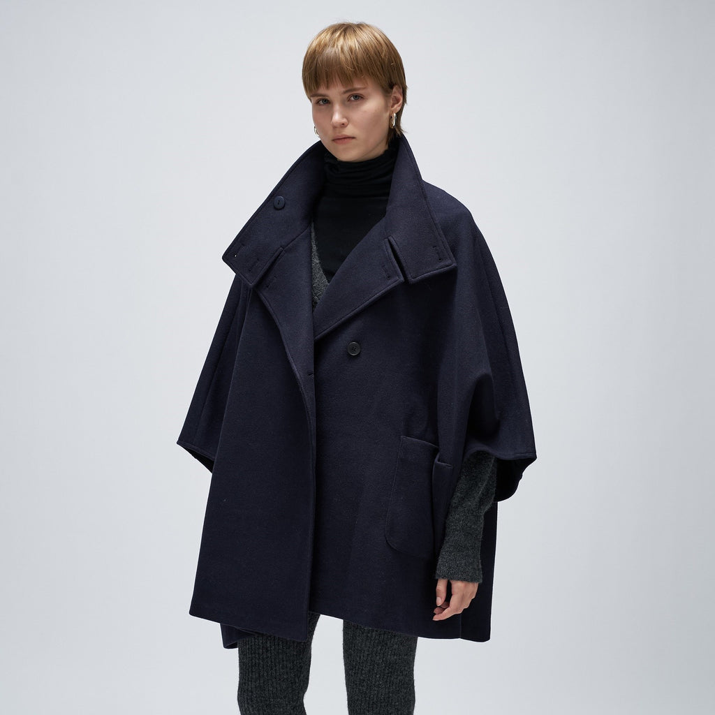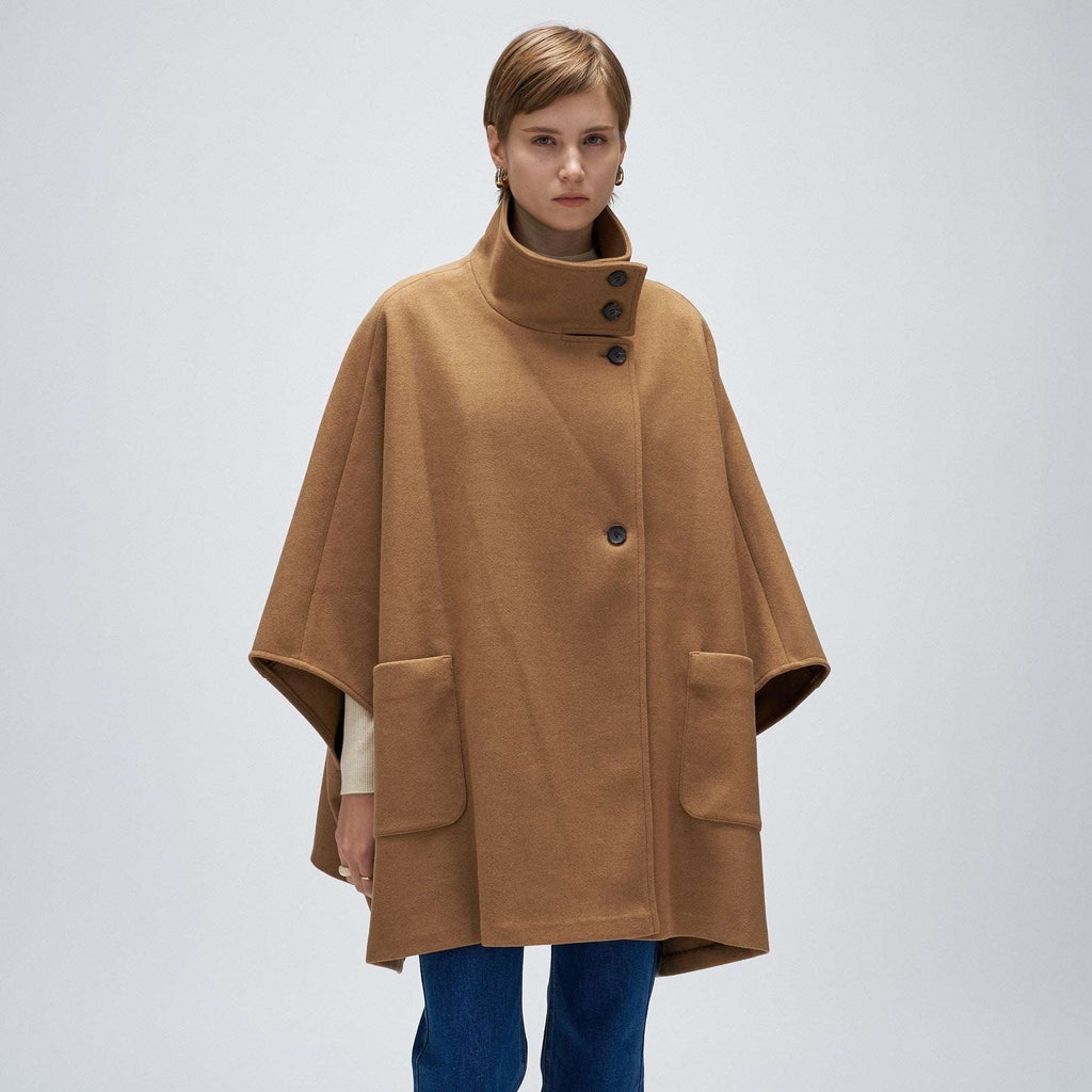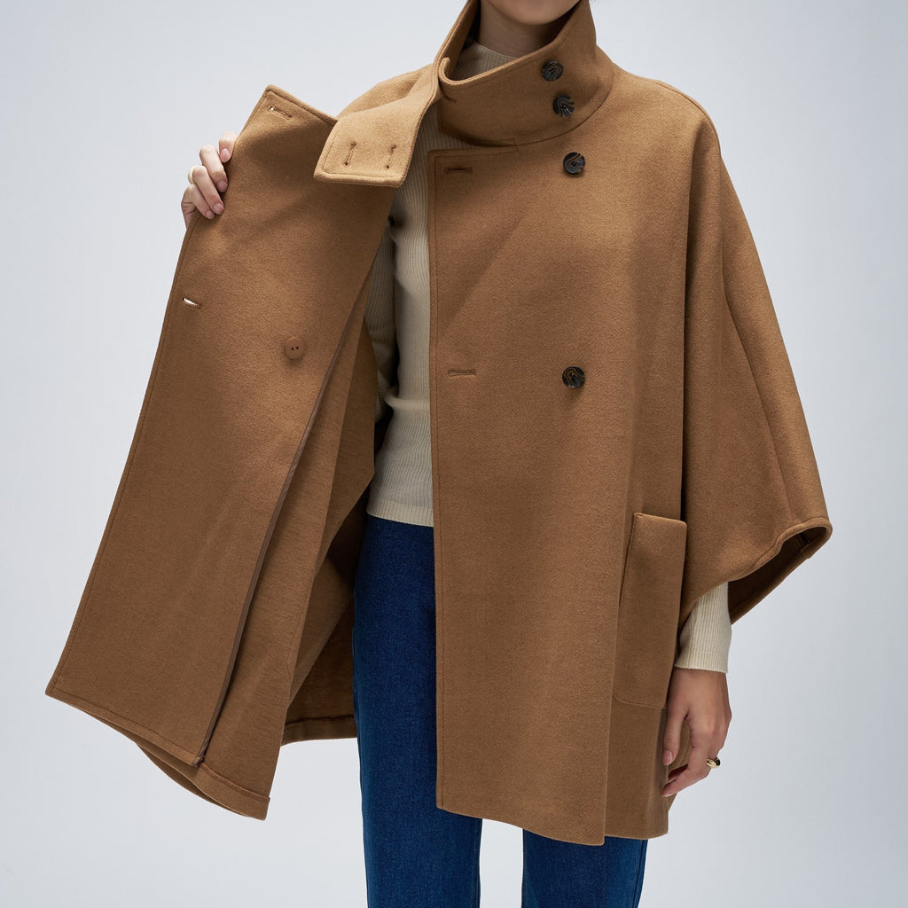 Cloenc 【Hand Washable】 Melton Jersey Cape Coat