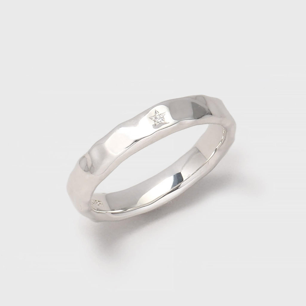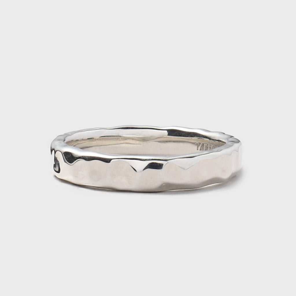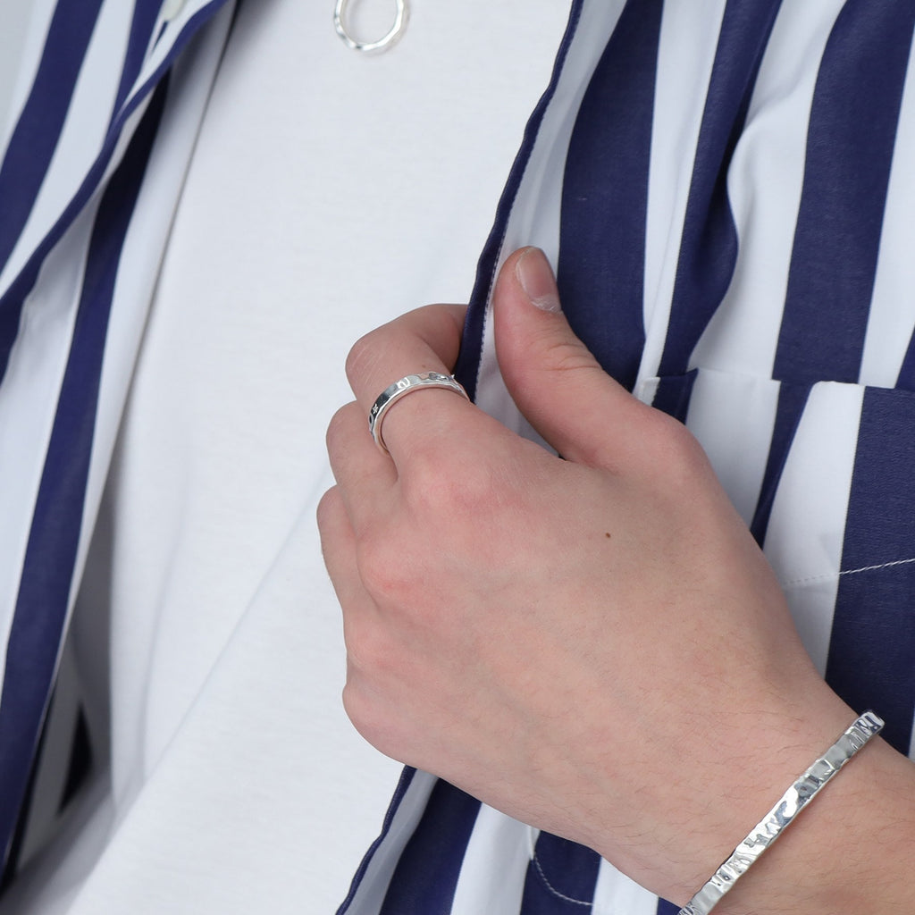 A simple yet beautifully curved silver ring with hammered finish on the surface.