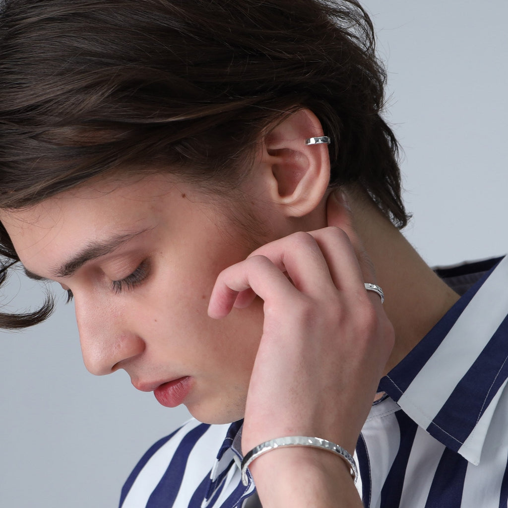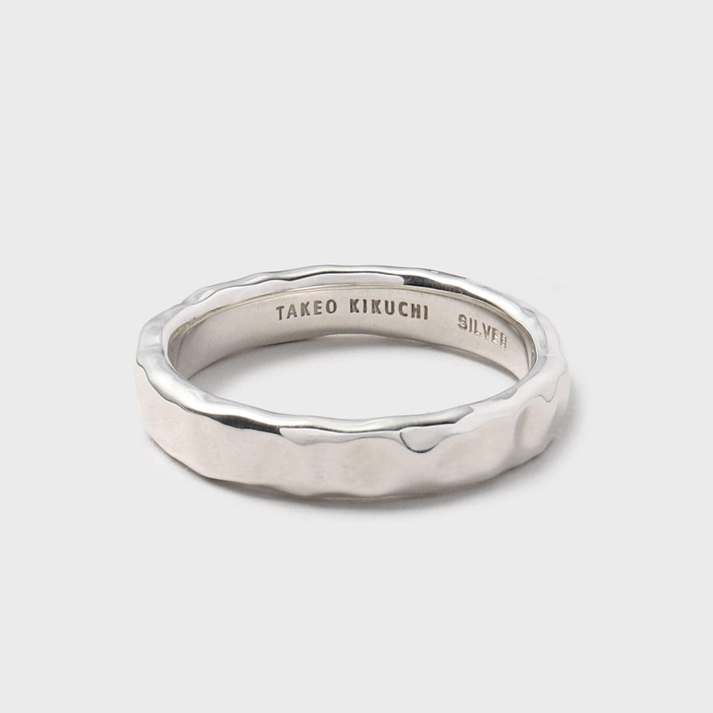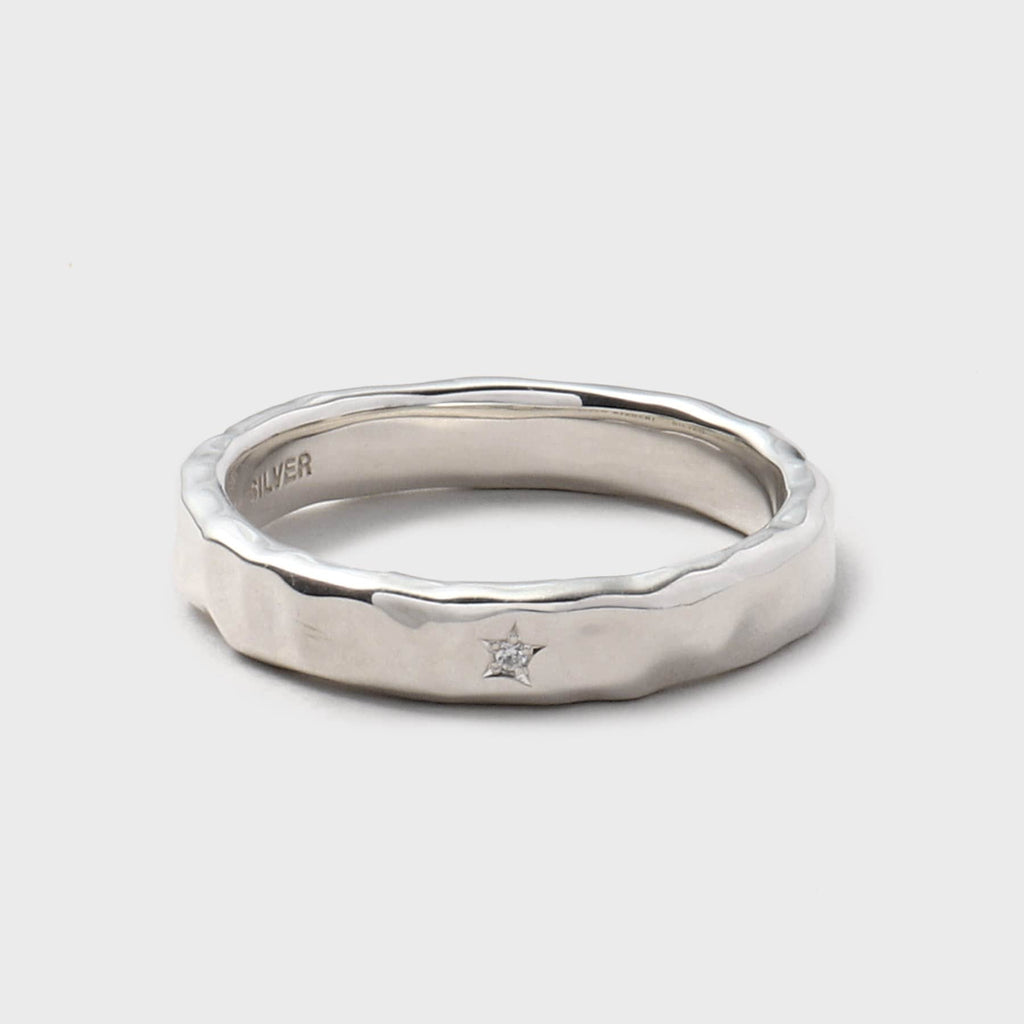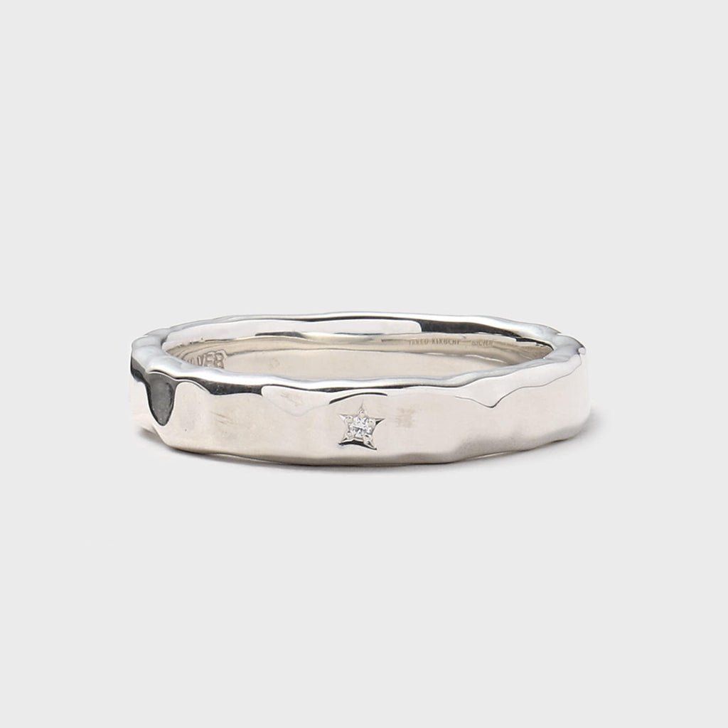 A simple yet beautifully curved silver ring with hammered finish on the surface.