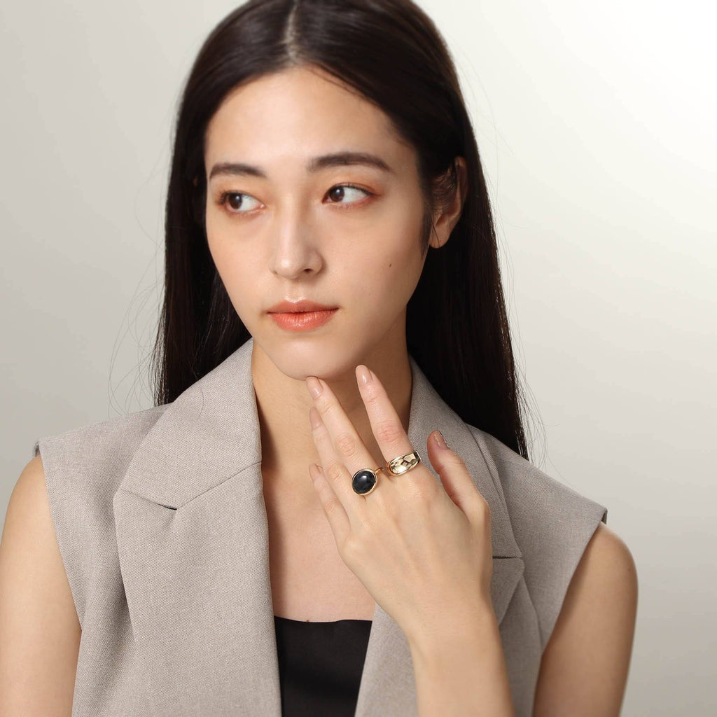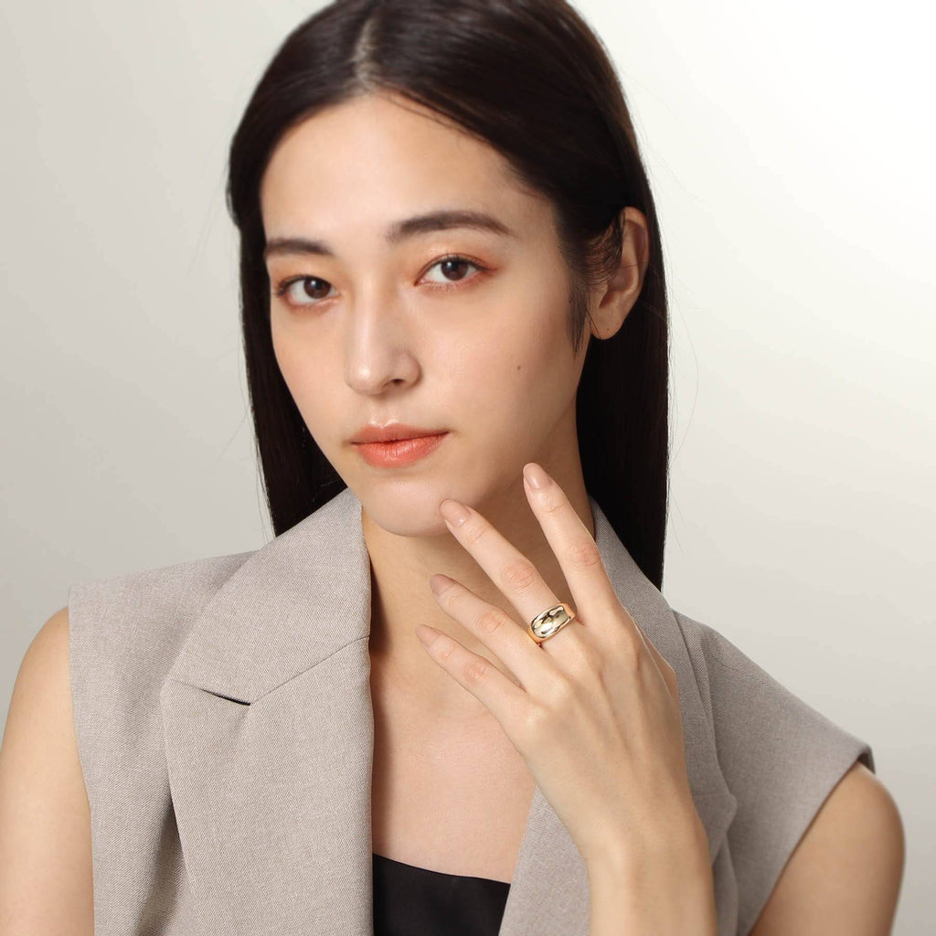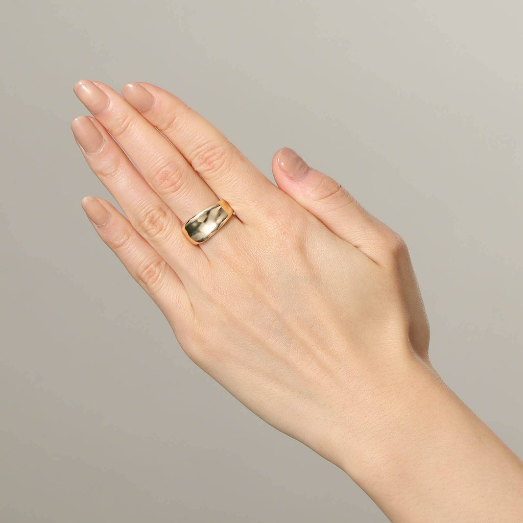 This large ring with a beautiful, nuanced shape gives your hand a fashionable and sophisticated look.