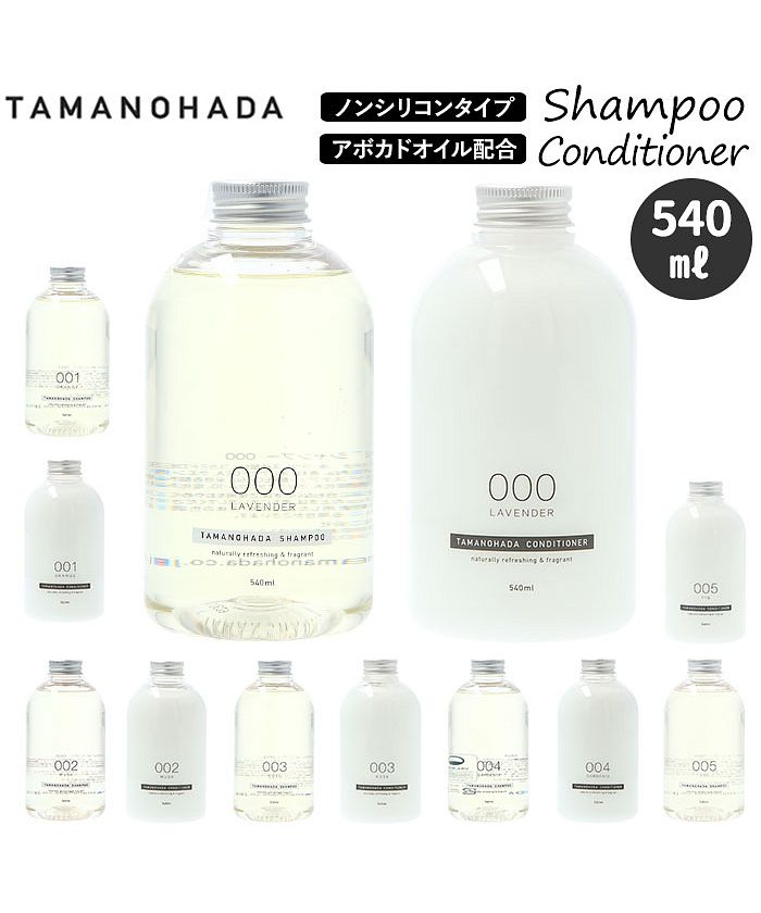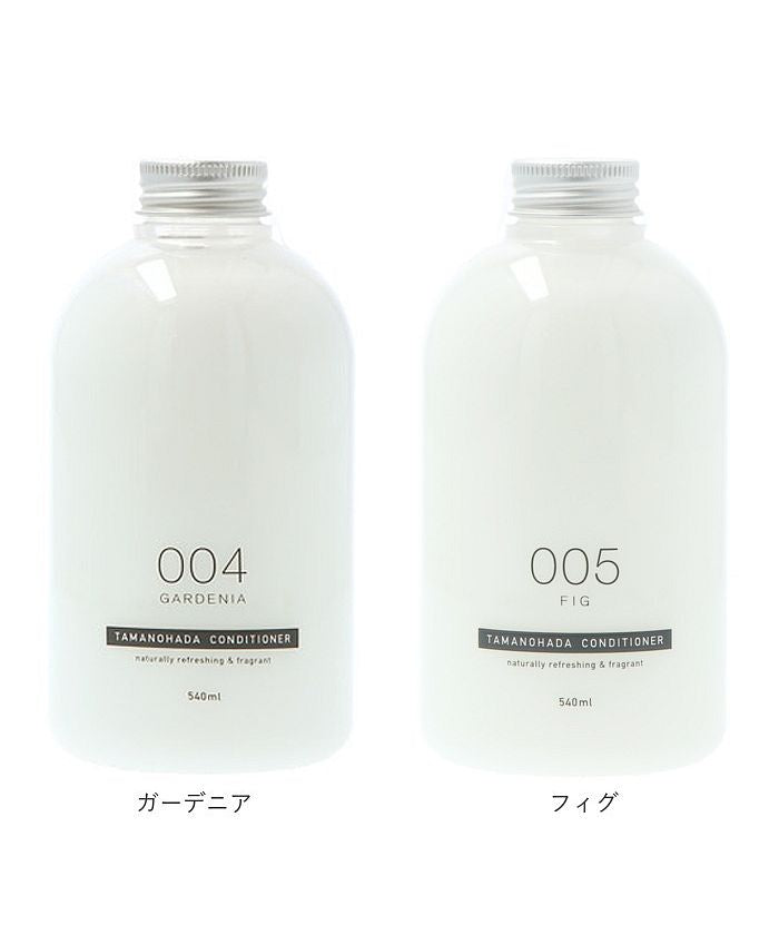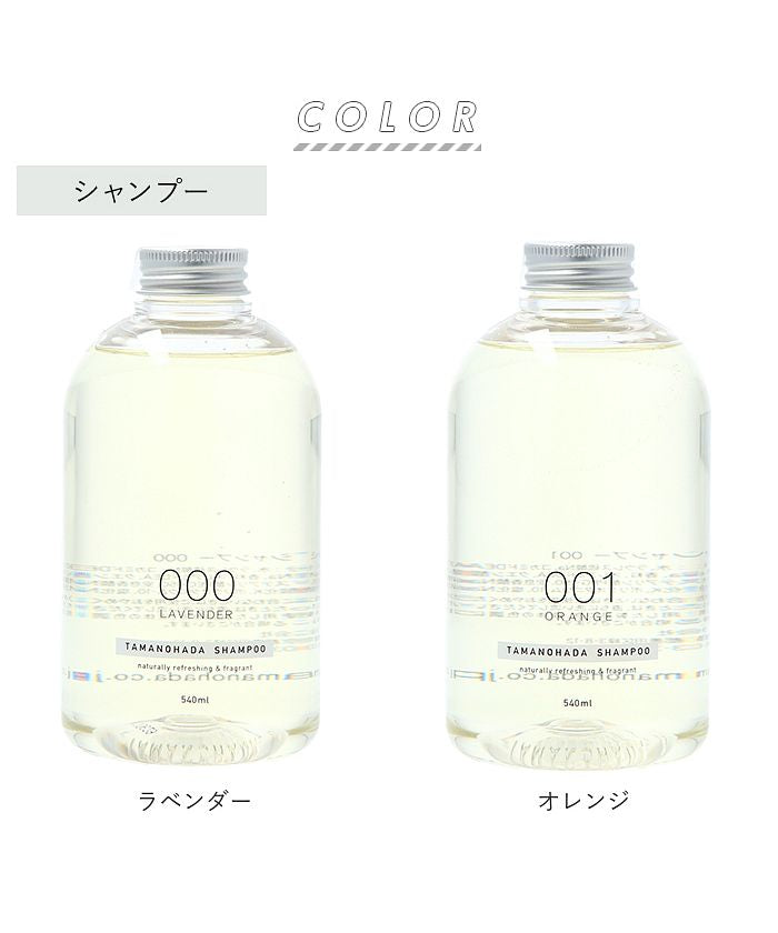 A shampoo that is gentle on the skin while retaining necessary cleansing power, and a conditioner that thoroughly cares for the hair. The hair care items from "TAMANOHADA" are here! "TAMANOHADA" is a brand of Tamano Hada soap that continues to cherish the essence of soap. The containers are designed with gentle curves to evoke a kind feeling just by looking at them while taking a bath. The transparent PET bottle allows you to easily check the remaining amount. (*This product does not come with a dispenser.) 【Shampoo】 Enjoy the fragrance♪ A non-silicone type fragrance shampoo based on plant-based cleansing ingredients. It thoroughly cleanses the hair and scalp with rich, fine bubbles. 【Conditioner】 Contains moisturizing ingredient avocado oil. A conditioner that provides shine and moisture to damaged hair. It finishes the hair softly and leaves a pleasant fragrance for the next day. Based on six types of high-quality essential oils, it features a layered fragrance with depth. Enjoy the happiness filled with a high-quality scent that continues from top to middle to last! Lavender… A floral and elegant scent blended with lavender essential oil and rosemary oil. Orange… Based on the flowers of bitter orange, blended with the slight bitterness of petitgrain. A fragrance that spreads the freshness of new green within a light floral tone. Musk… An elegant and refreshing scent blended with elegant musk in a transparent sheer floral fragrance. Rose… Emphasizes the sweetness of the gorgeous rose scent. A fragrance that creates an elegant yet sweet impression. Gardenia… A fresh sweet scent blended with lemon oil and ylang-ylang oil, featuring the sweet and sensual scent of gardenia flowers. Fig… A fruity scent blended with the freshness and sweet citrus of fig fruit and rosewood oil.