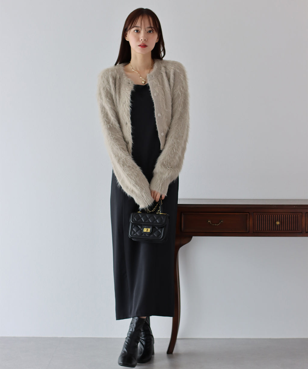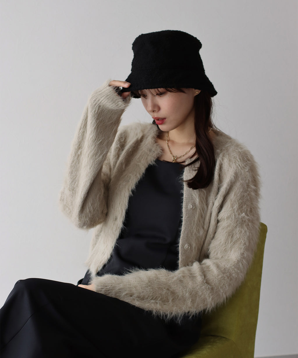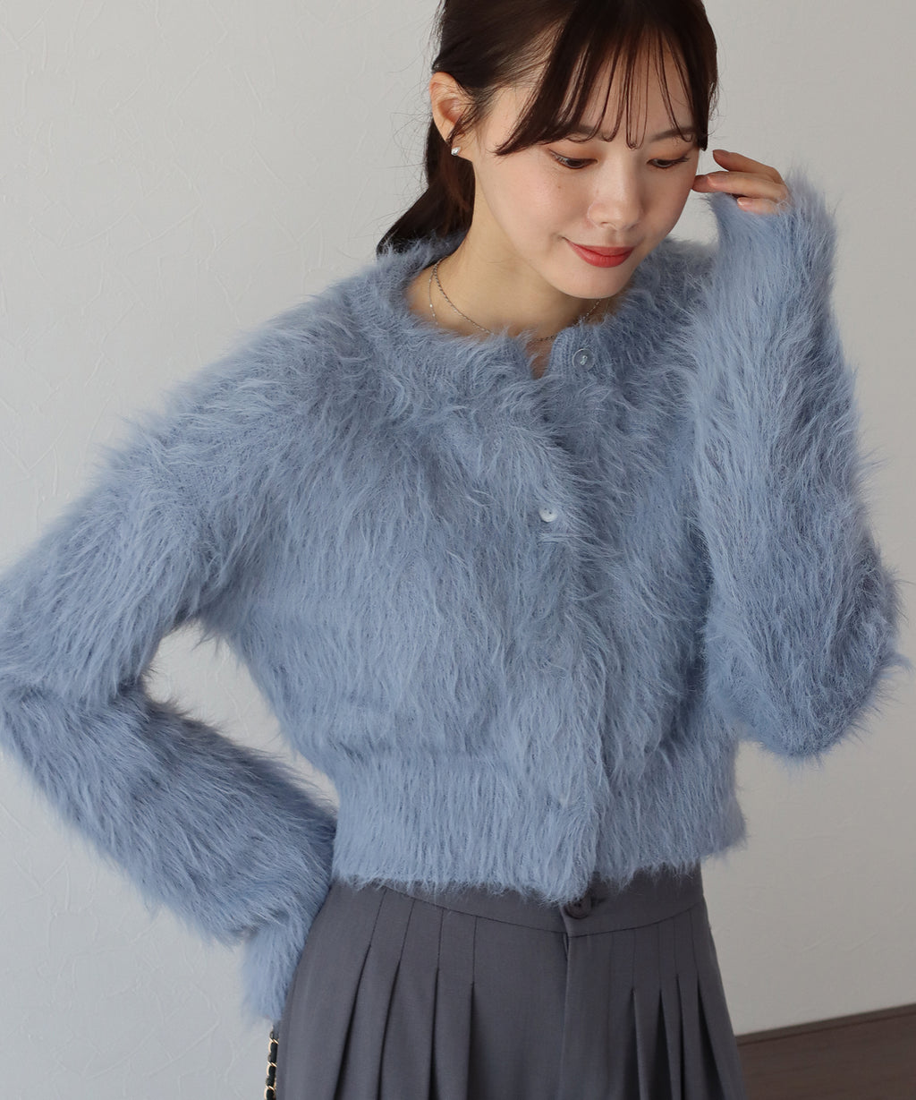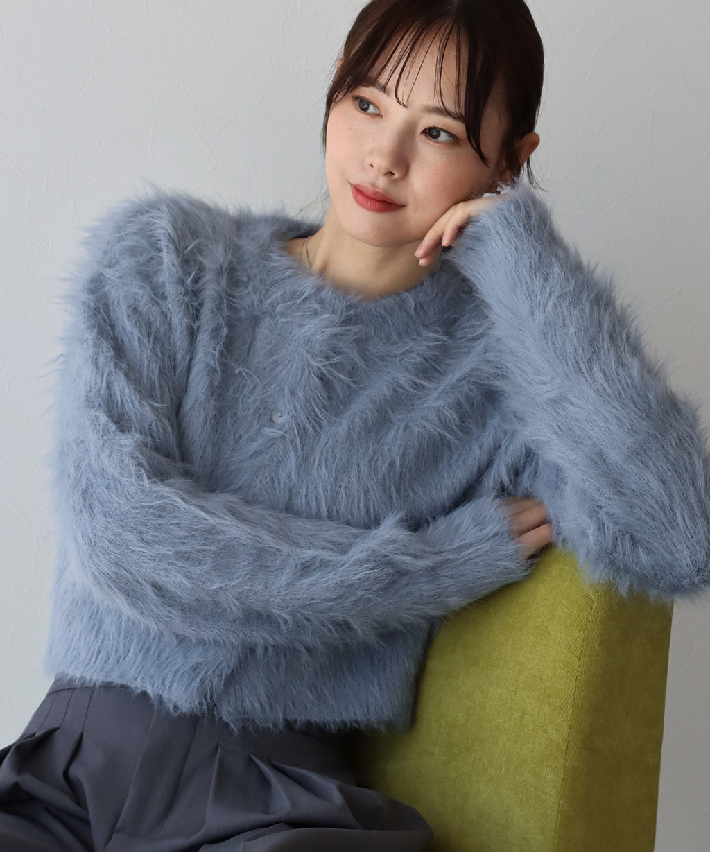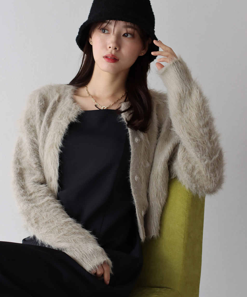 A shaggy cardigan that enhances the seasonal mood just by wearing it.