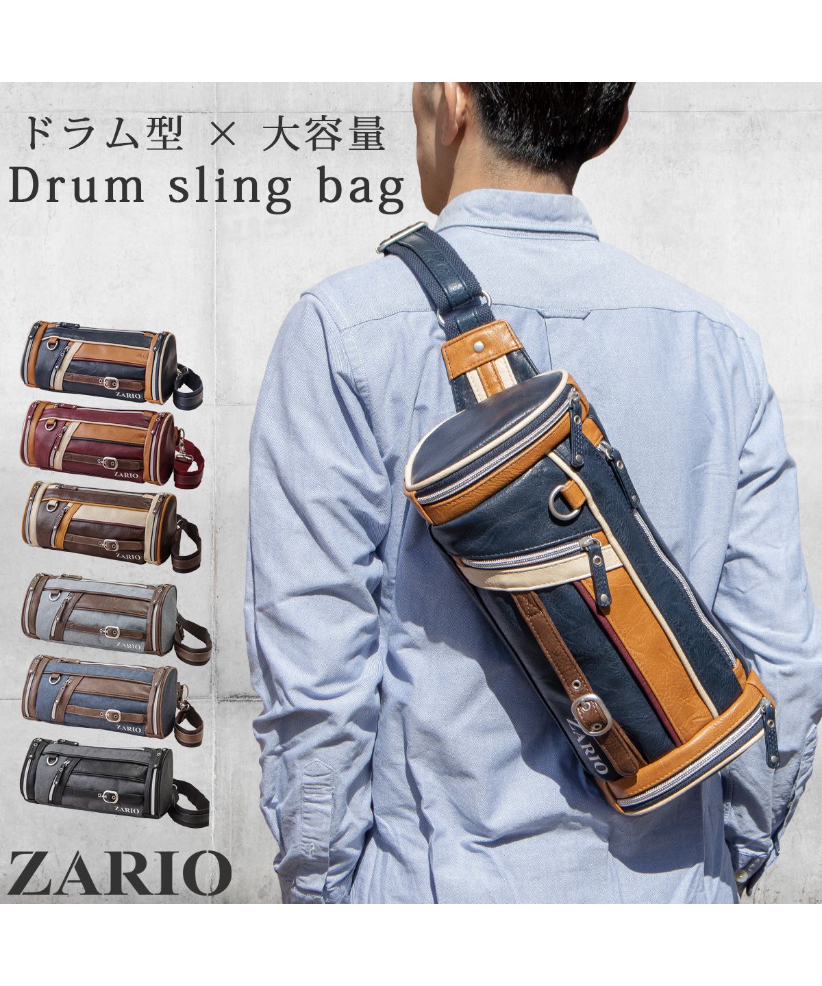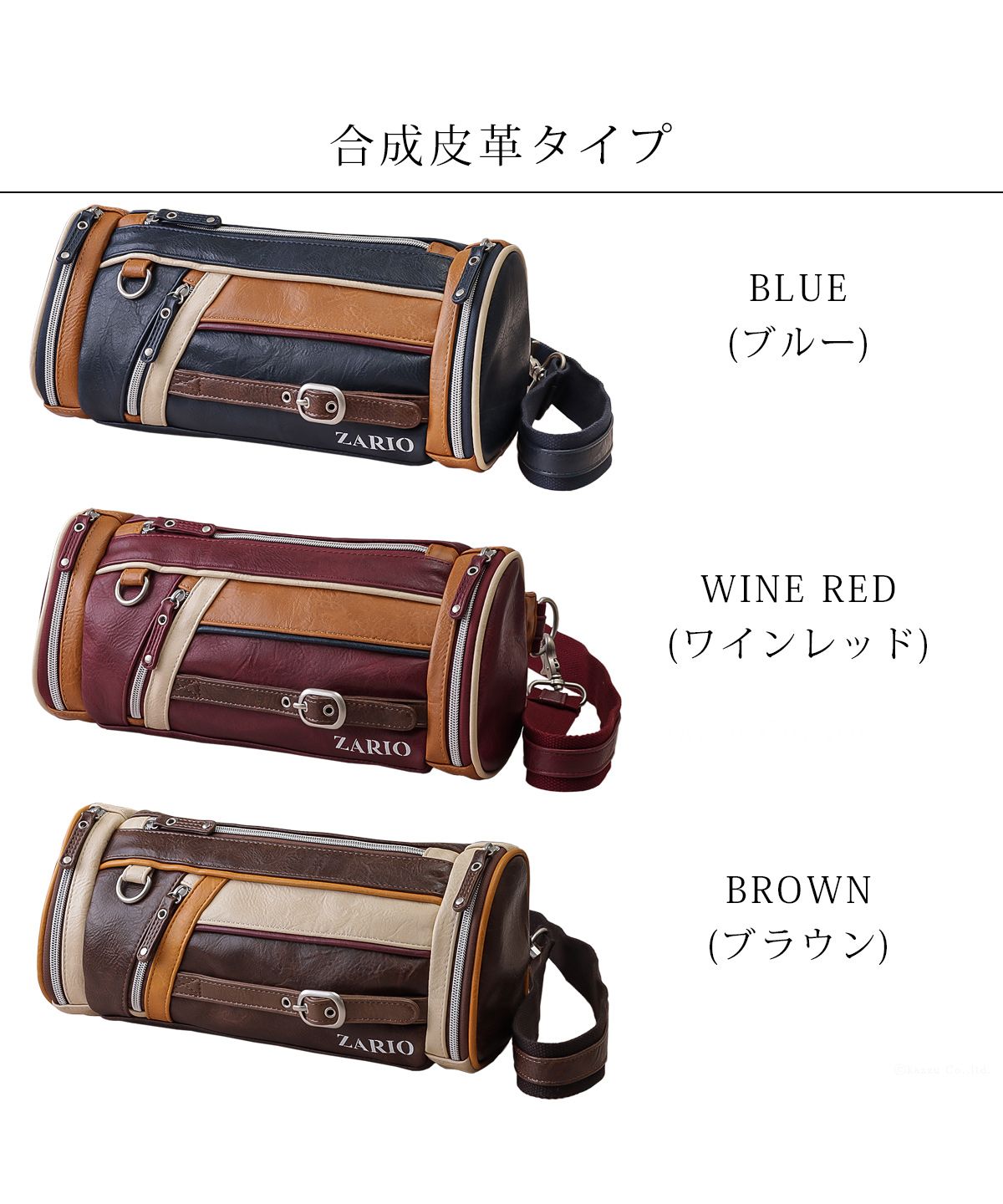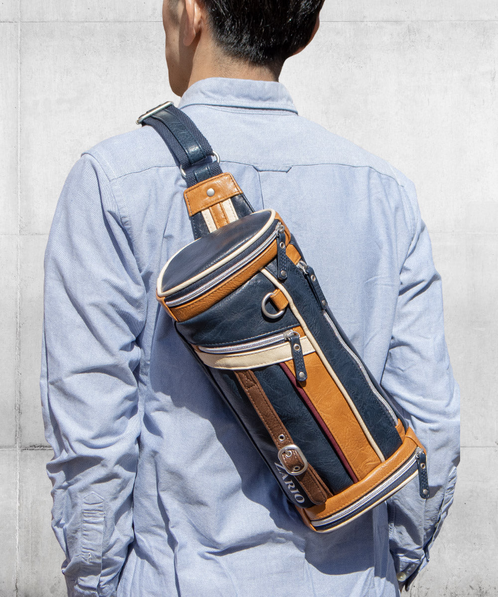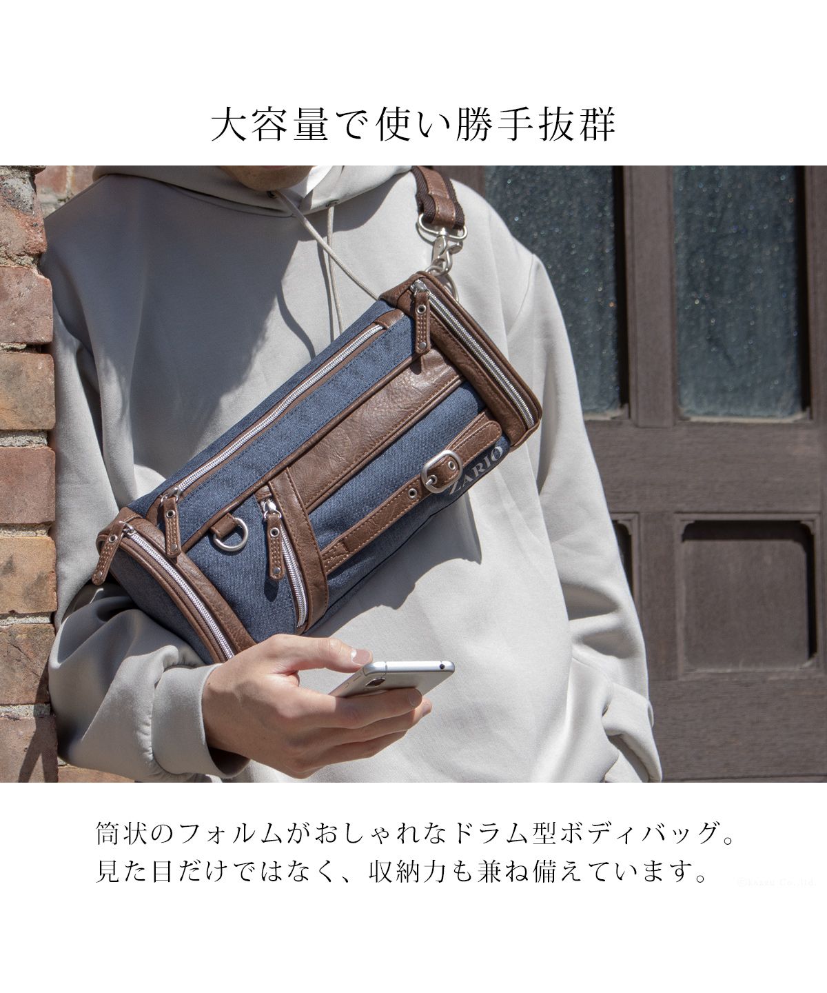[Blue][Aoi][Red][Aka][Wine Red][Brown][Cha][Urban Gray][Azul Blue][Similar Black][Gray][Grey][Black] Body Bag Drum Type Men's Frontline Series Large Capacity Stylish Synthetic Leather Melange Nylon Cylindrical Lightweight Male Brand ZARIO ZARIO Town Use Outdoor Festival Travel ZA-1001