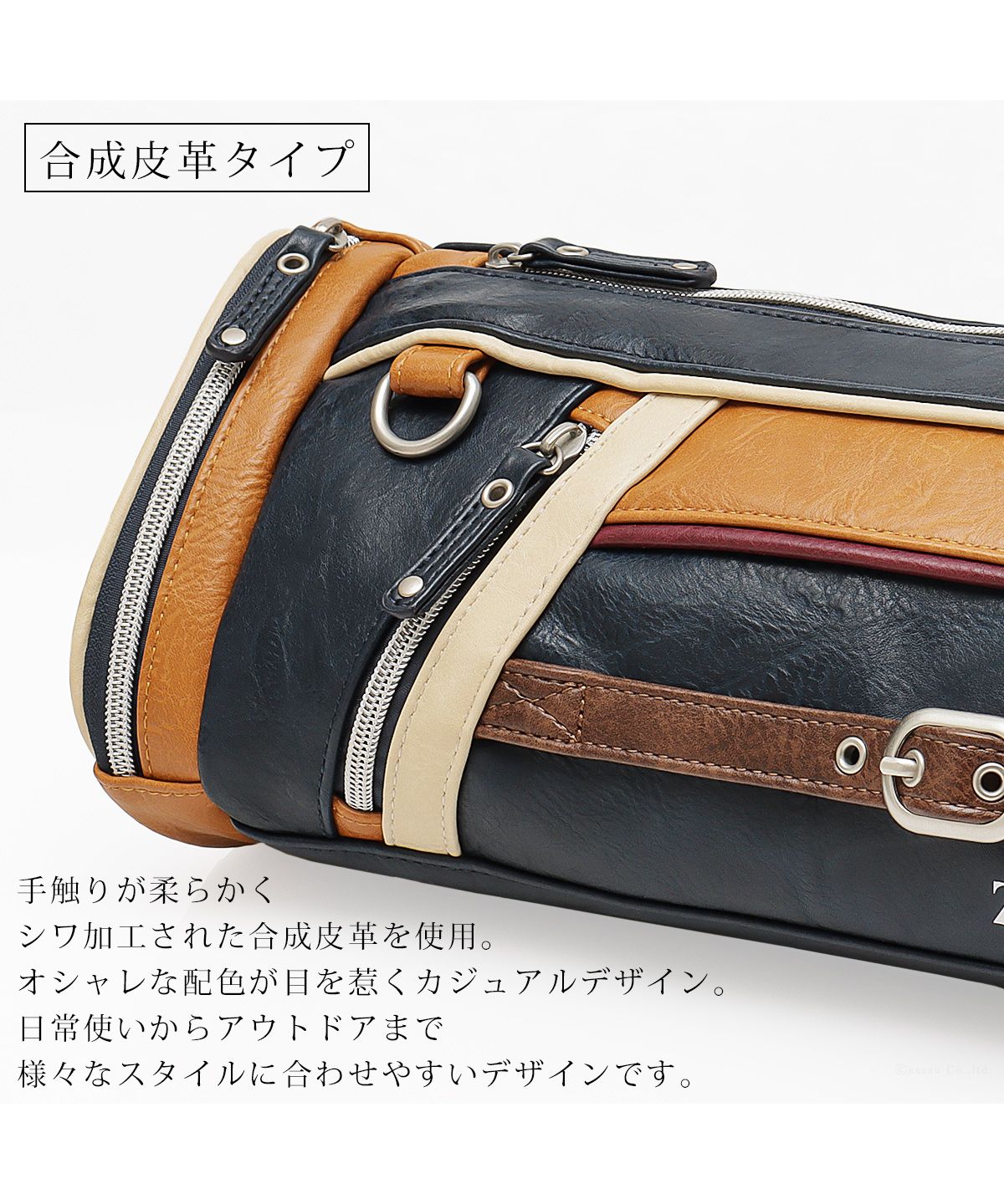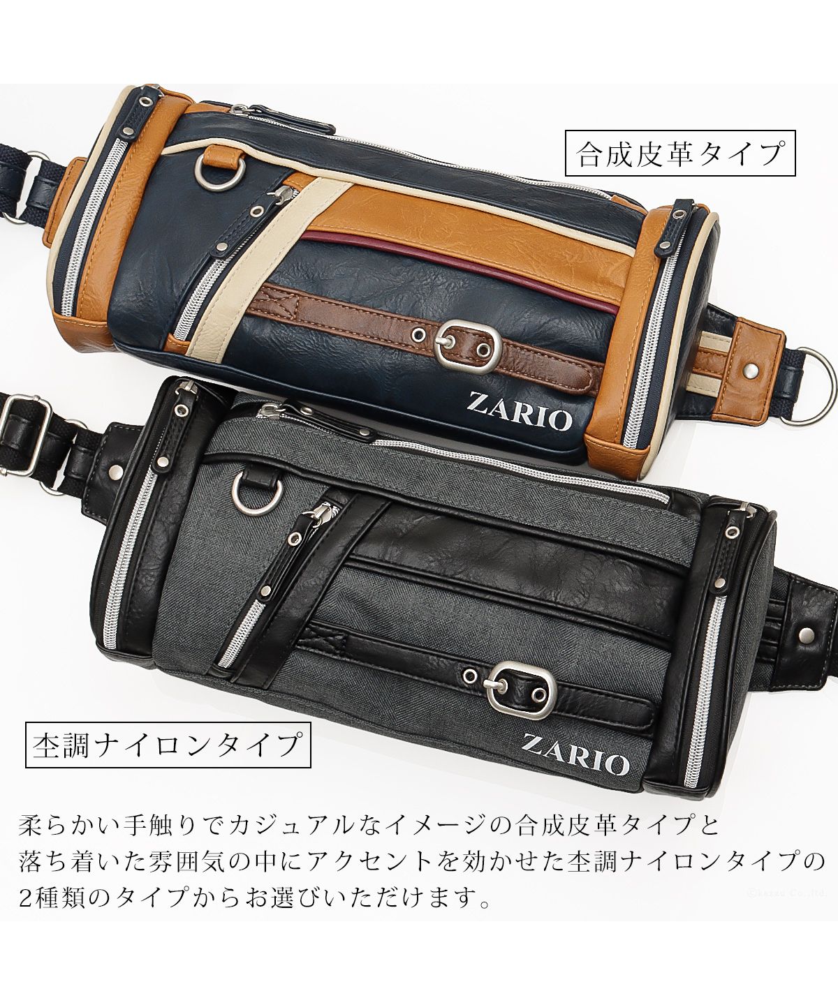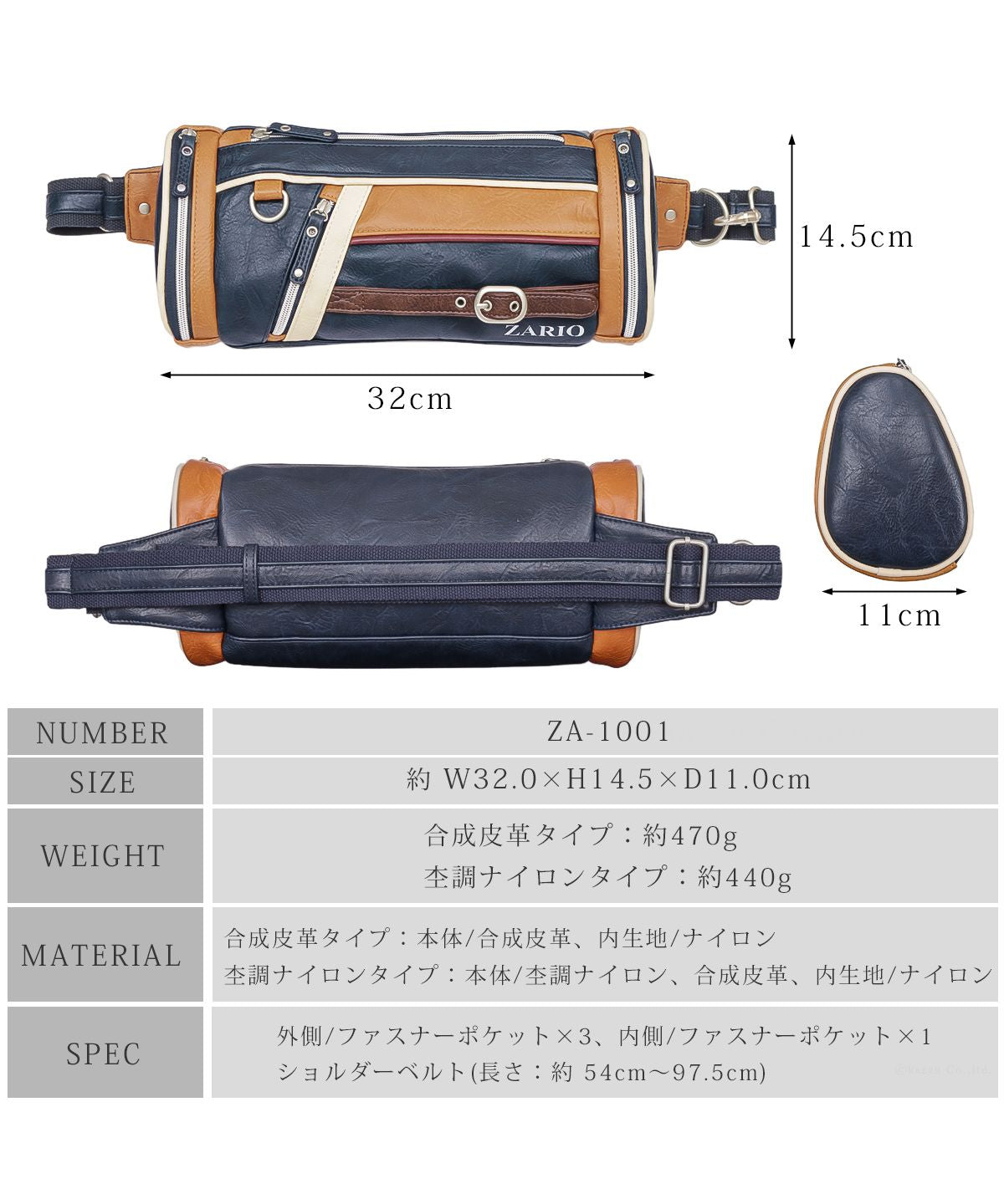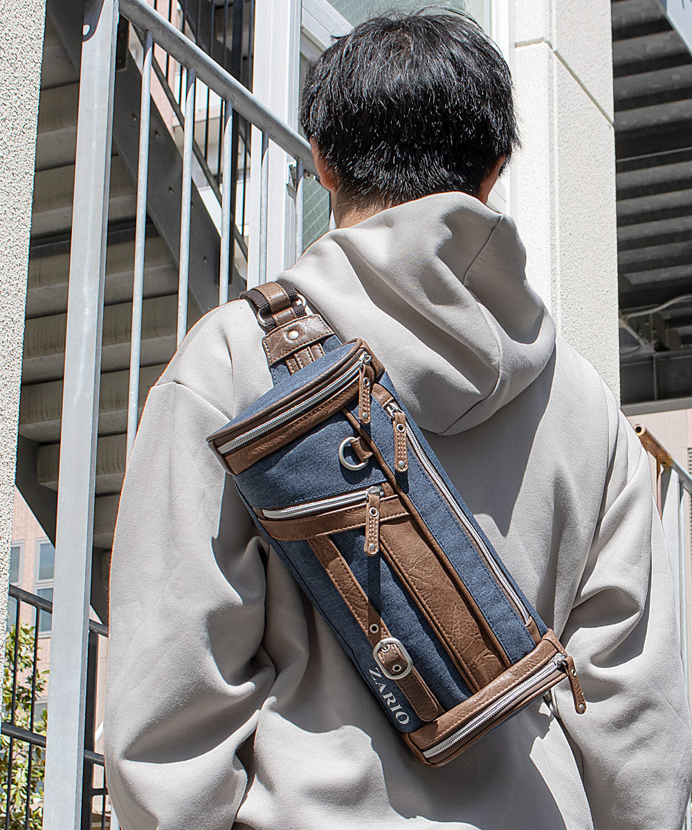 [Blue][Aoi][Red][Aka][Wine Red][Brown][Cha][Urban Gray][Azul Blue][Similar Black][Gray][Grey][Black] Body Bag Drum Type Men's Frontline Series Large Capacity Stylish Synthetic Leather Melange Nylon Cylindrical Lightweight Male Brand ZARIO ZARIO Town Use Outdoor Festival Travel ZA-1001