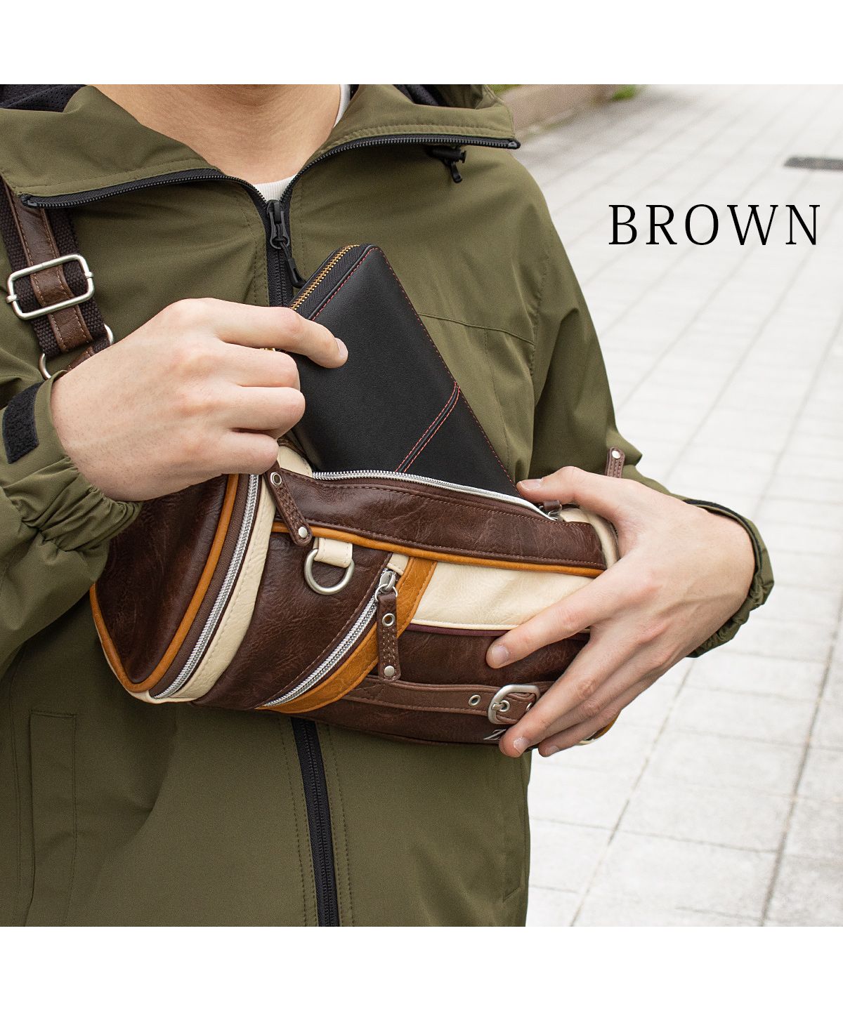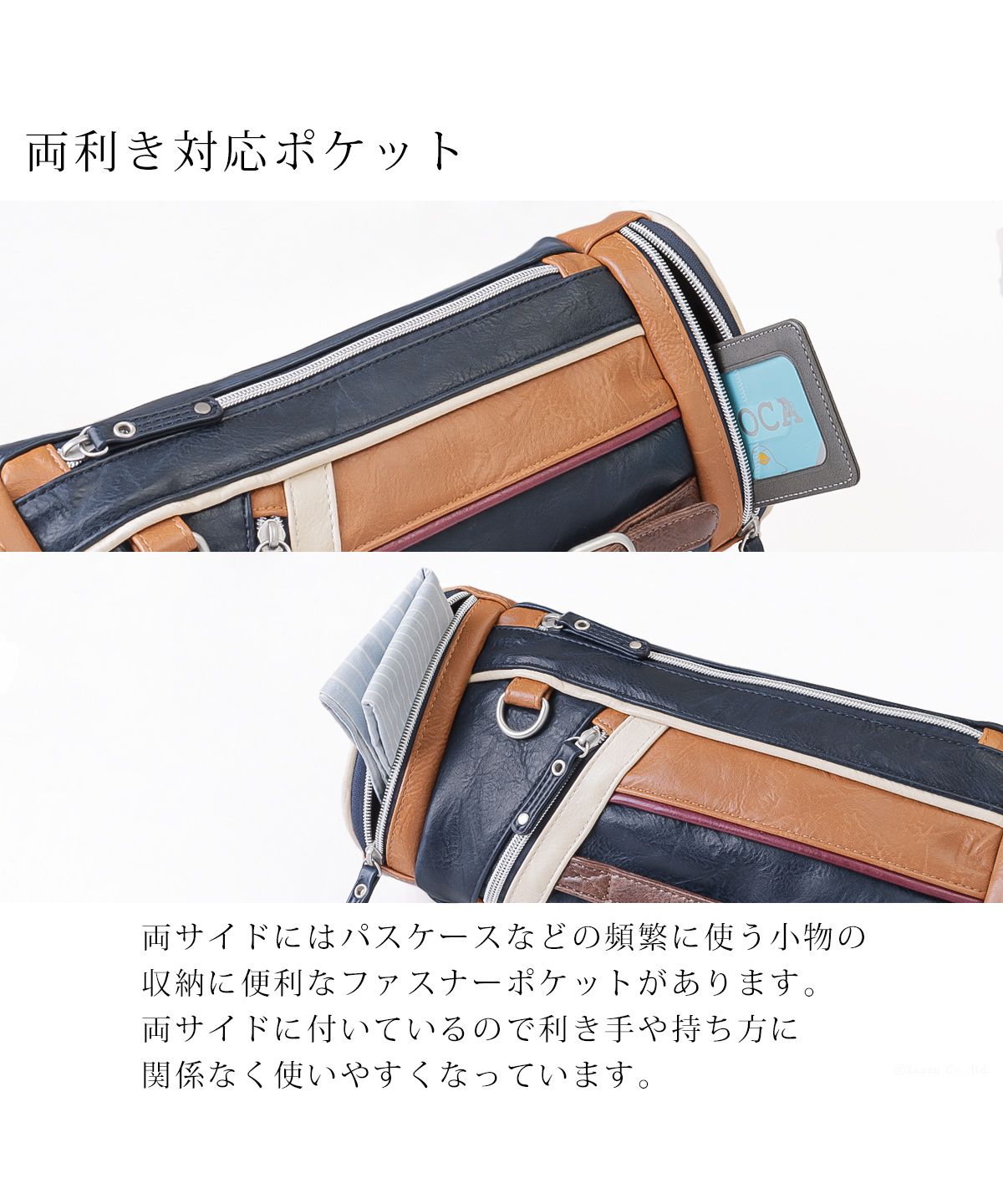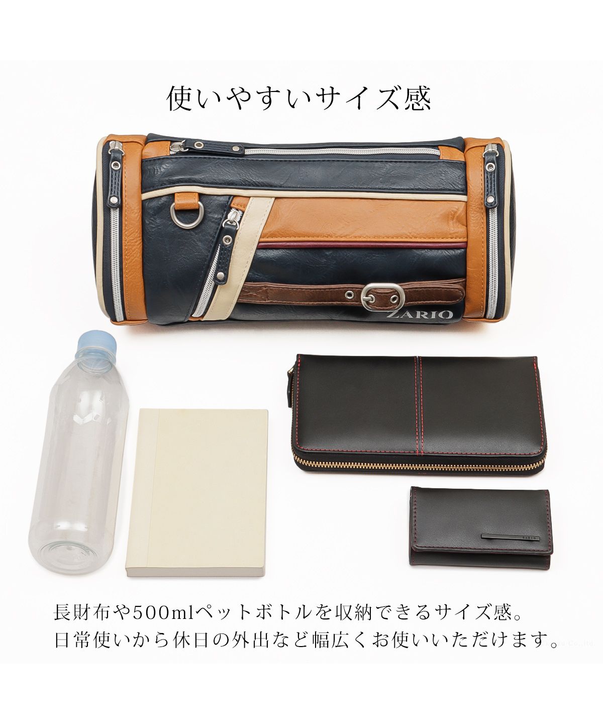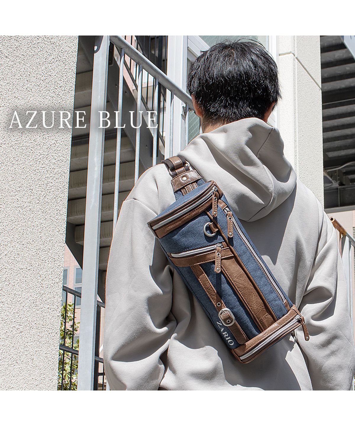 [Blue][Aoi][Red][Aka][Wine Red][Brown][Cha][Urban Gray][Azul Blue][Similar Black][Gray][Grey][Black] Body Bag Drum Type Men's Frontline Series Large Capacity Stylish Synthetic Leather Melange Nylon Cylindrical Lightweight Male Brand ZARIO ZARIO Town Use Outdoor Festival Travel ZA-1001