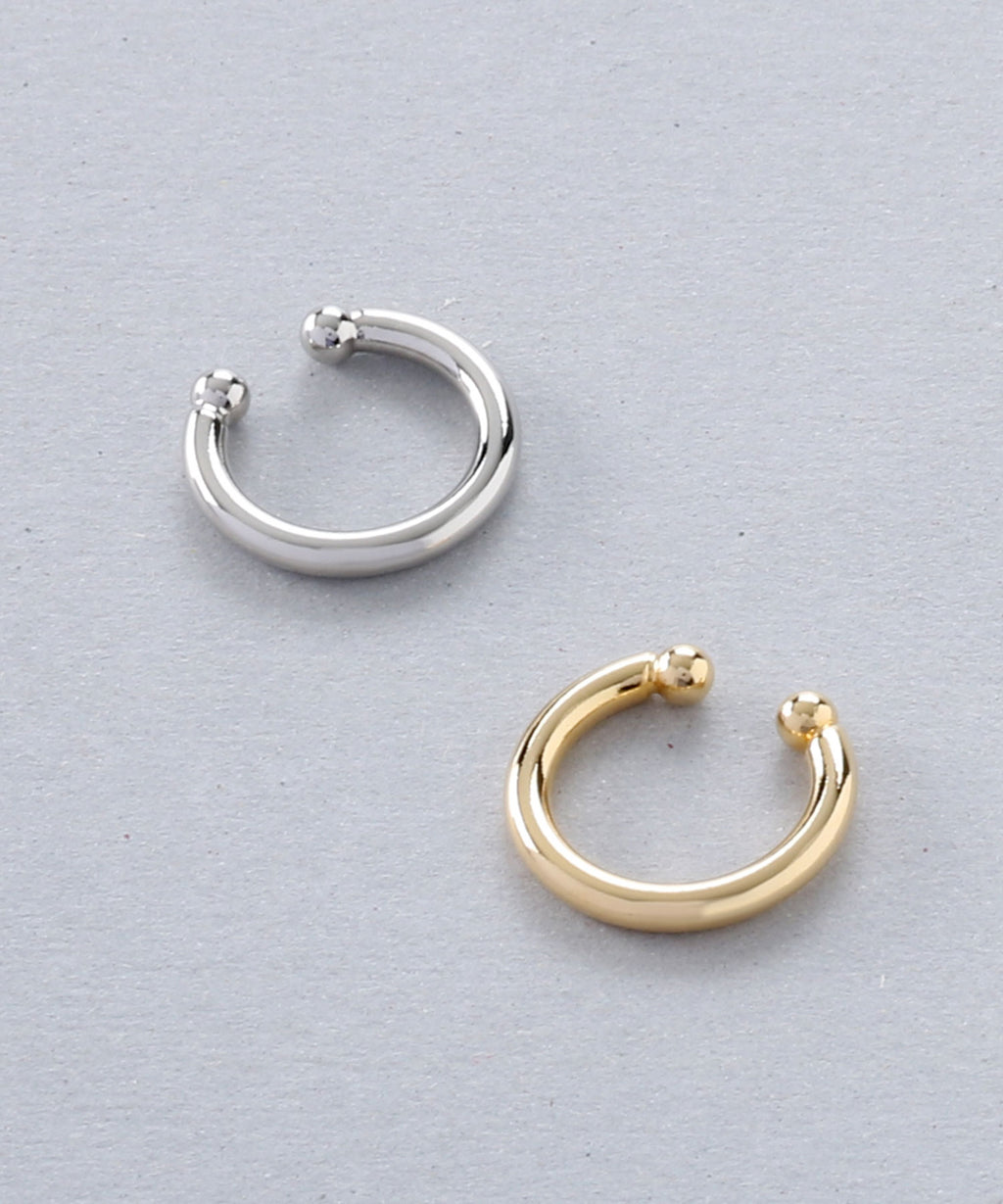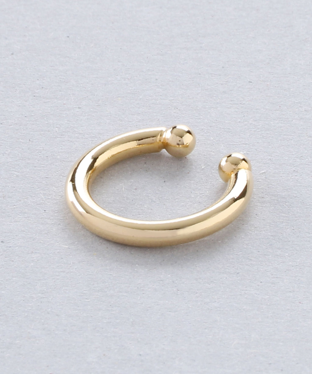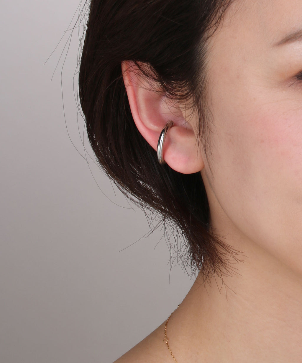 A simple yet thick ear cuff that exudes presence. The beautifully curved shape draws a perfect circle and shines elegantly with the play of light. It can be easily hooked on, allowing those without piercings to enjoy stylish ear adornments. This item is versatile for daily use as well as for dressing up. It is also recommended to layer it with your existing earrings or ear cuffs. By gently adjusting the part of the ear cuff that is worn, you can modify the fit and looseness.