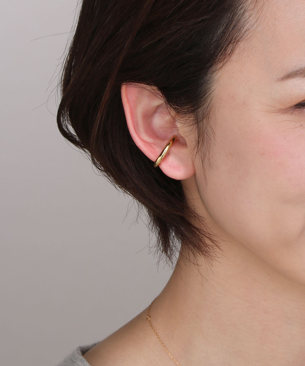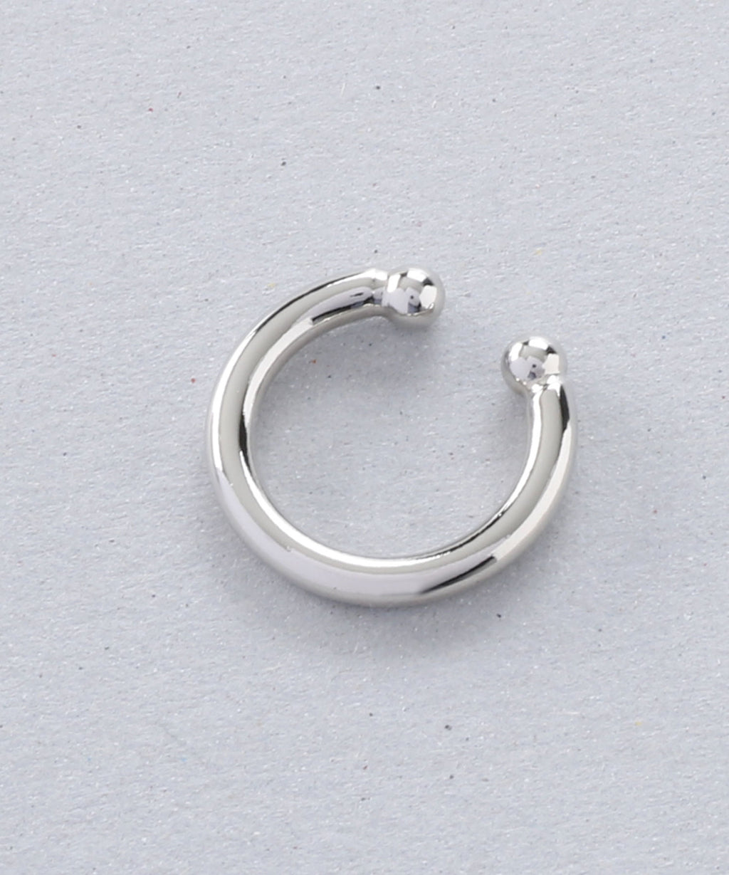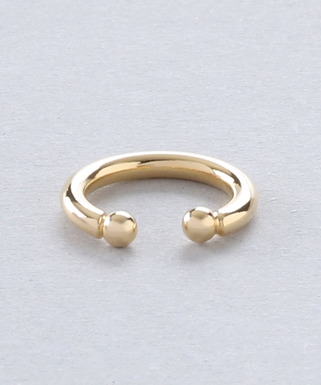 A simple yet thick ear cuff that exudes presence. The beautifully curved shape draws a perfect circle and shines elegantly with the play of light. It can be easily hooked on, allowing those without piercings to enjoy stylish ear adornments. This item is versatile for daily use as well as for dressing up. It is also recommended to layer it with your existing earrings or ear cuffs. By gently adjusting the part of the ear cuff that is worn, you can modify the fit and looseness.