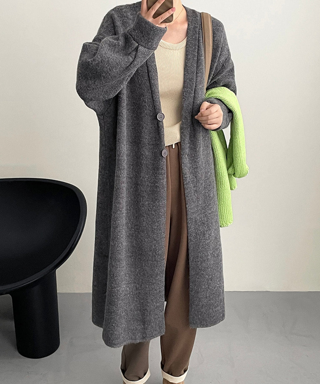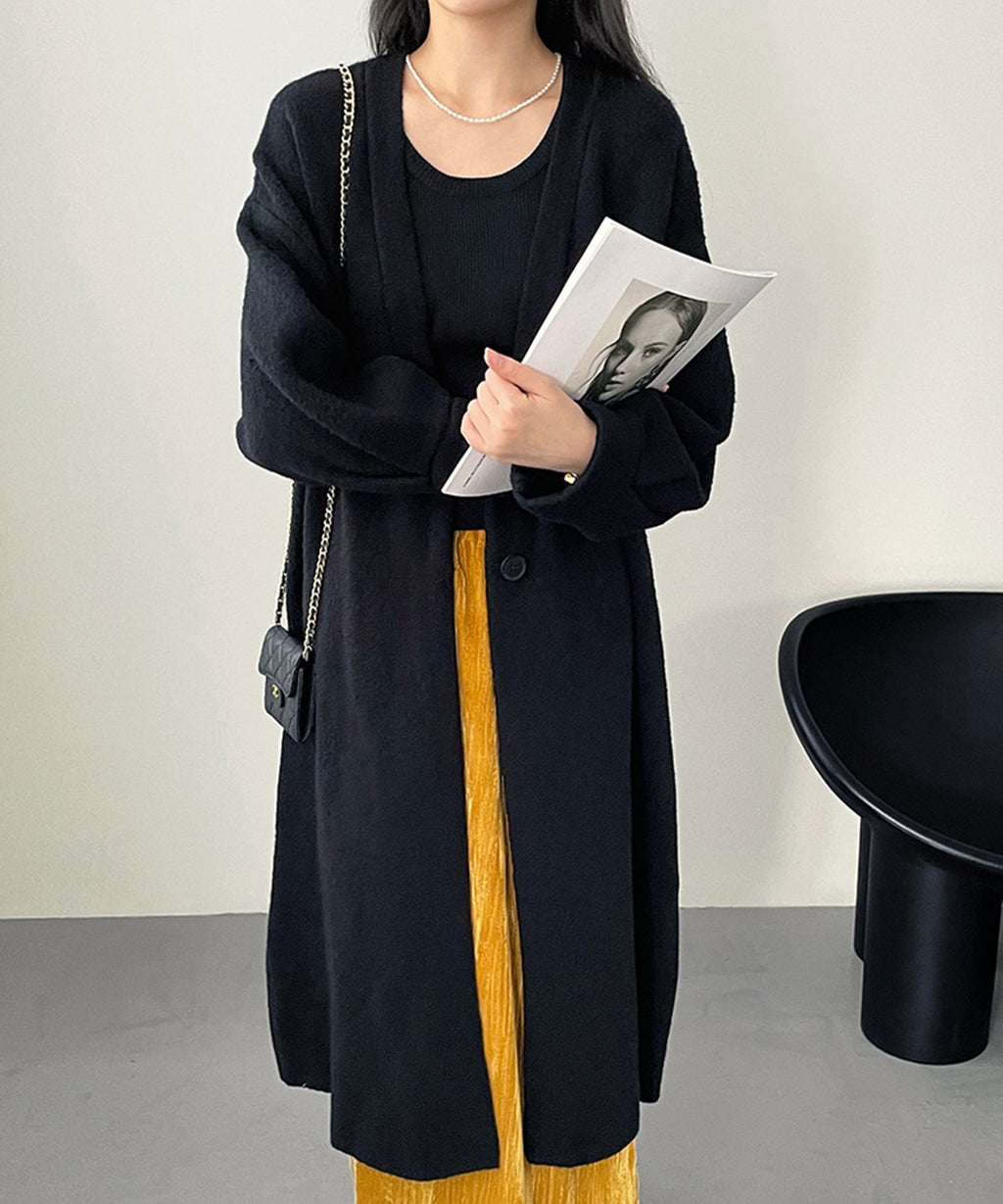 Long, thick knit cardigan for autumn and winter.