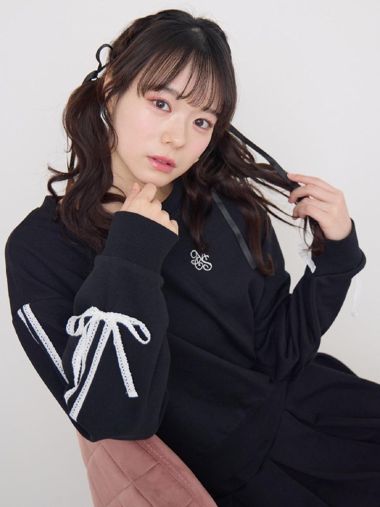 [Tops] Main body: 65% polyester, 35% cotton; Rib part: 64% polyester, 34% cotton; Embroidery part: 100% polyester; Lace part: 100% cotton.