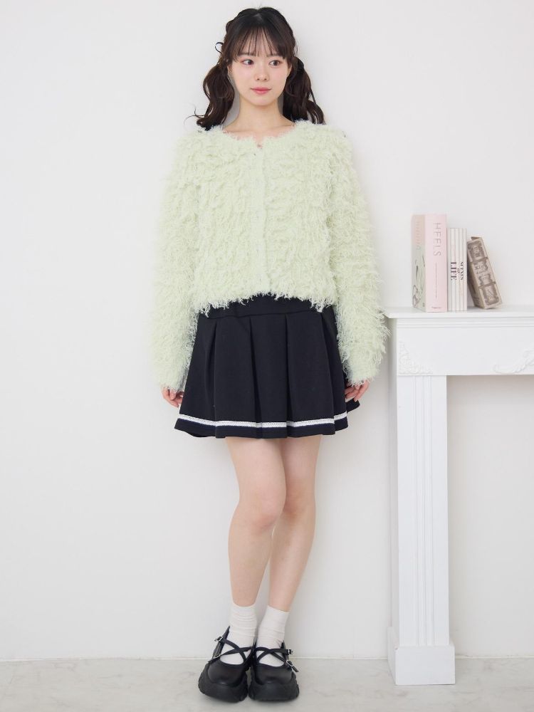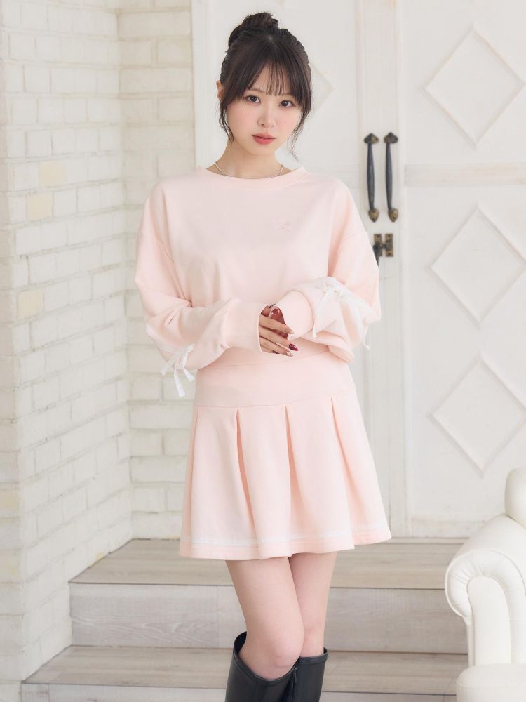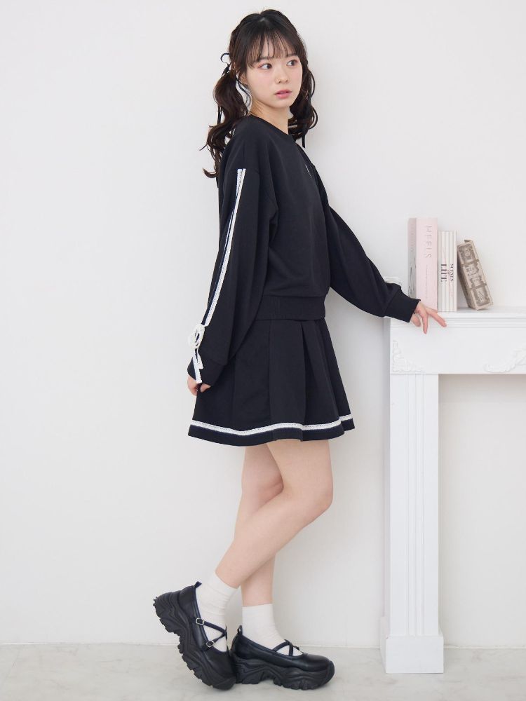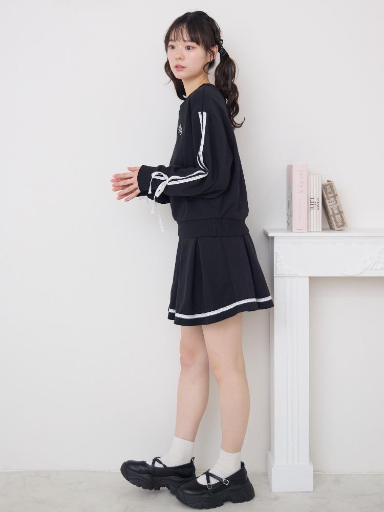 The skirt is mini-length and has a pleated design, making it perfect for Korean casual coordination!