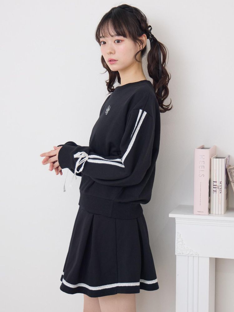 Material Material:【Skirt】Outer fabric: 65% polyester, 35% cotton; Lining: 100% polyester; Lace part: 100% cotton【Top】Main body: 65% polyester, 35% cotton; Rib part: 64% polyester, 34% cotton; Embroidery part: 100% polyester; Lace part: 100% cotton