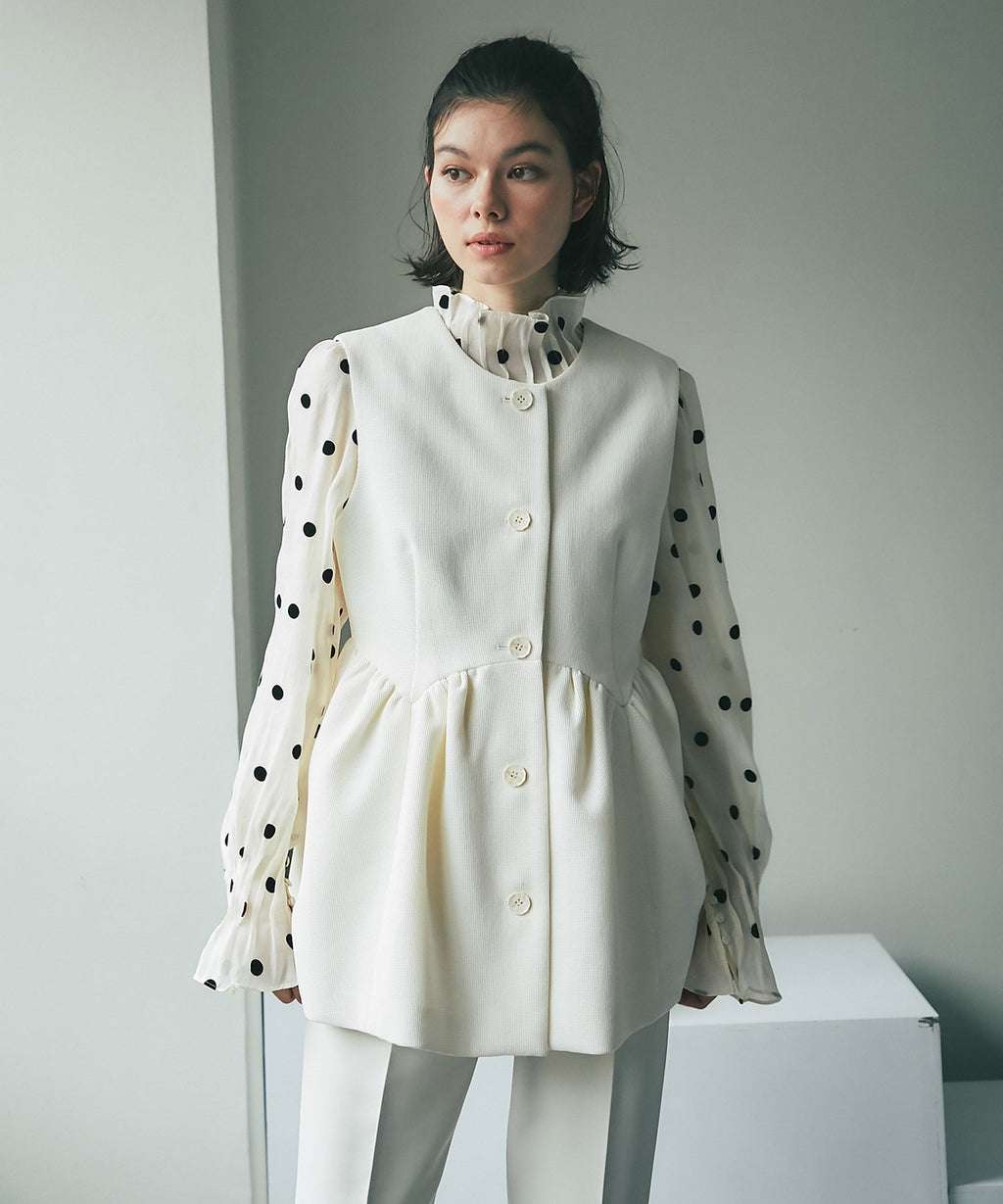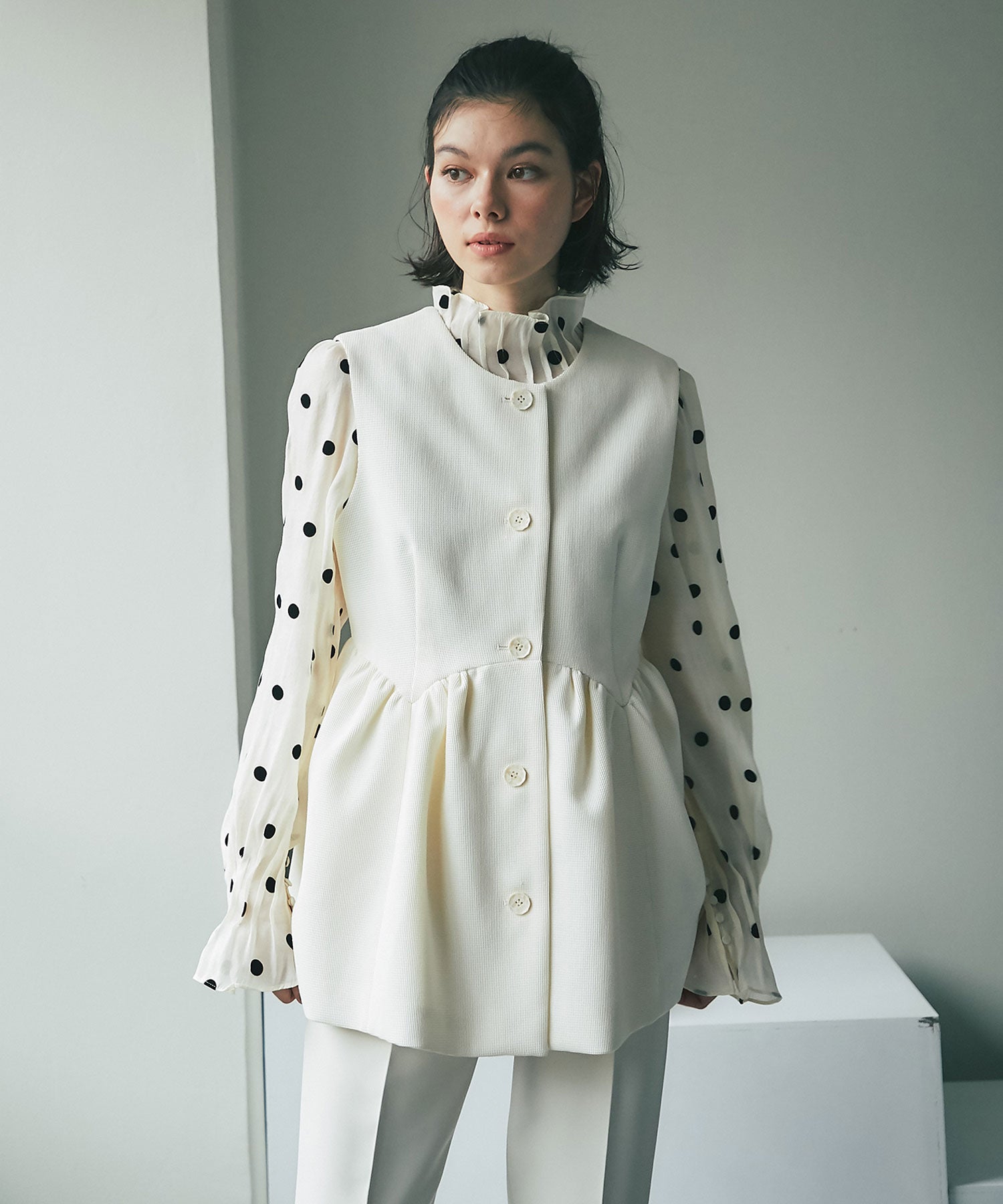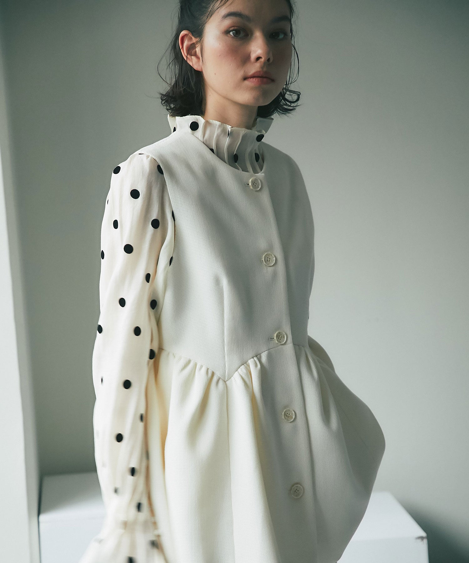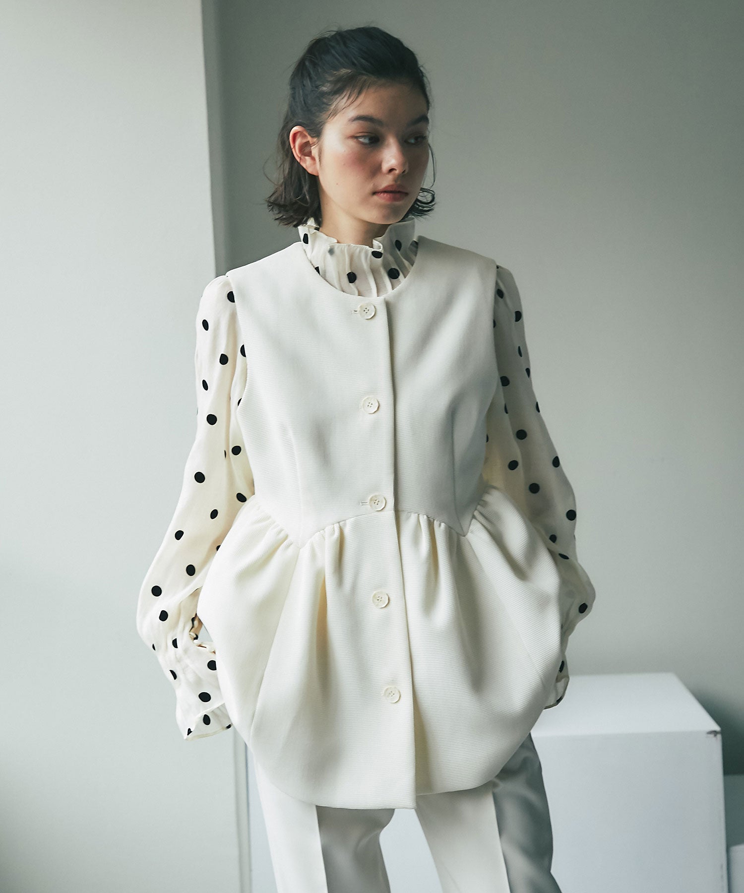 A 2-way gilet vest with a feminine volume and silhouette that makes a strong impression.