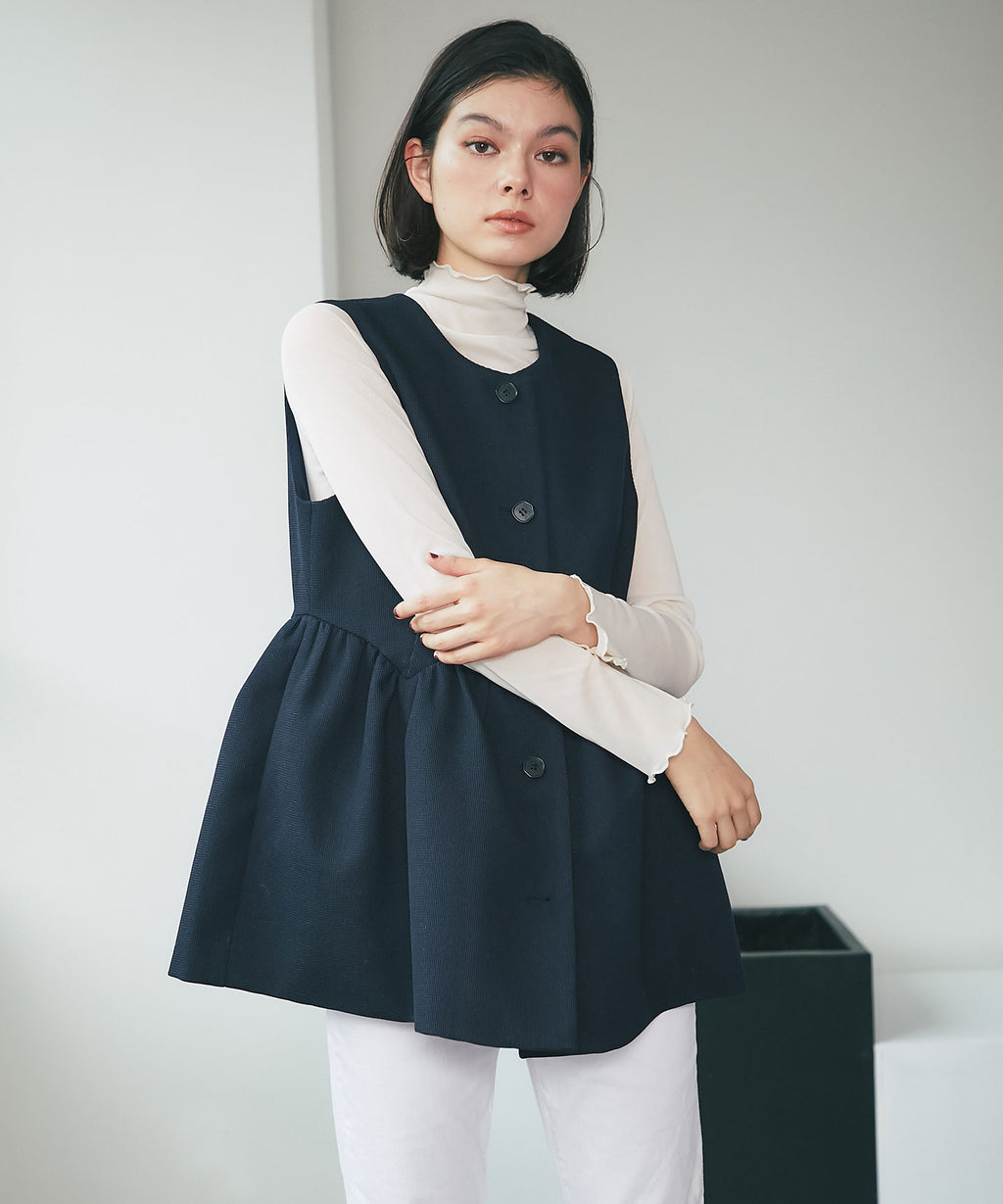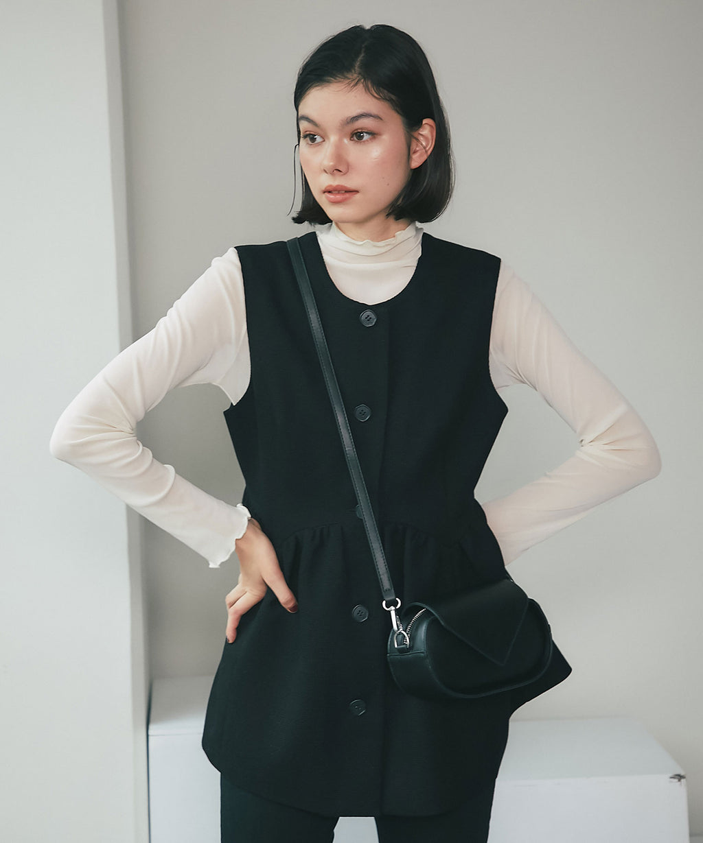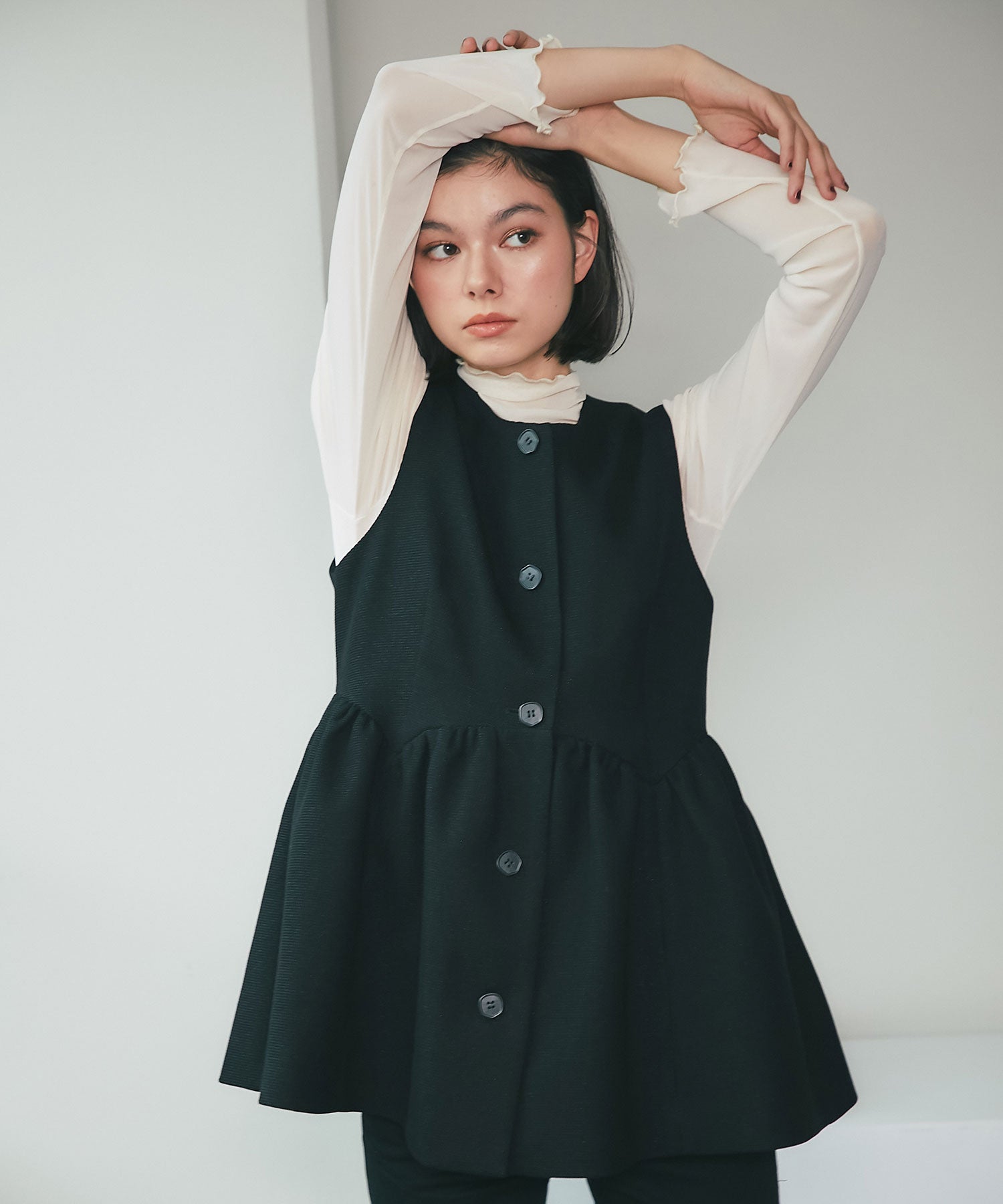 A 2-way gilet vest with a feminine volume and silhouette that makes a strong impression.