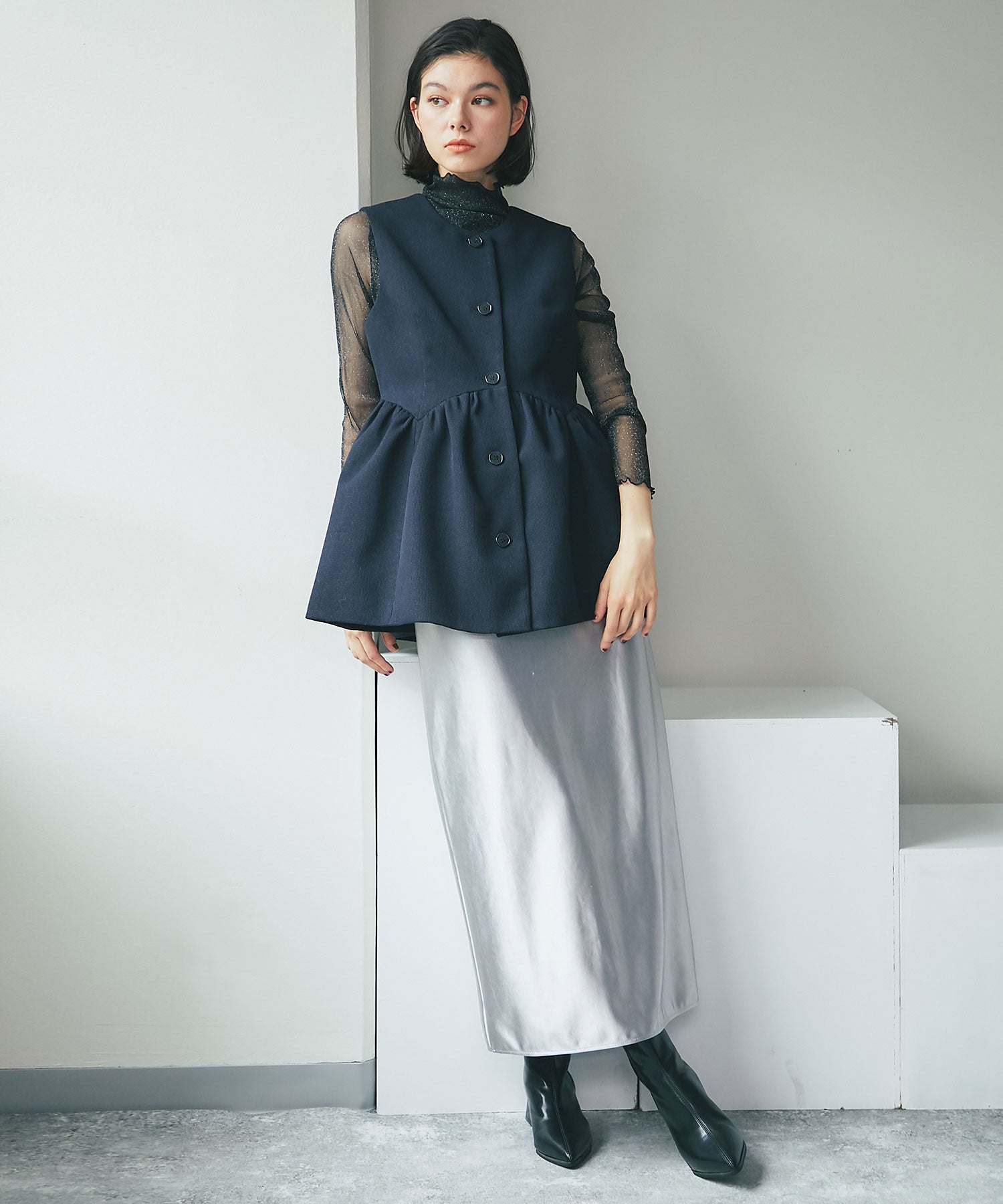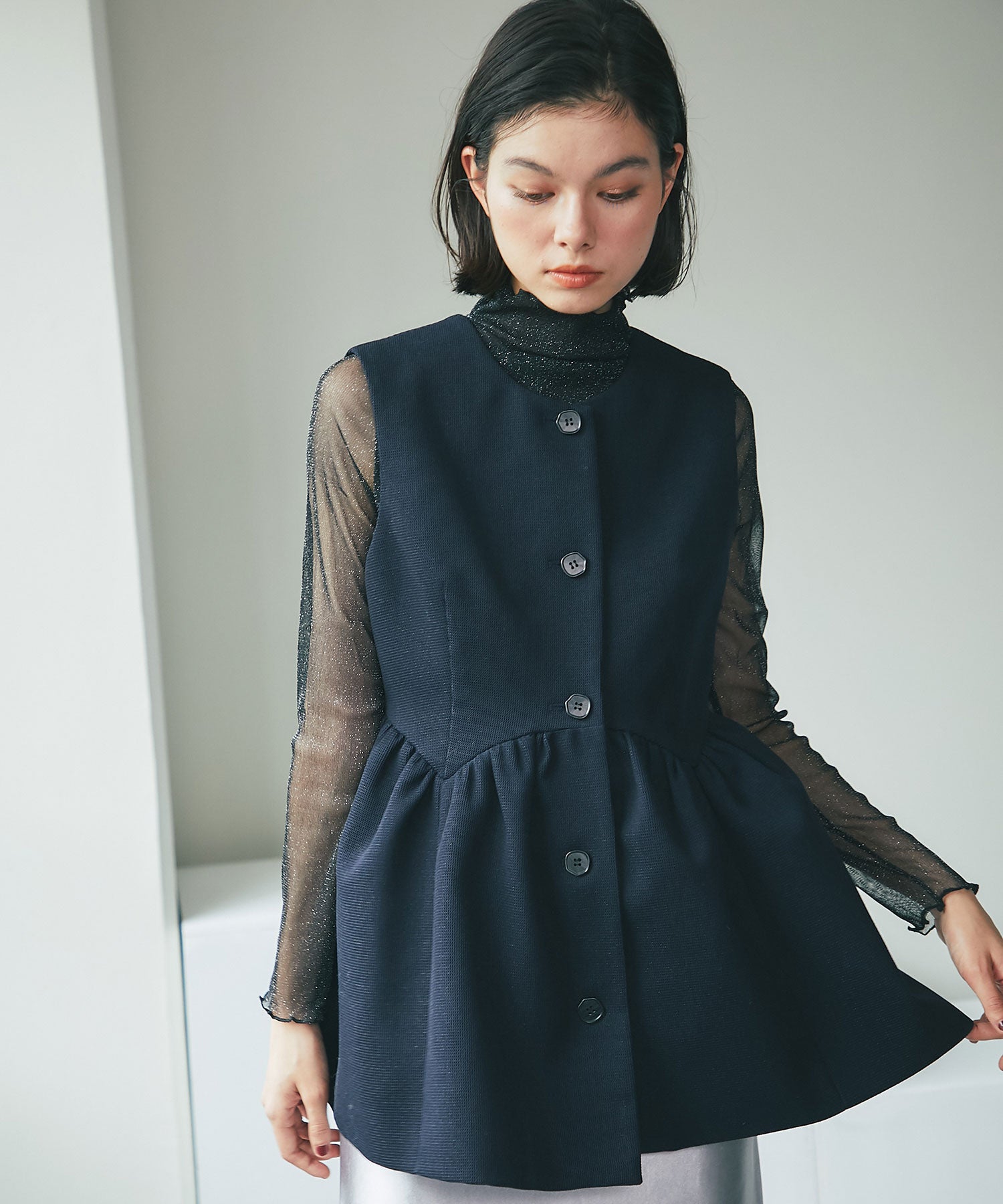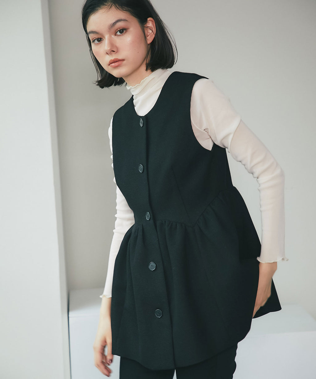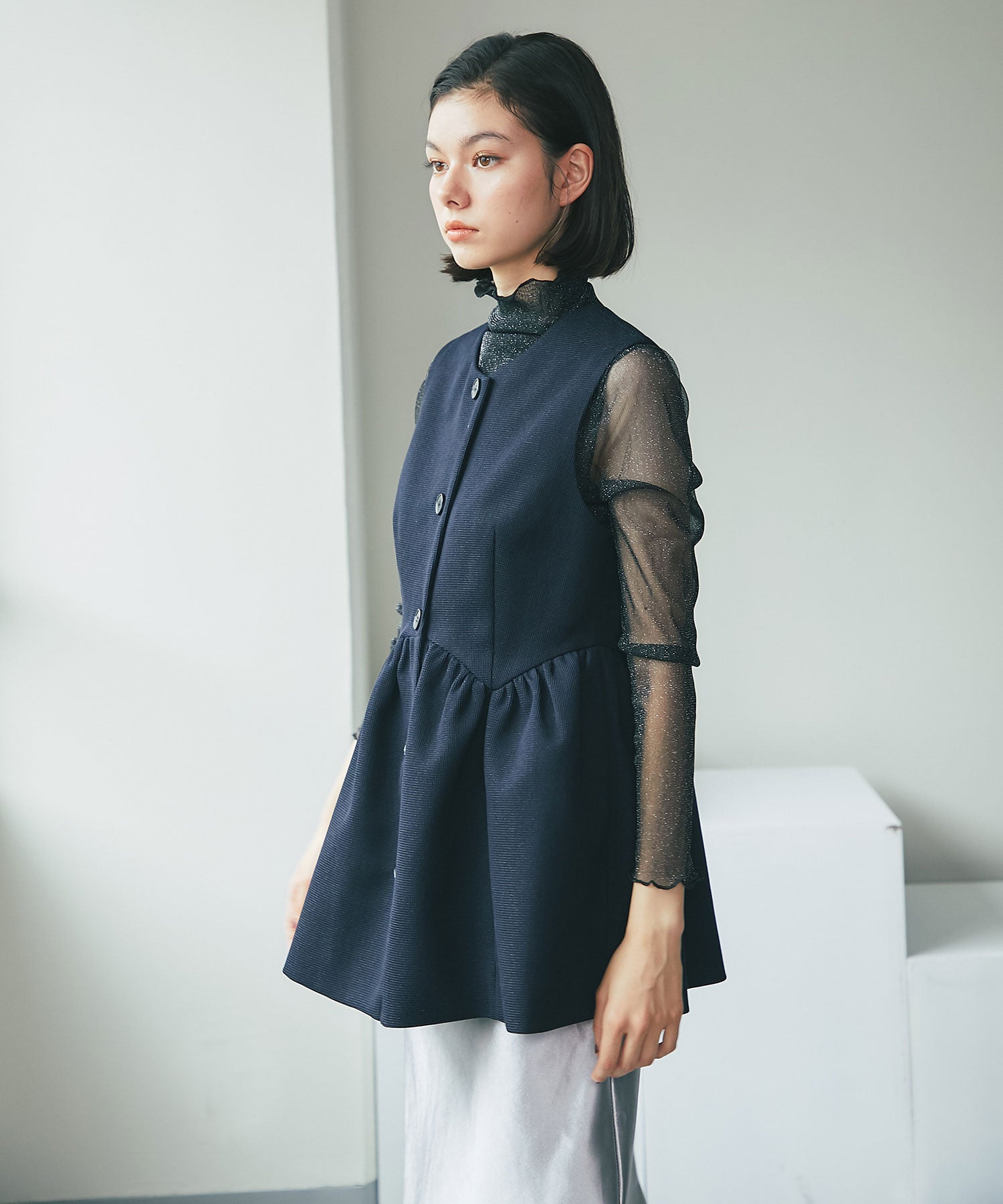 A 2-way gilet vest with a feminine volume and silhouette that makes a strong impression.