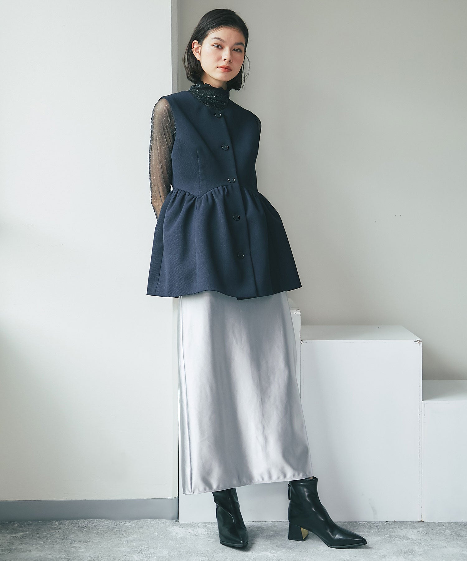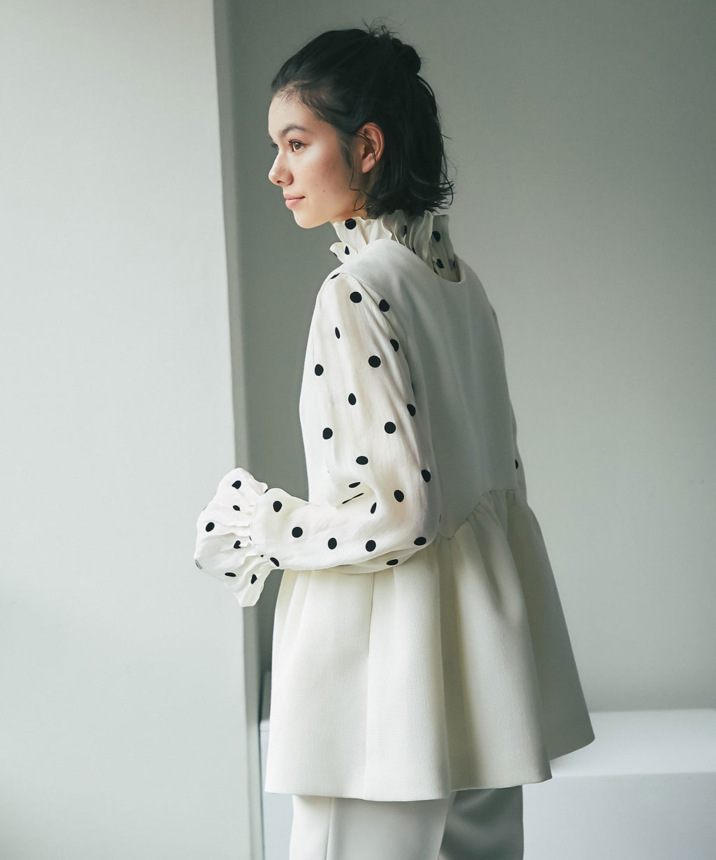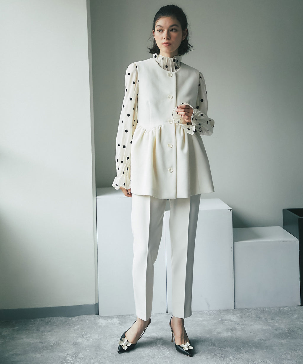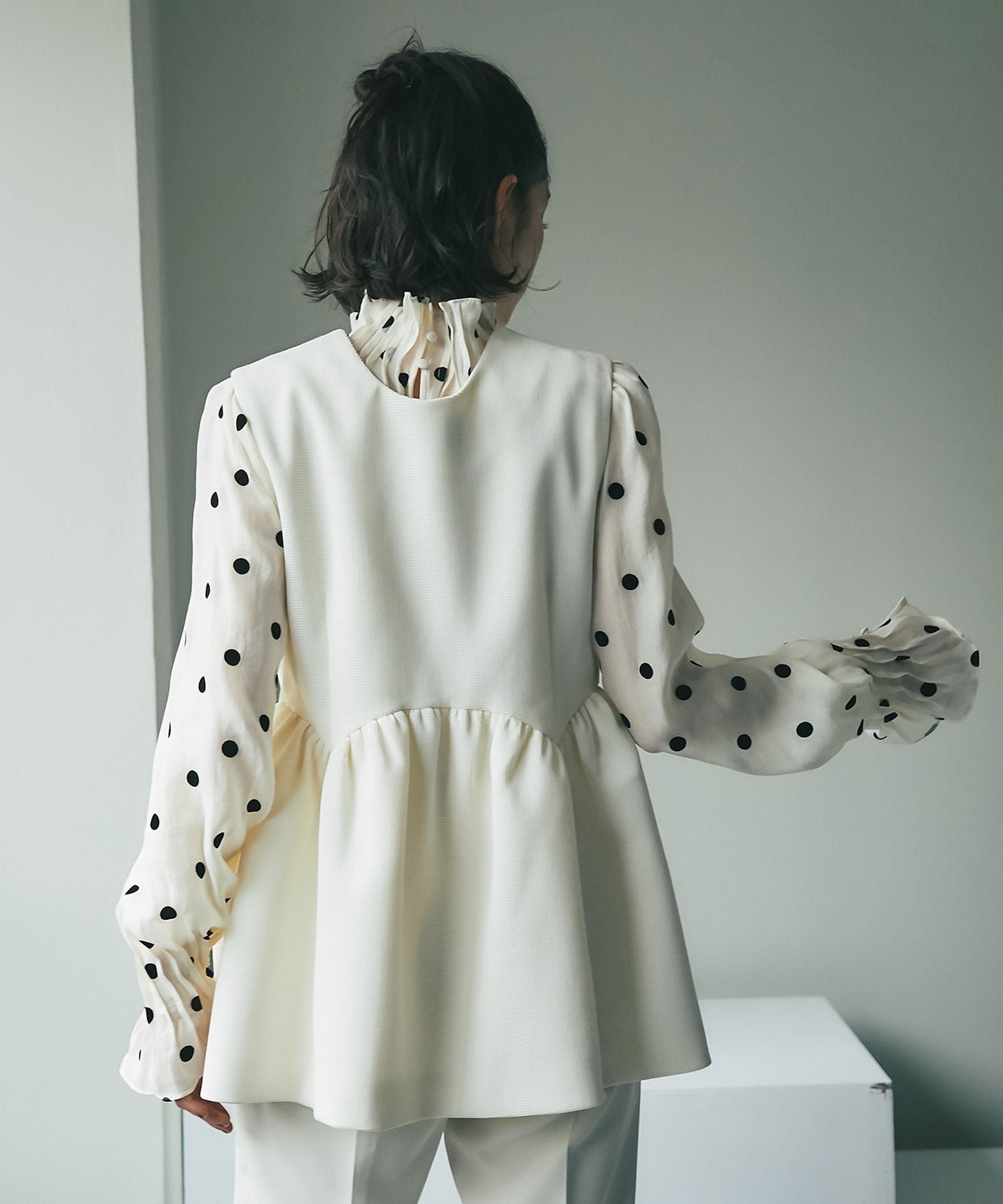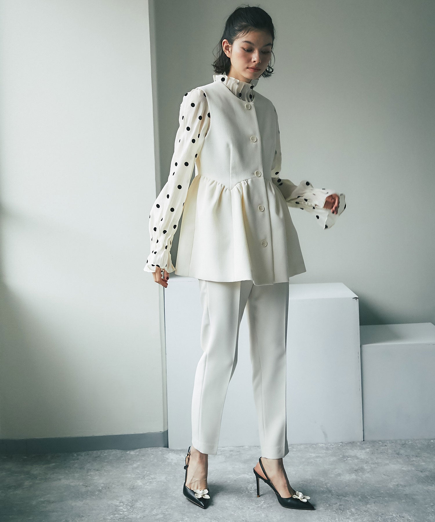 ● The fluffy gathered peplum is a highlight, and the fabric with a firm feel is resistant to wrinkles and easy to handle.