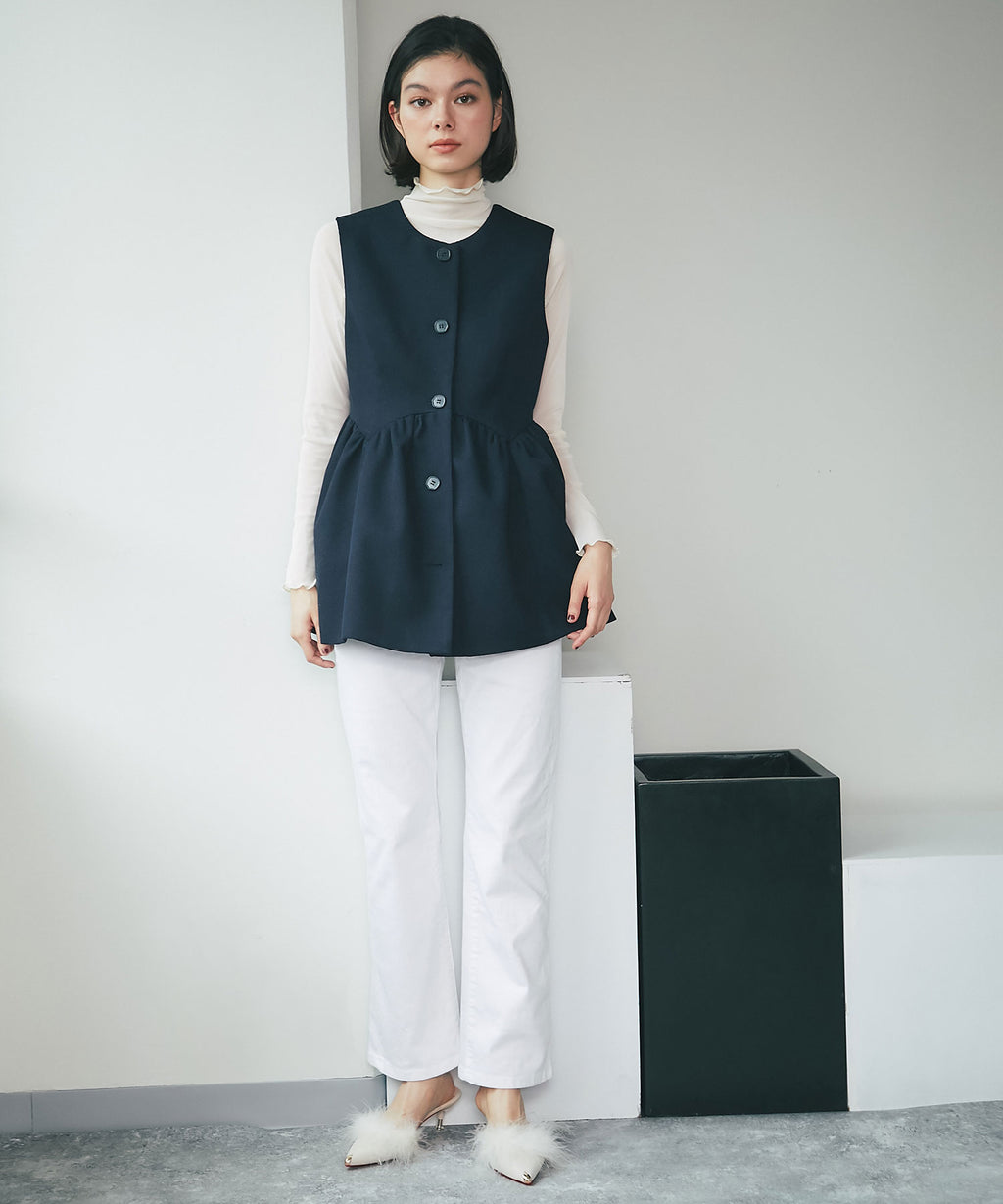 ●It's also recommended to pair it with denim or wide pants to tone down the sweetness, or layer it with a turtleneck for a vest-like feel.