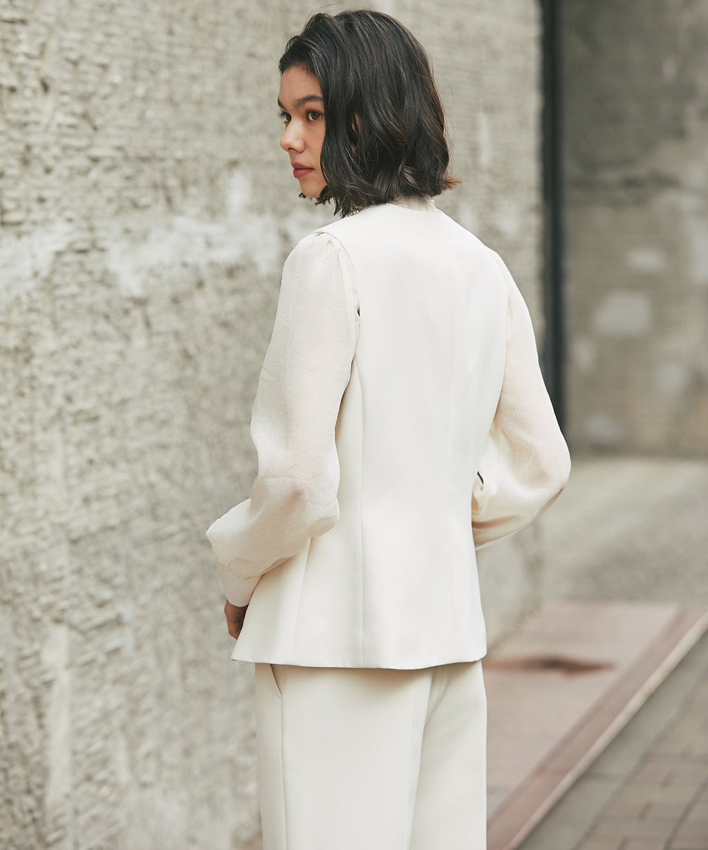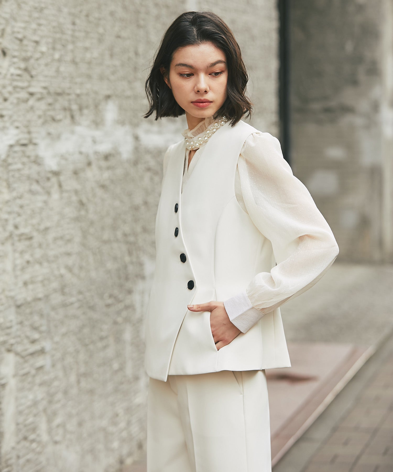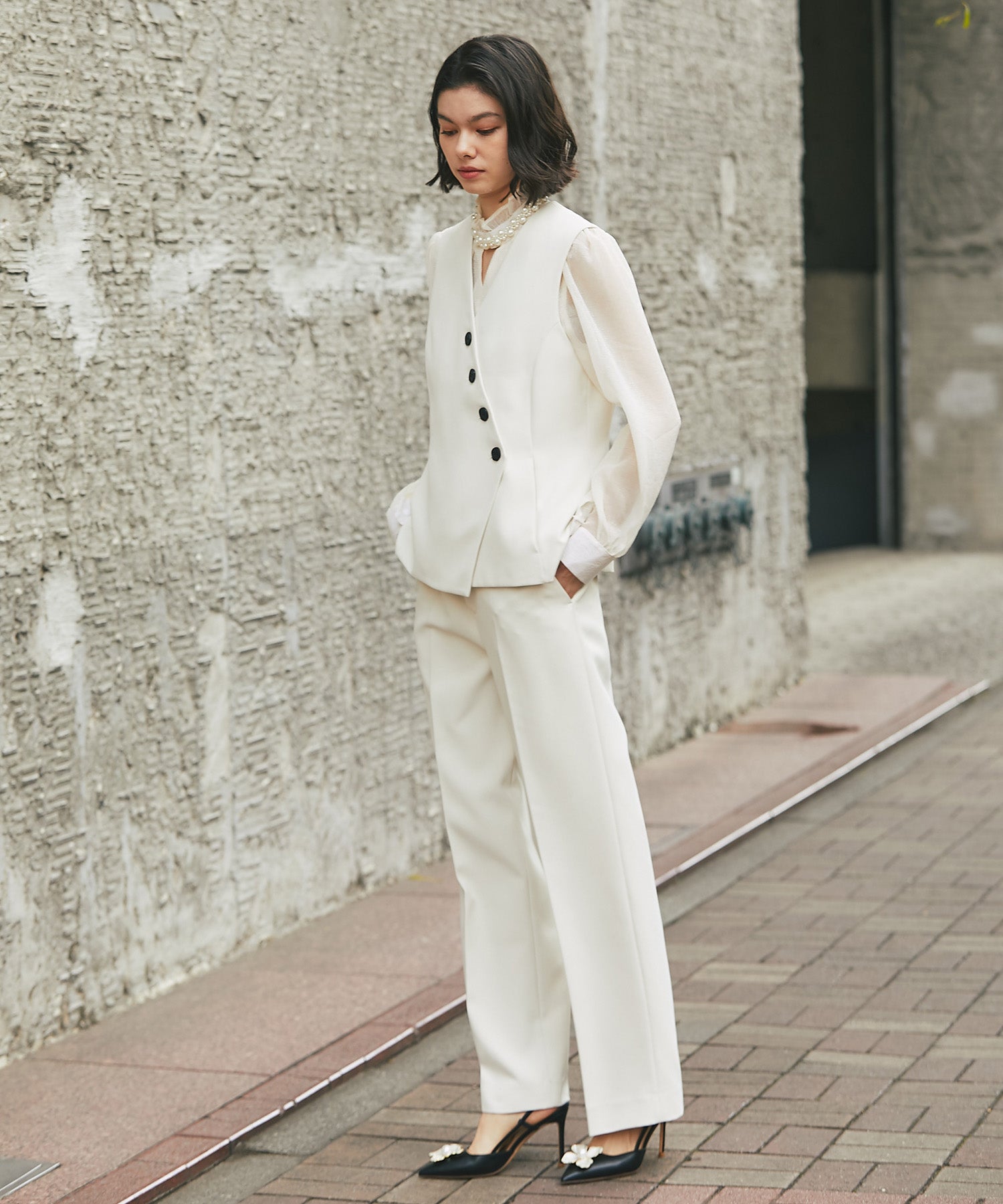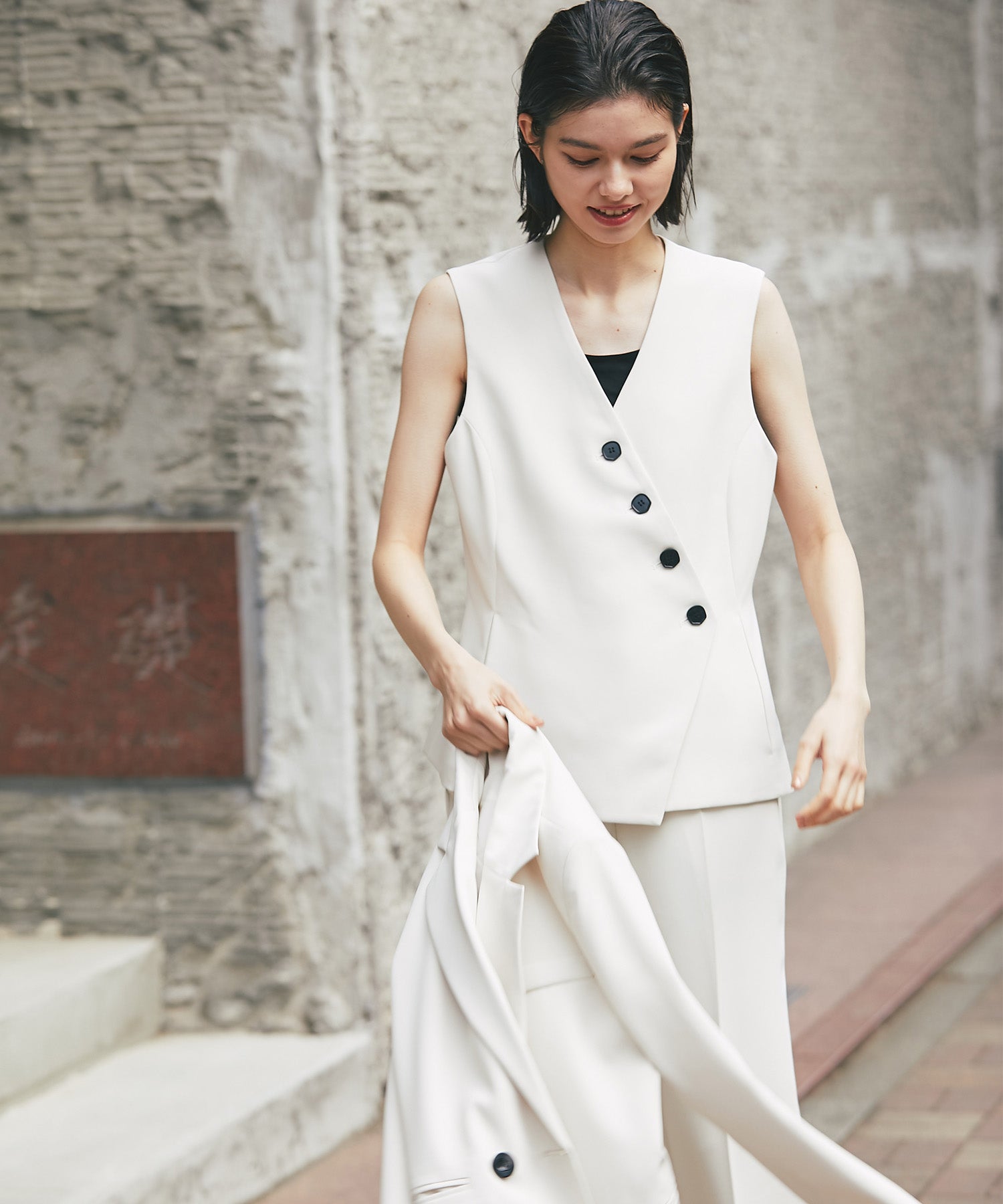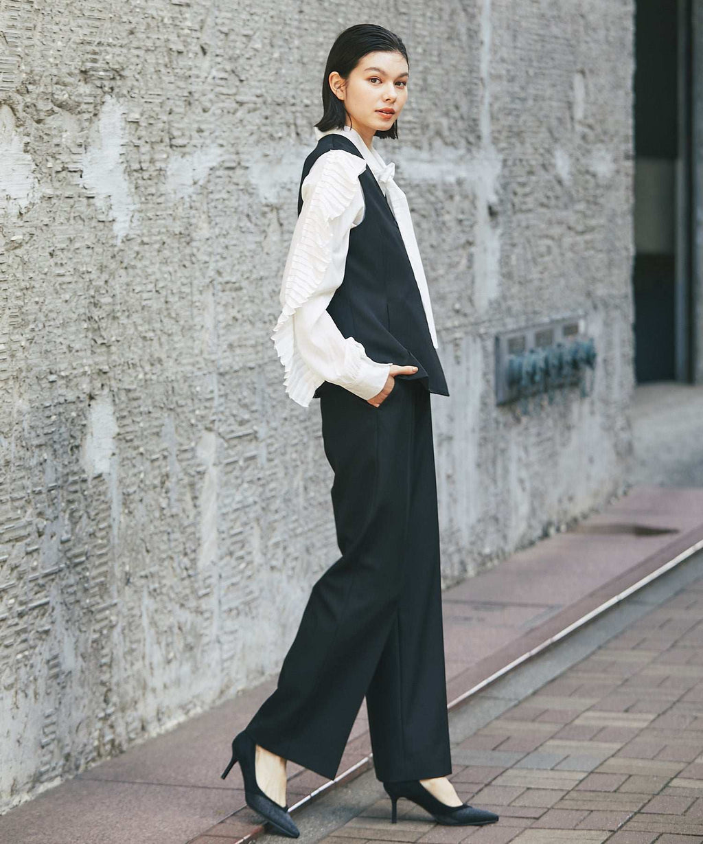 ● Easy to wear alone, and it’s great to pair with wide pants made of the same material, allowing you to wear it like a jumpsuit, which is a trend this season.