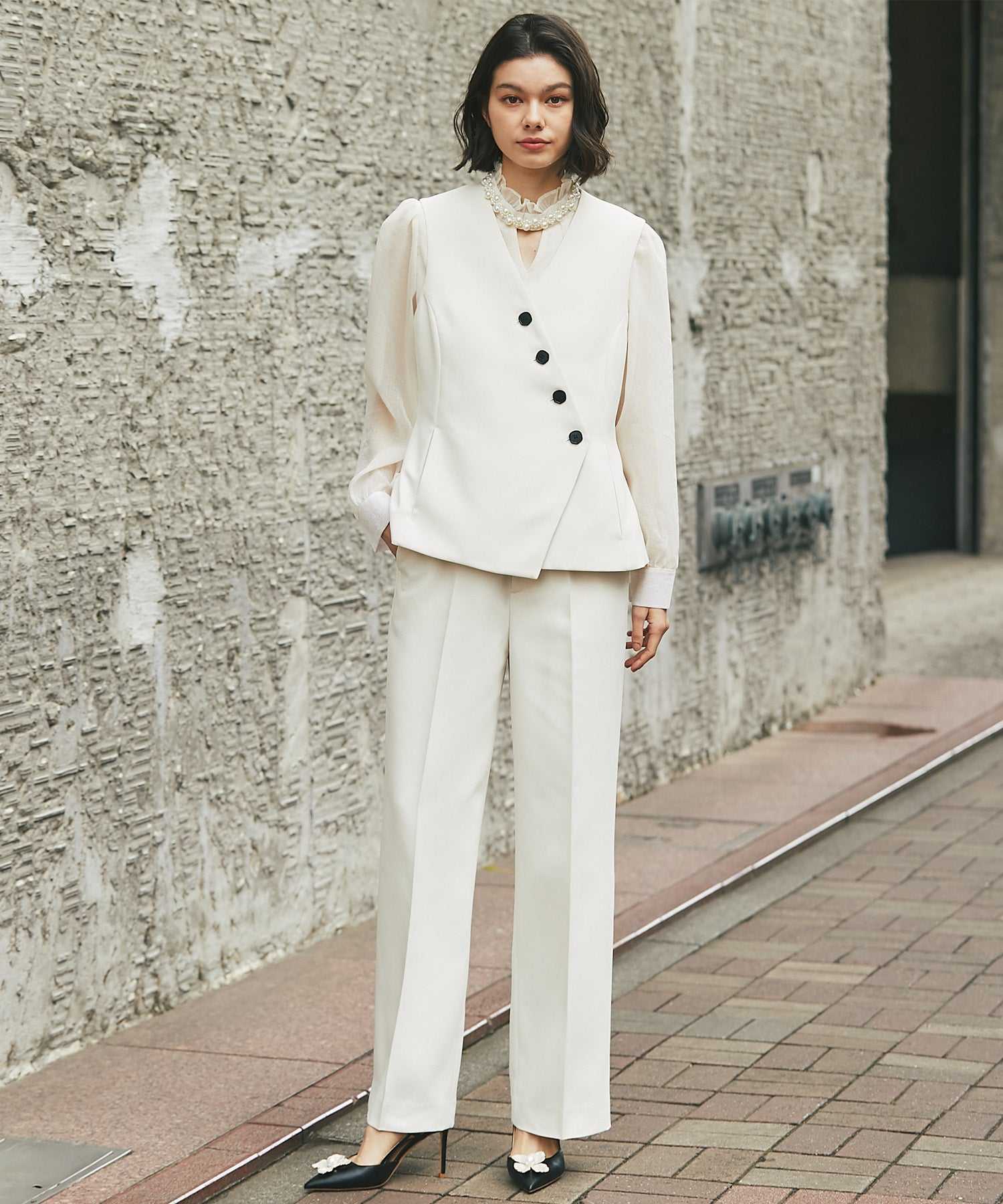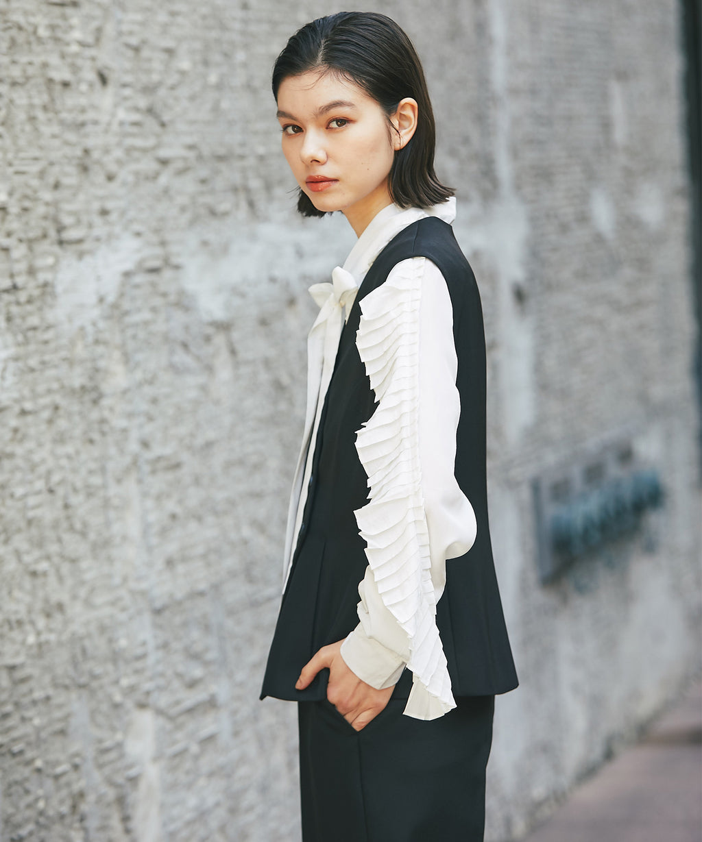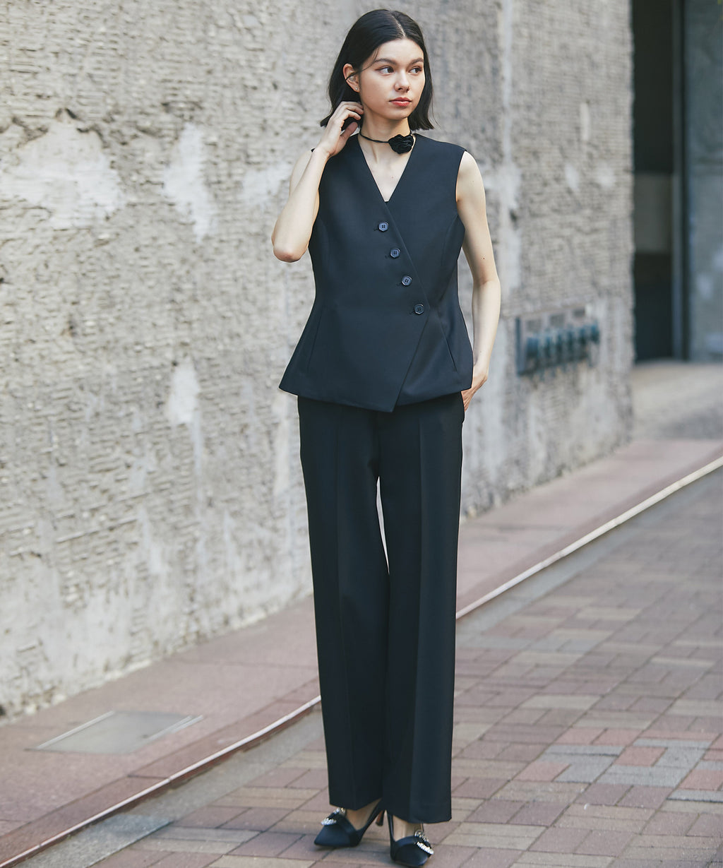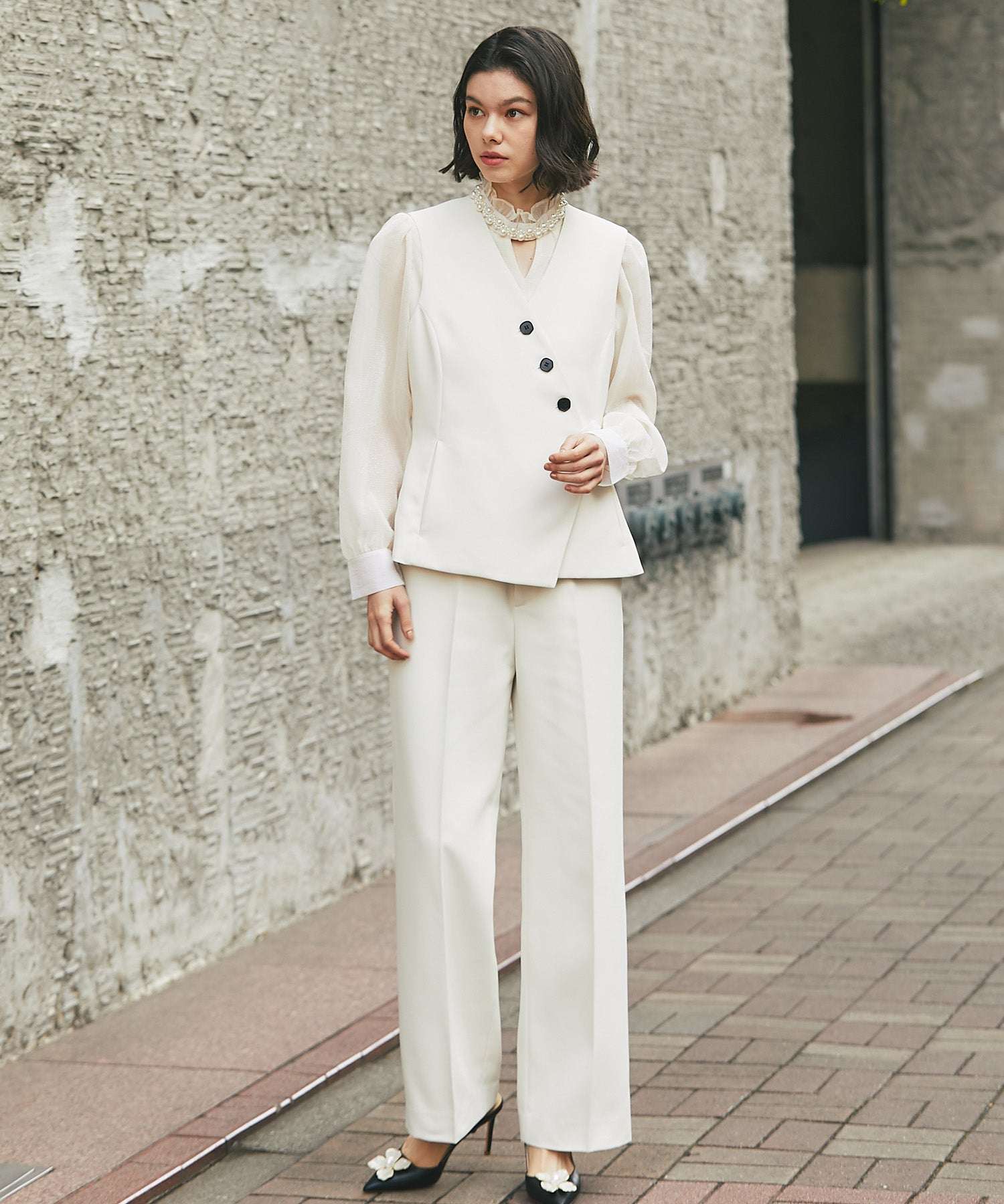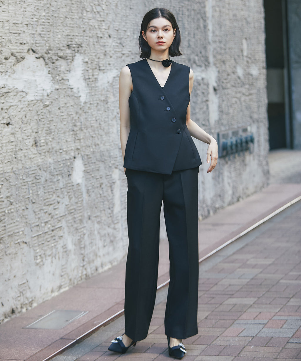 ● Easy to wear alone, and it’s great to pair with wide pants made of the same material, allowing you to wear it like a jumpsuit, which is a trend this season.