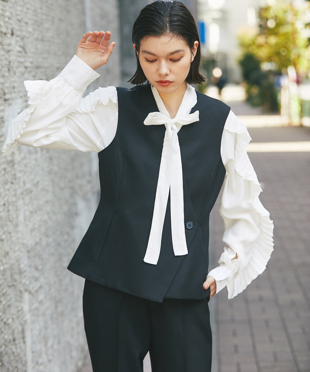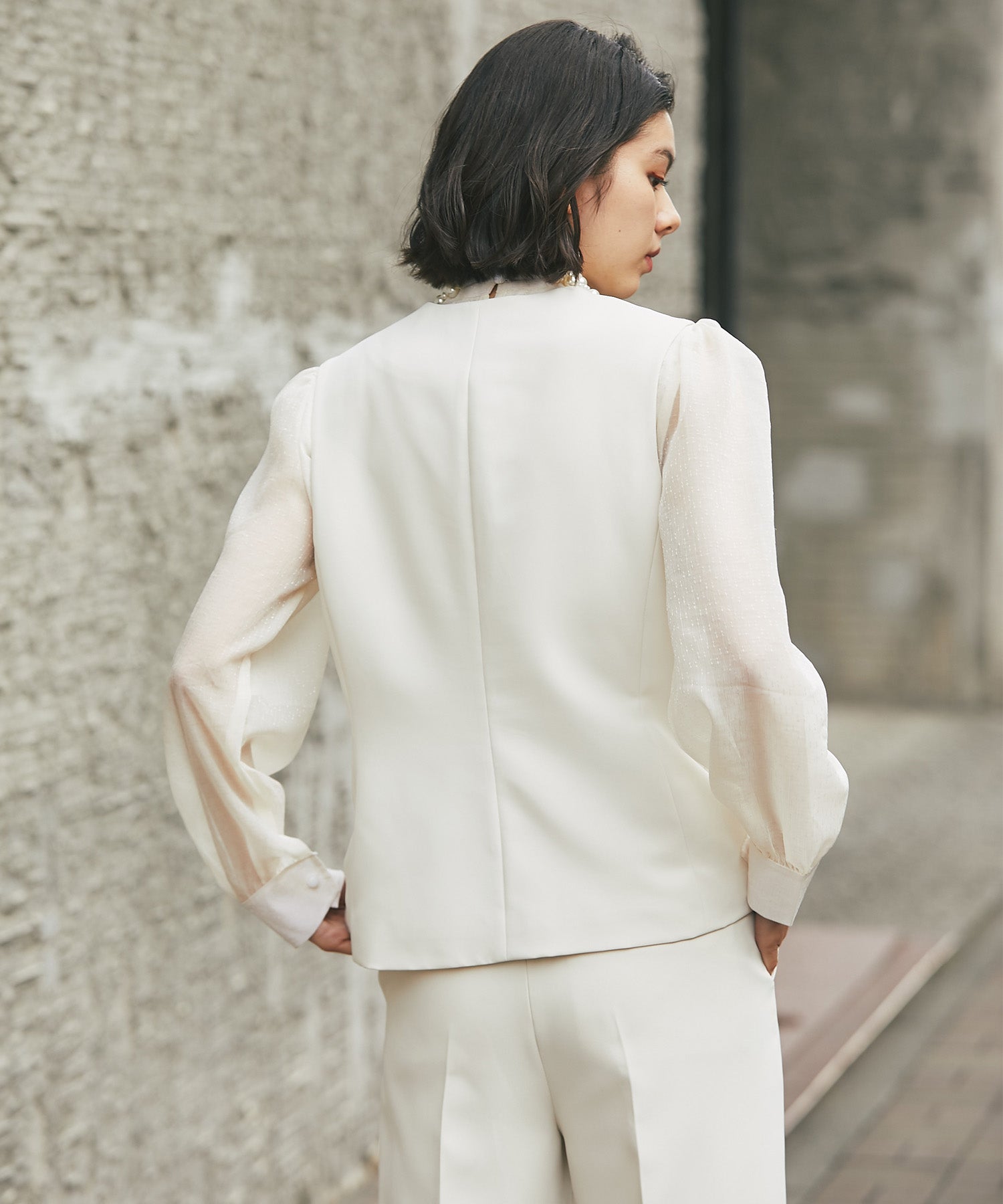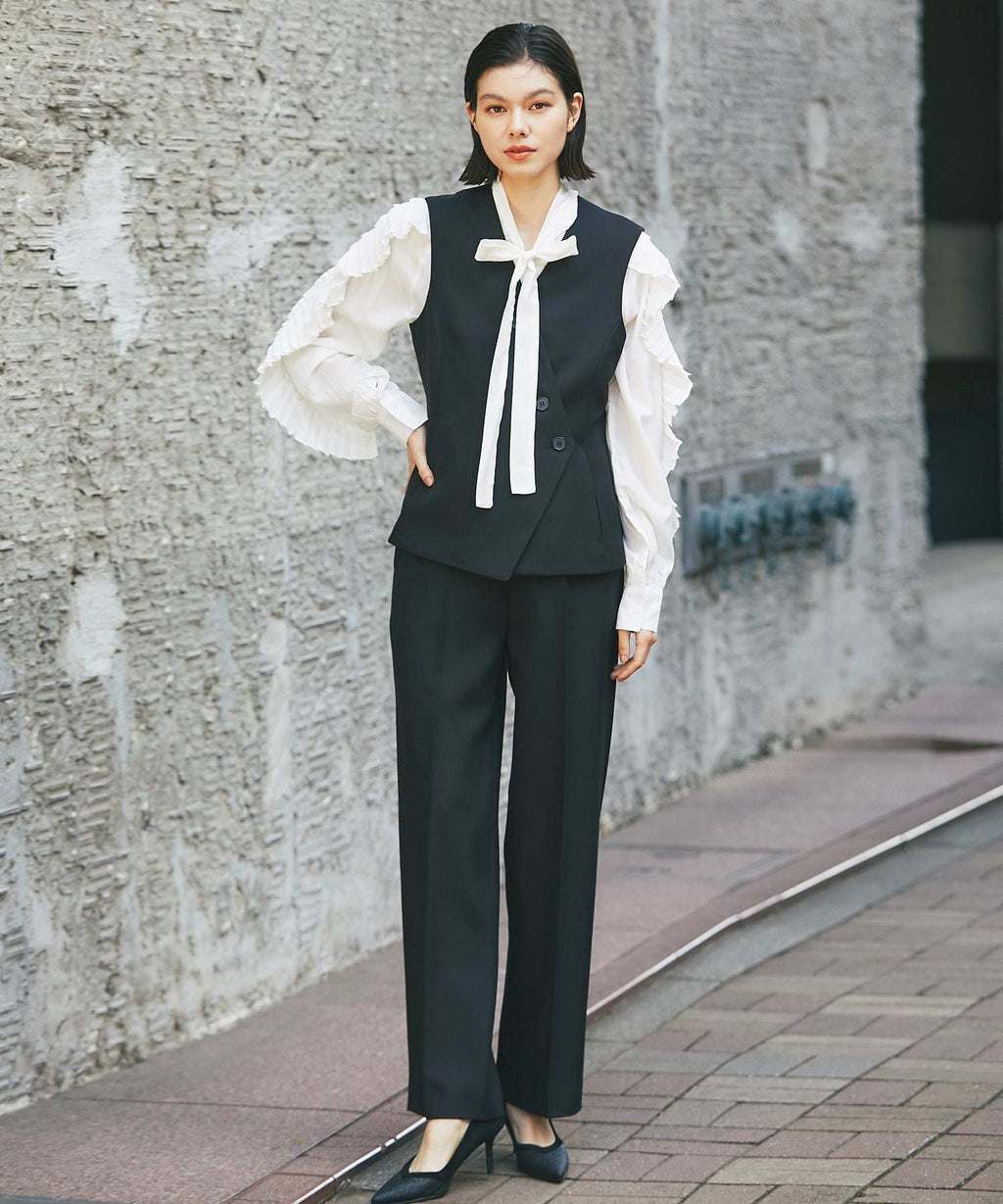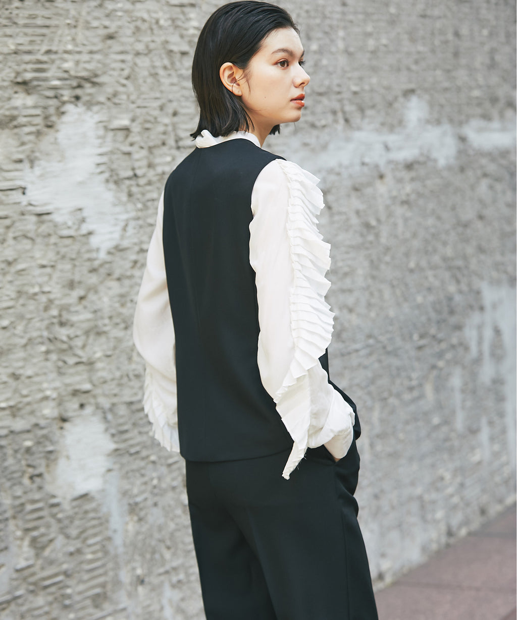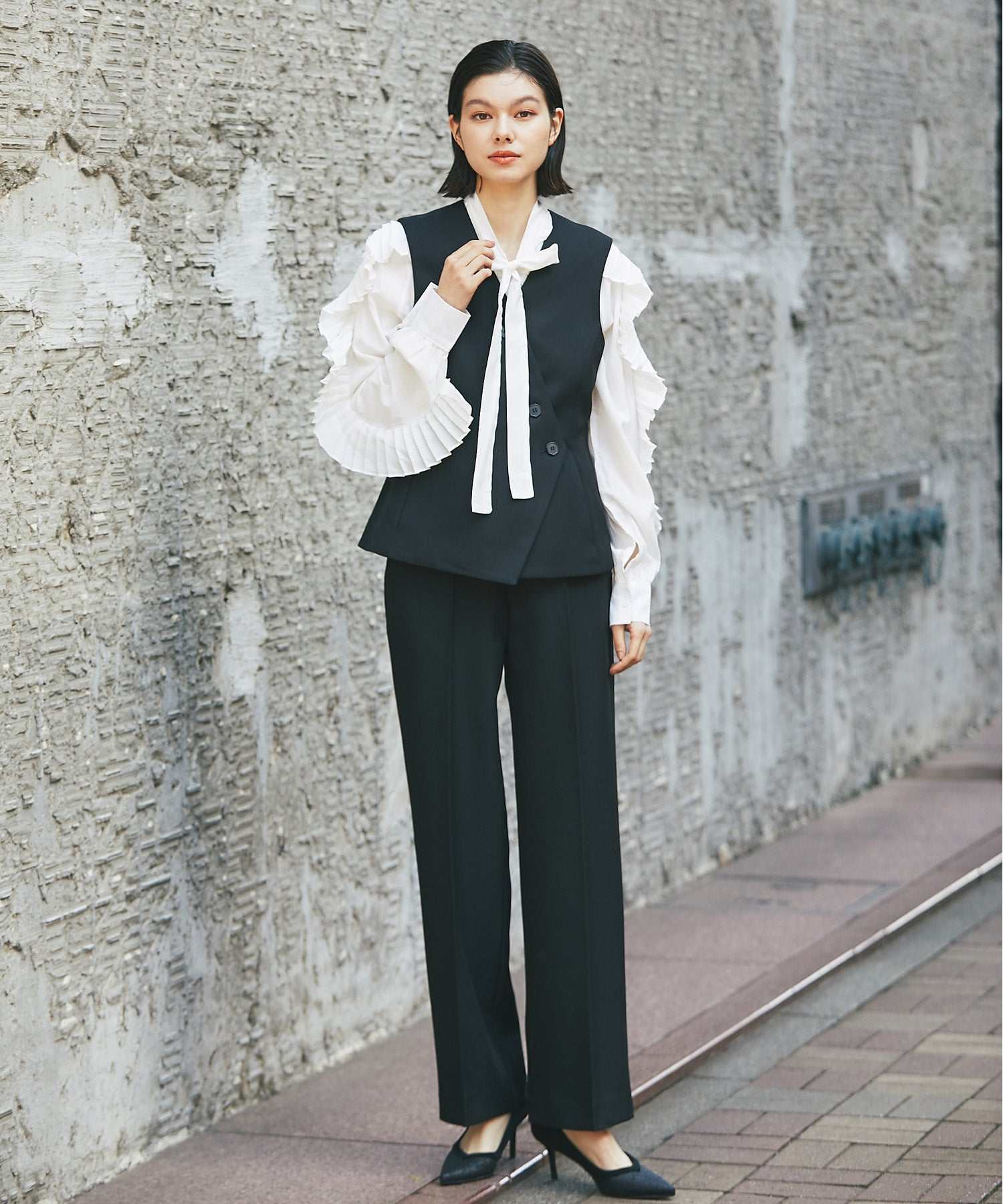 ● Easy to wear alone, and it’s great to pair with wide pants made of the same material, allowing you to wear it like a jumpsuit, which is a trend this season.