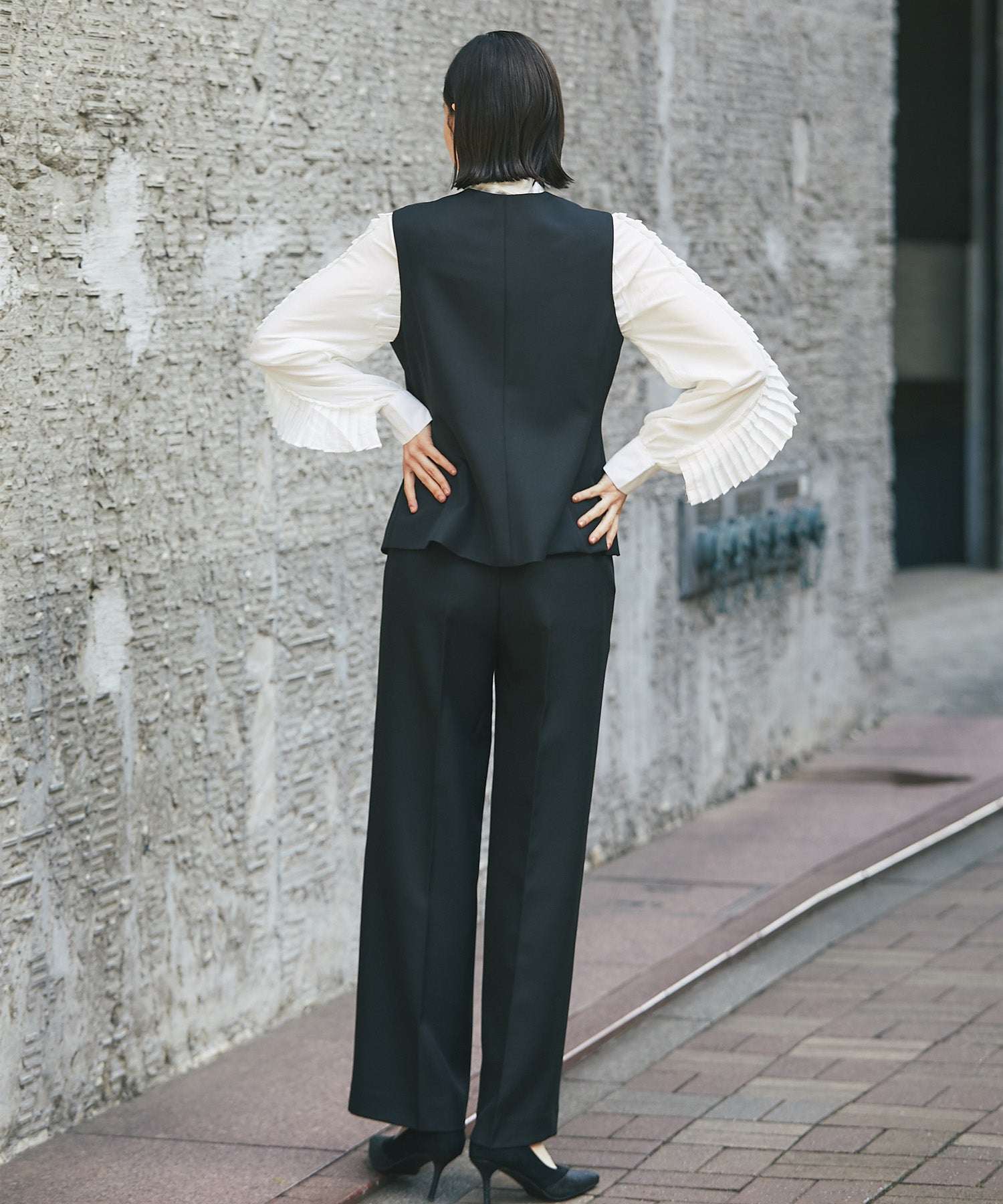 ● The perfect semi-wide fit is accentuated by a high waist, and the center press crease running down to the hem creates a vertical elongating style.