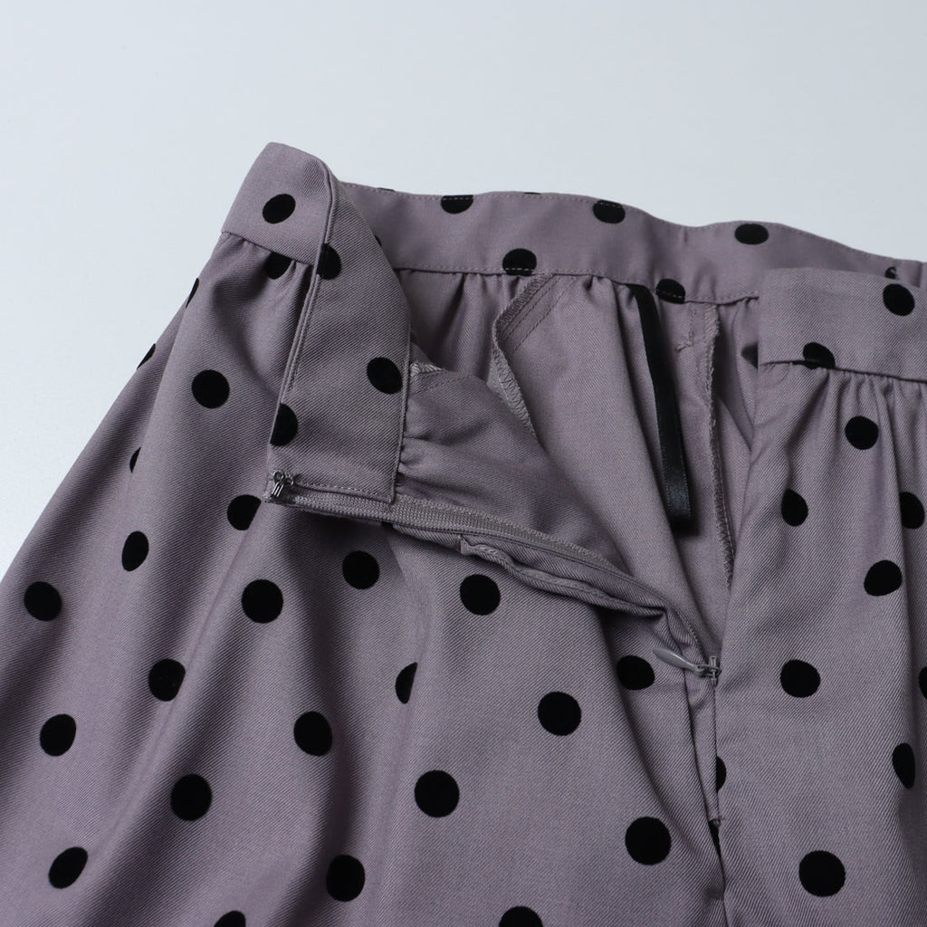 This piece has a slightly sweet atmosphere with a dot-patterned flock print, but the material has a bit of firmness, making it easy for adults to wear.