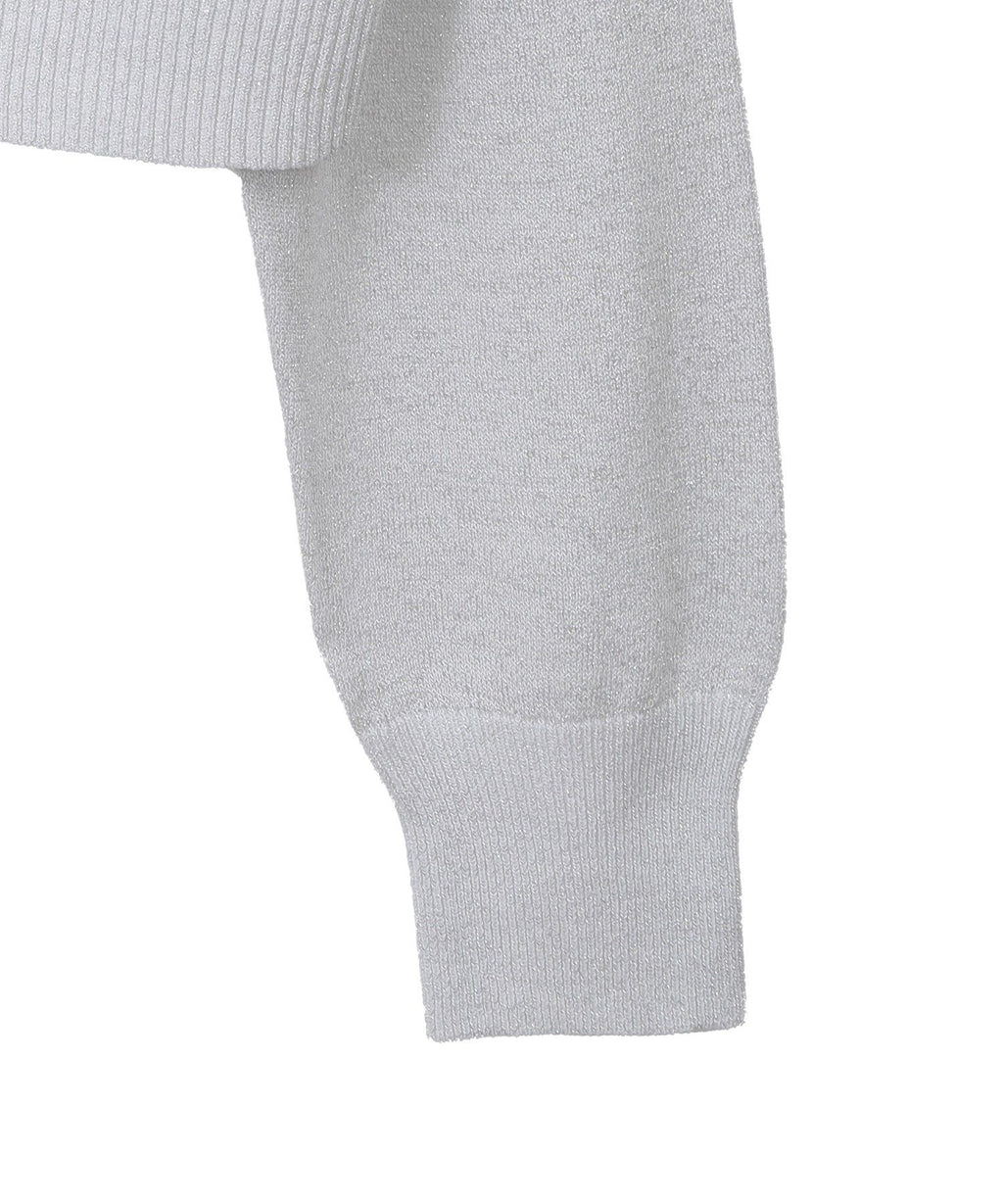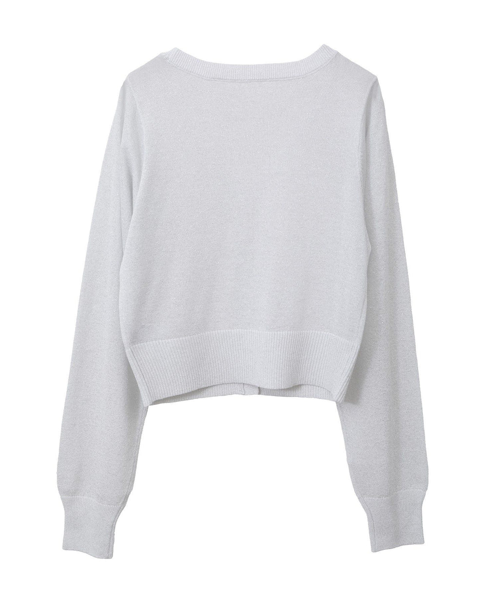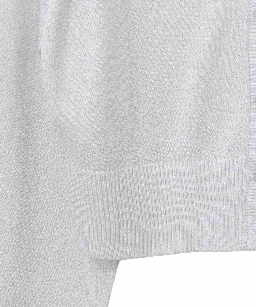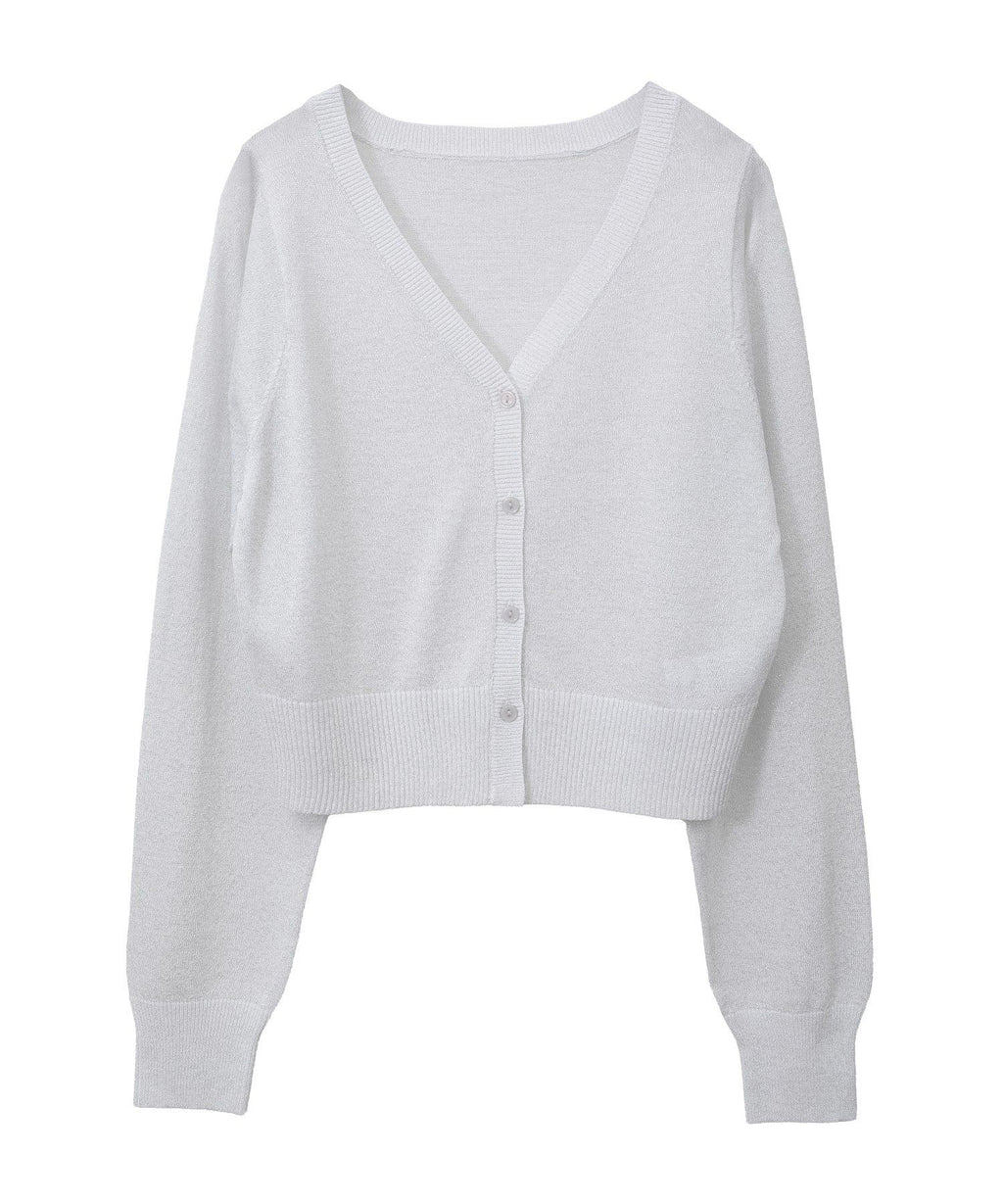 A design cardigan with a lamé & sheer material that supports elegant styling. With a slightly short length that is on-trend, it can be well balanced with a wide range of bottoms. The deep V-neck beautifully showcases the neck and collarbone line, which is also a nice point. This is a recommended item that completes a seasonal outfit just by throwing it on.