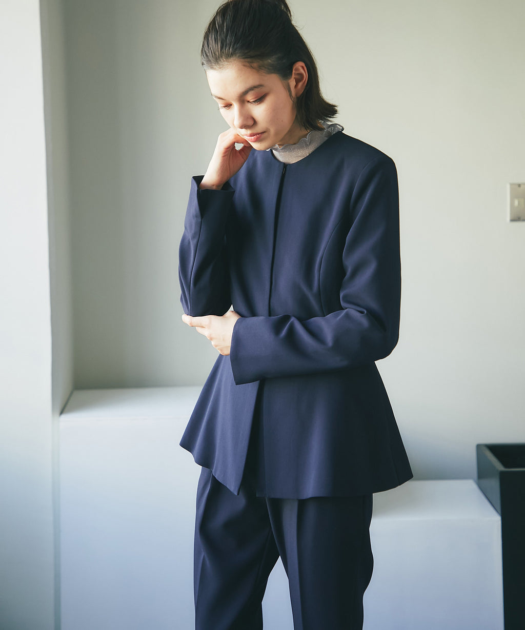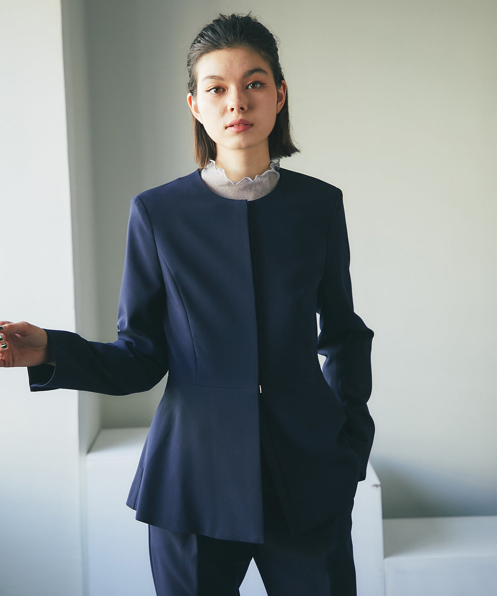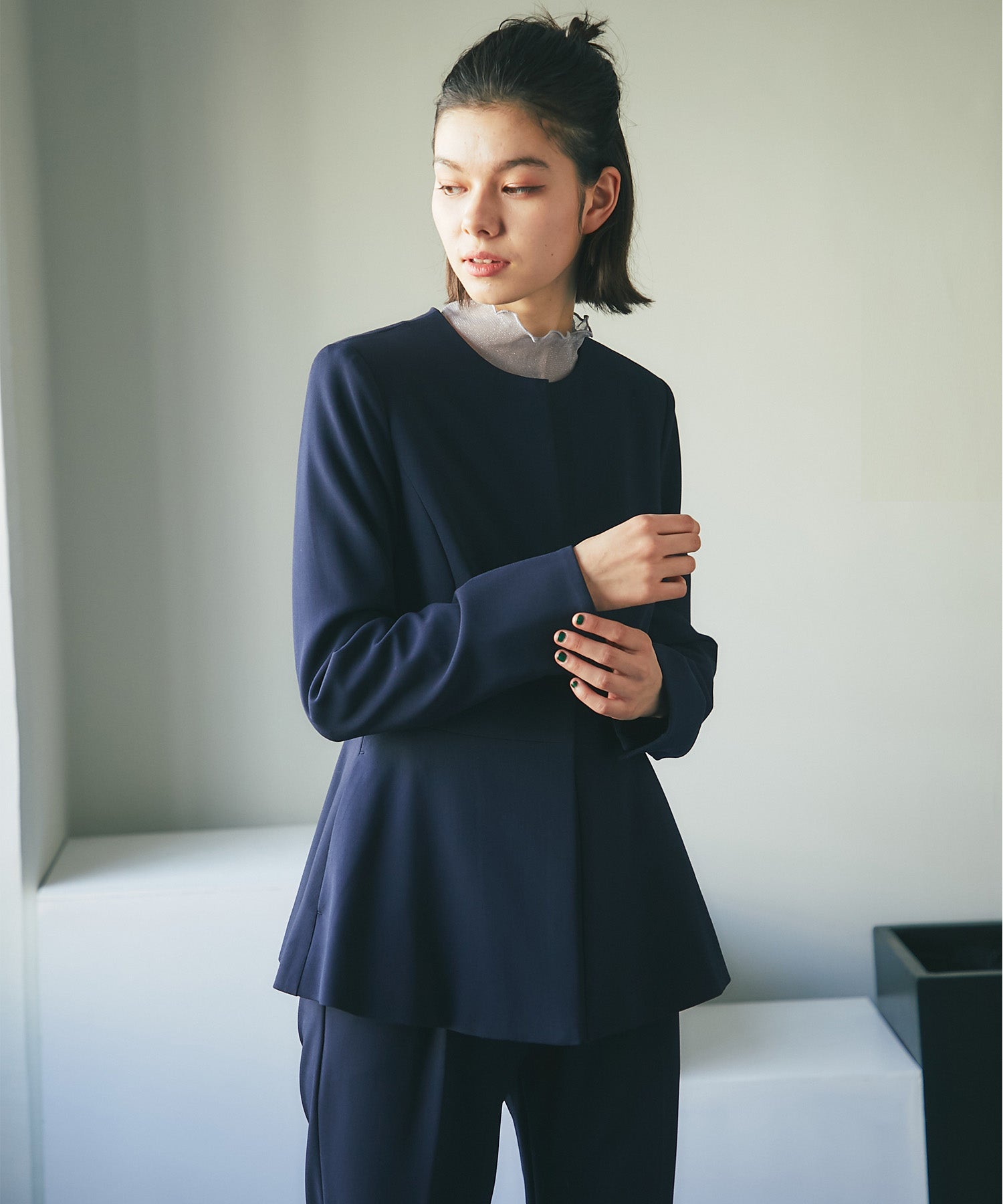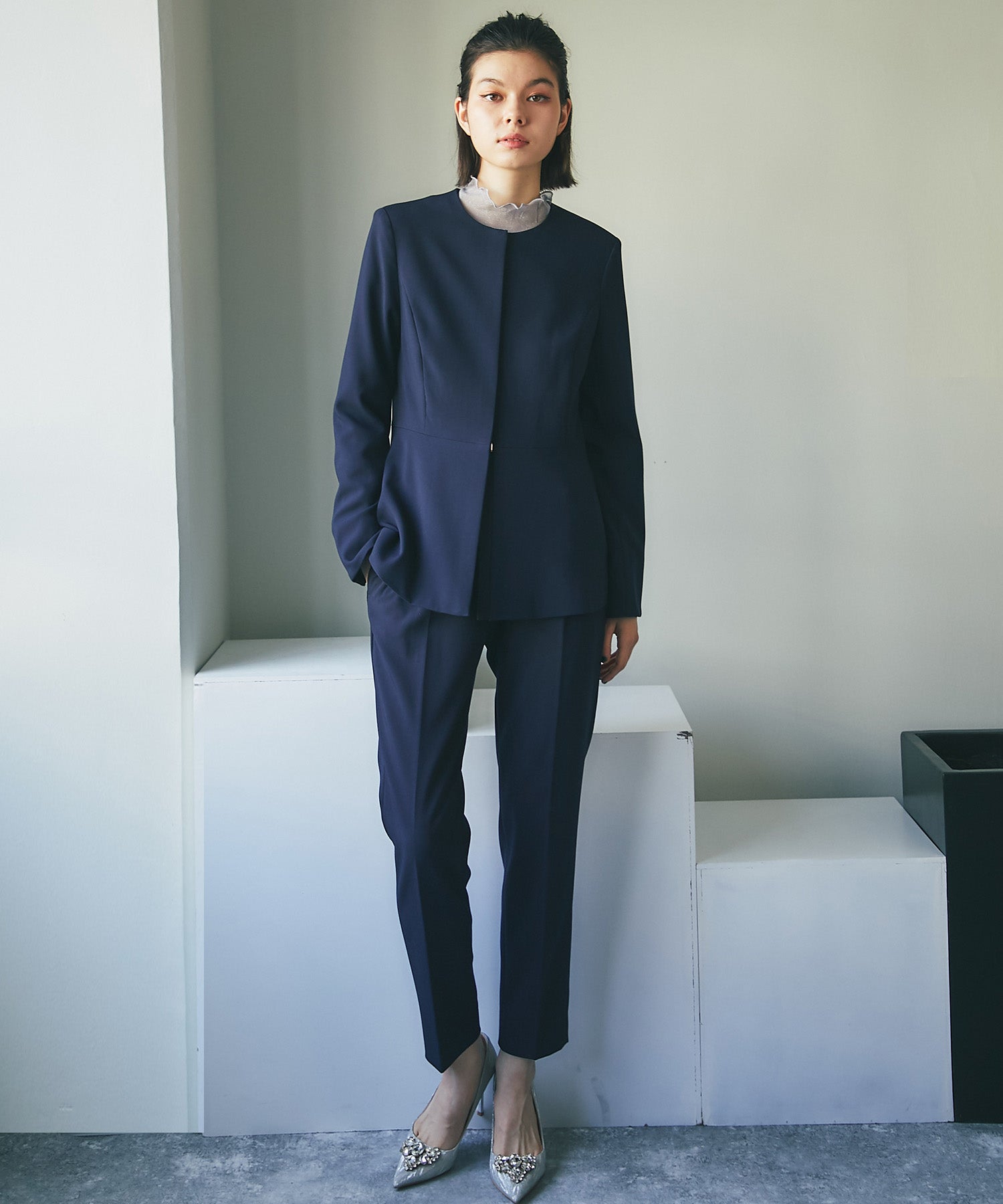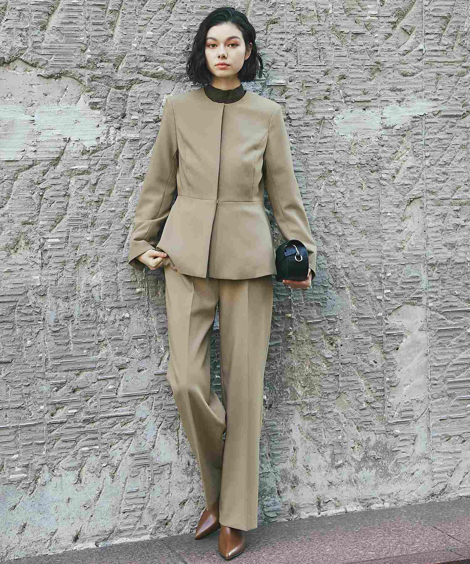 Peplum Jacket & Selectable Wide Pants or Tapered Pants 2-Piece Suit