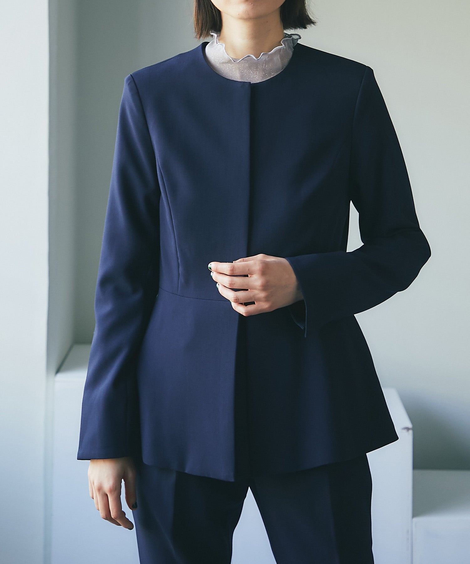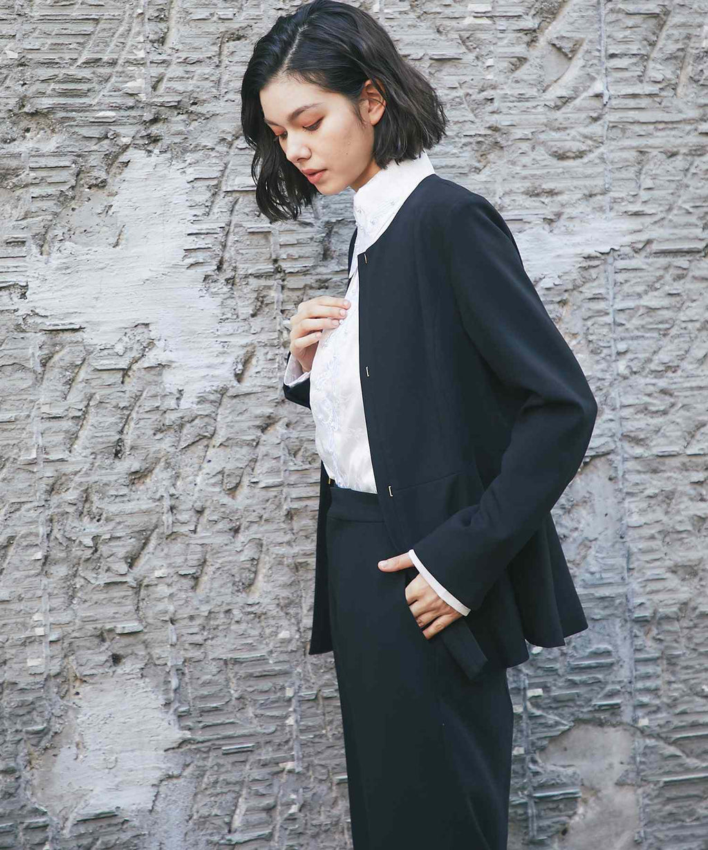 ● The jacket features a feminine design with a flare peplum silhouette with waist switching.
