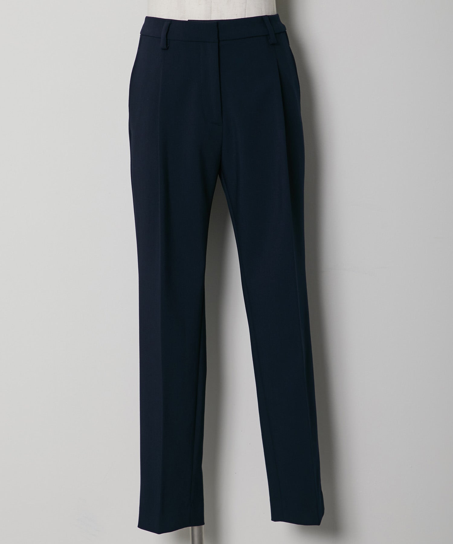 ● The semi-wide style is accentuated by a high waist that tightens the silhouette, and the center press running to the hem creates a vertical elongation.