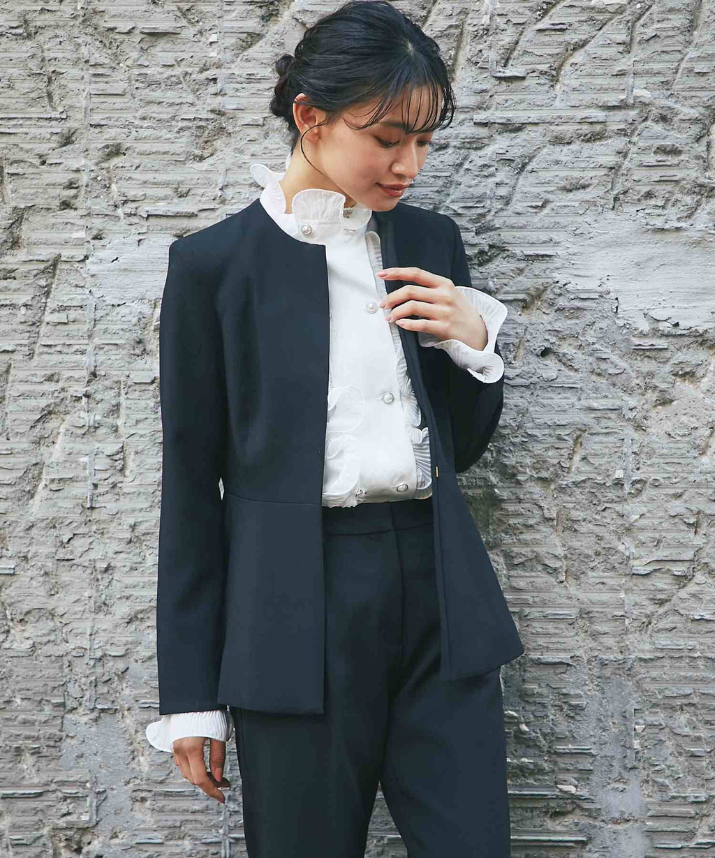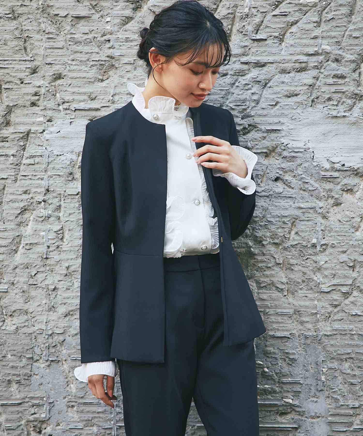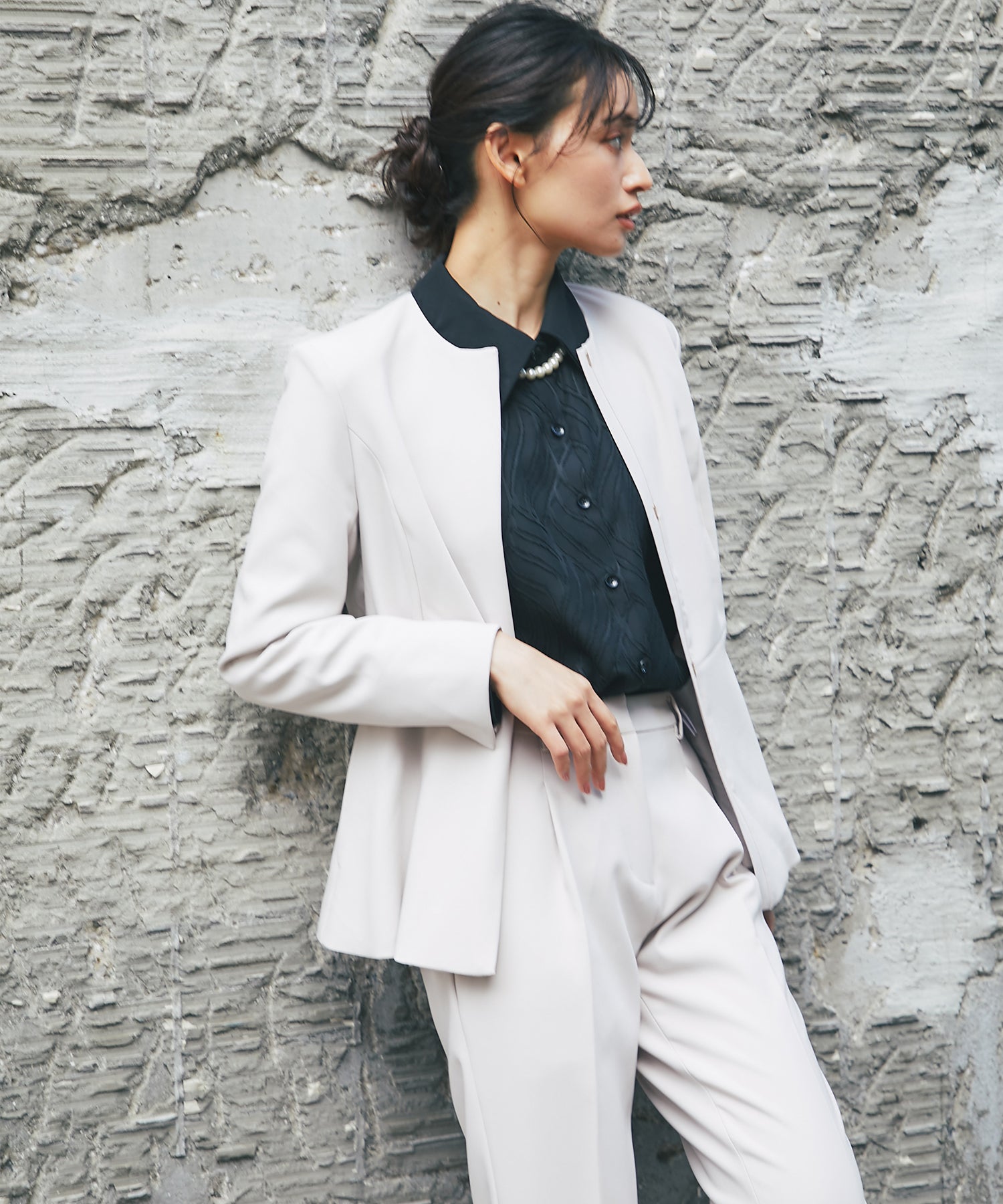 Smile Orchid No-Collar Peplum Jacket & Slacks Pants Set-up Suit
