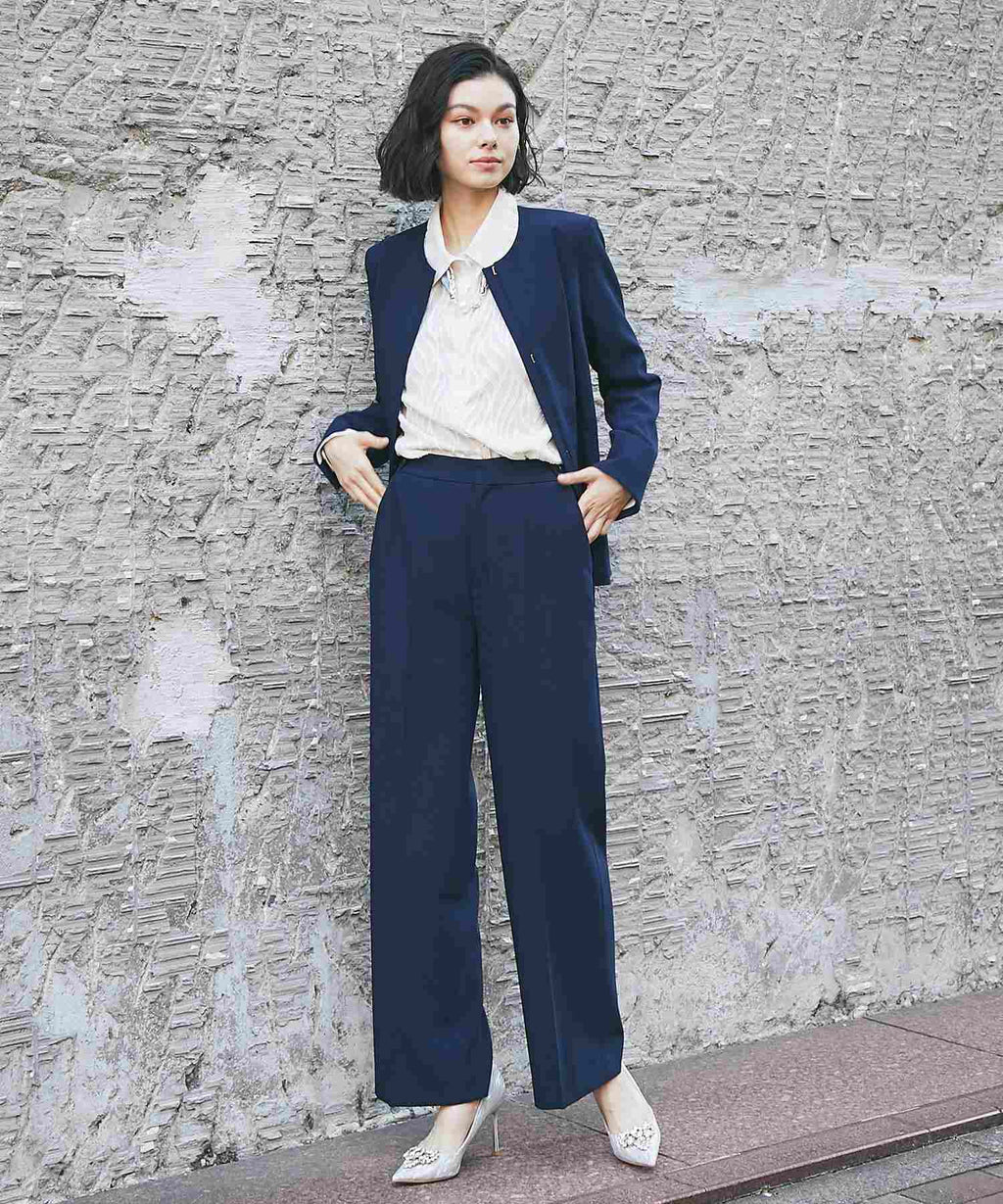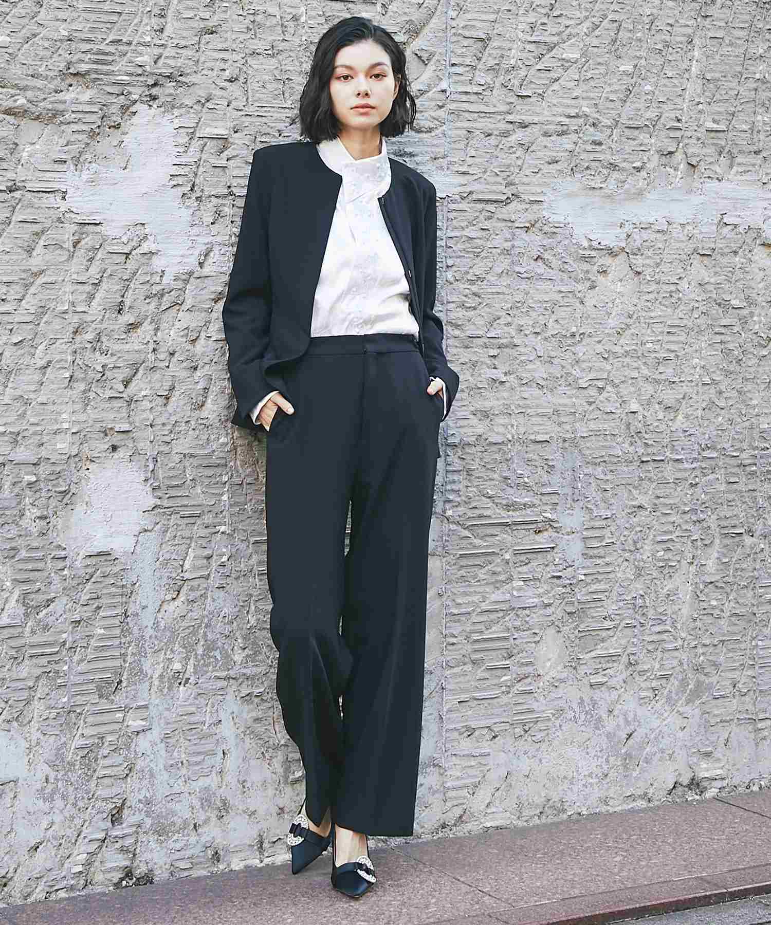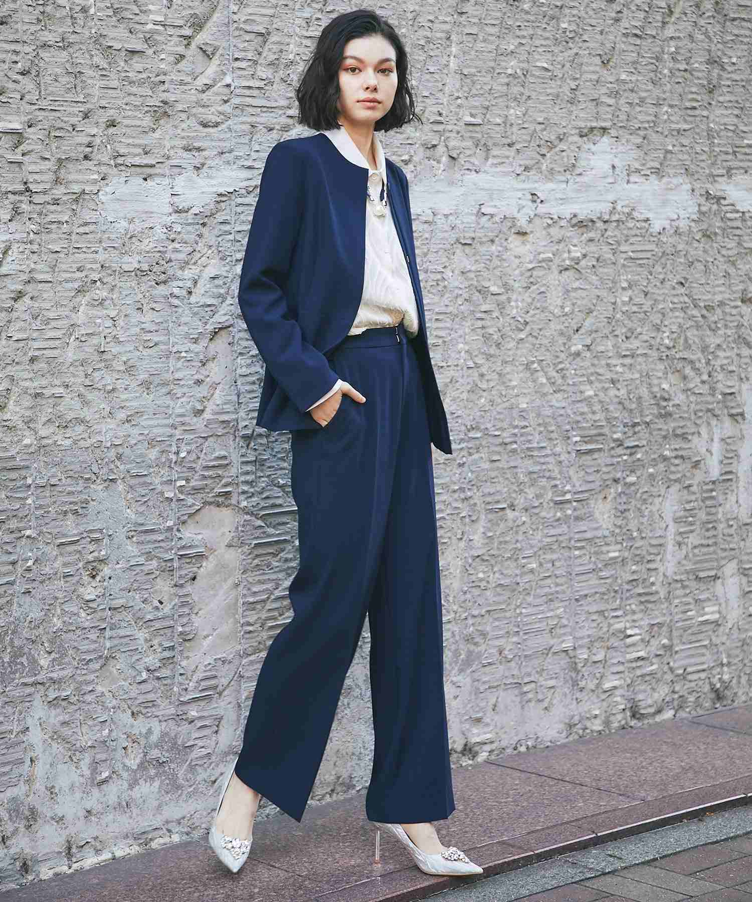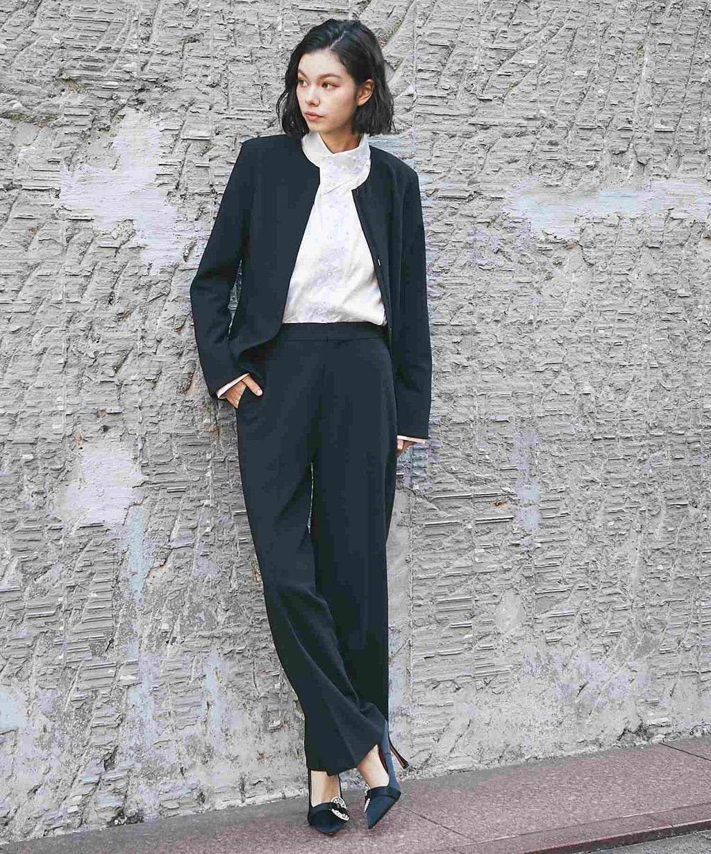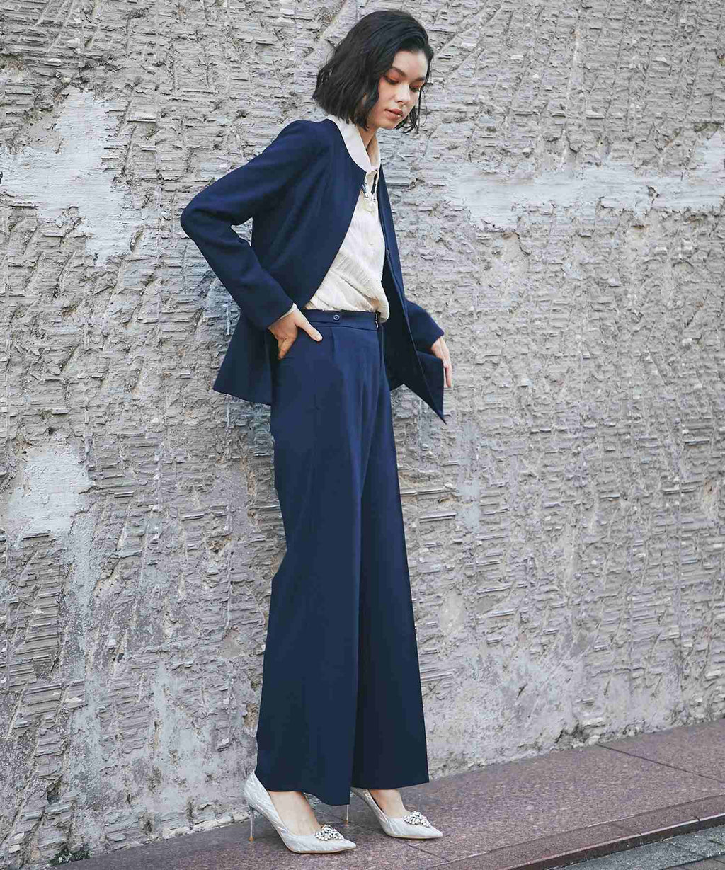 ● The elegant semi-wide pants use a non-stiff, supple material for a refined impression.