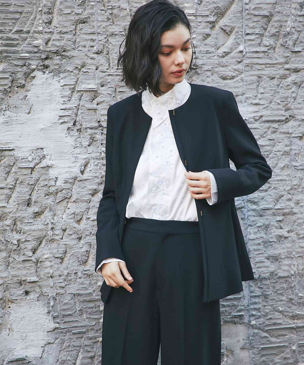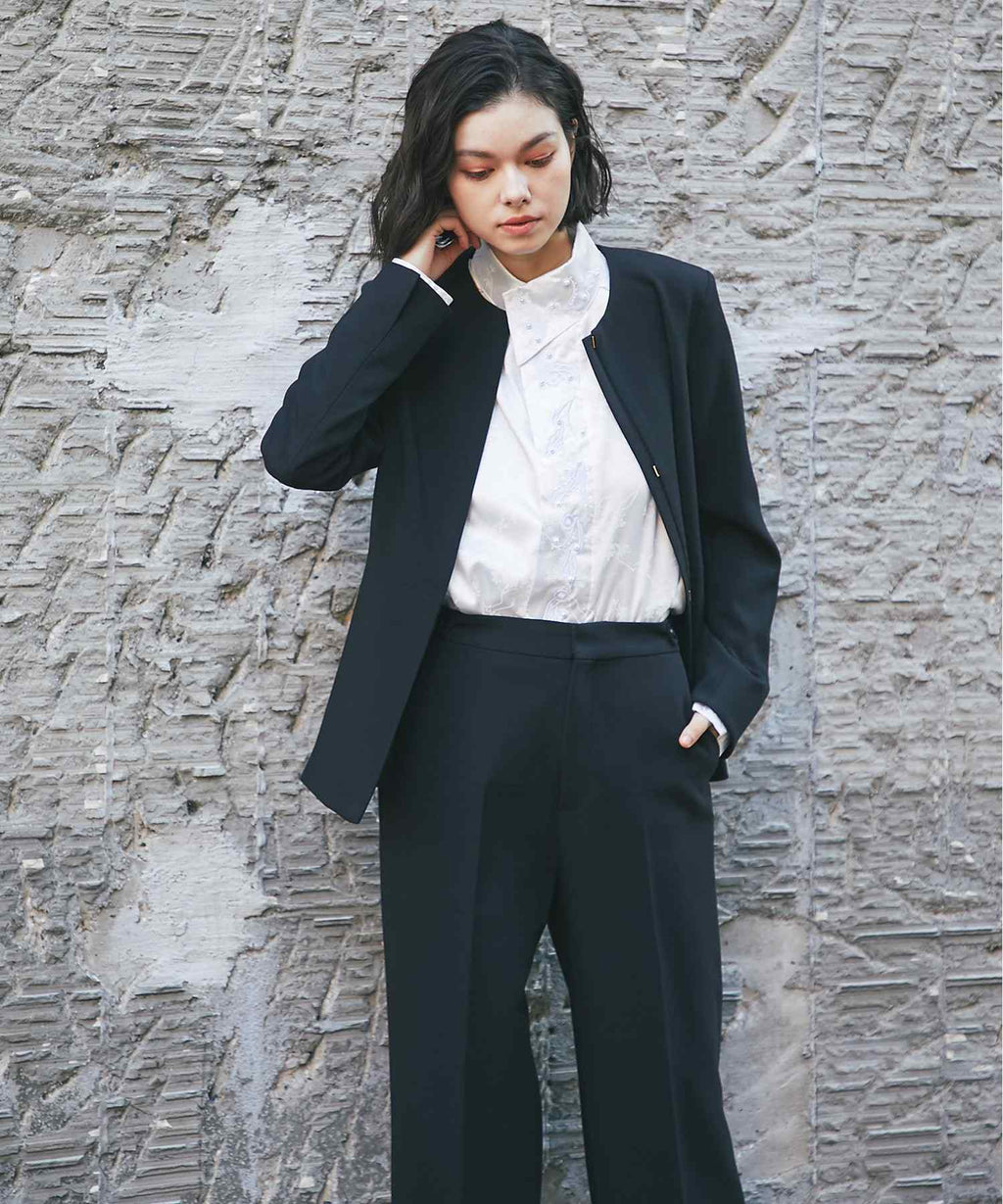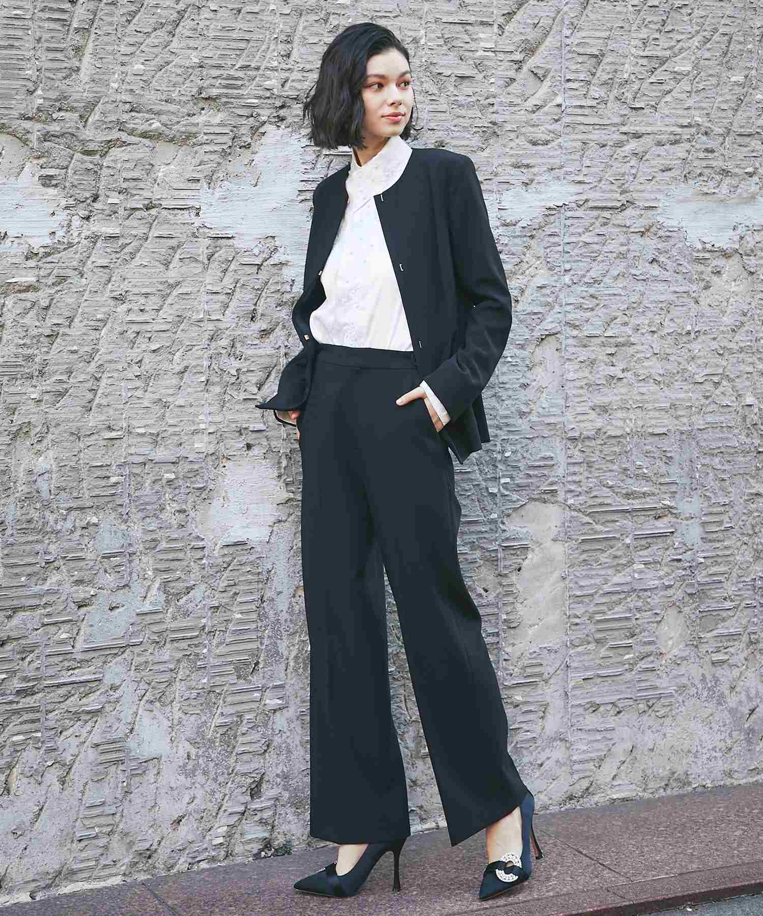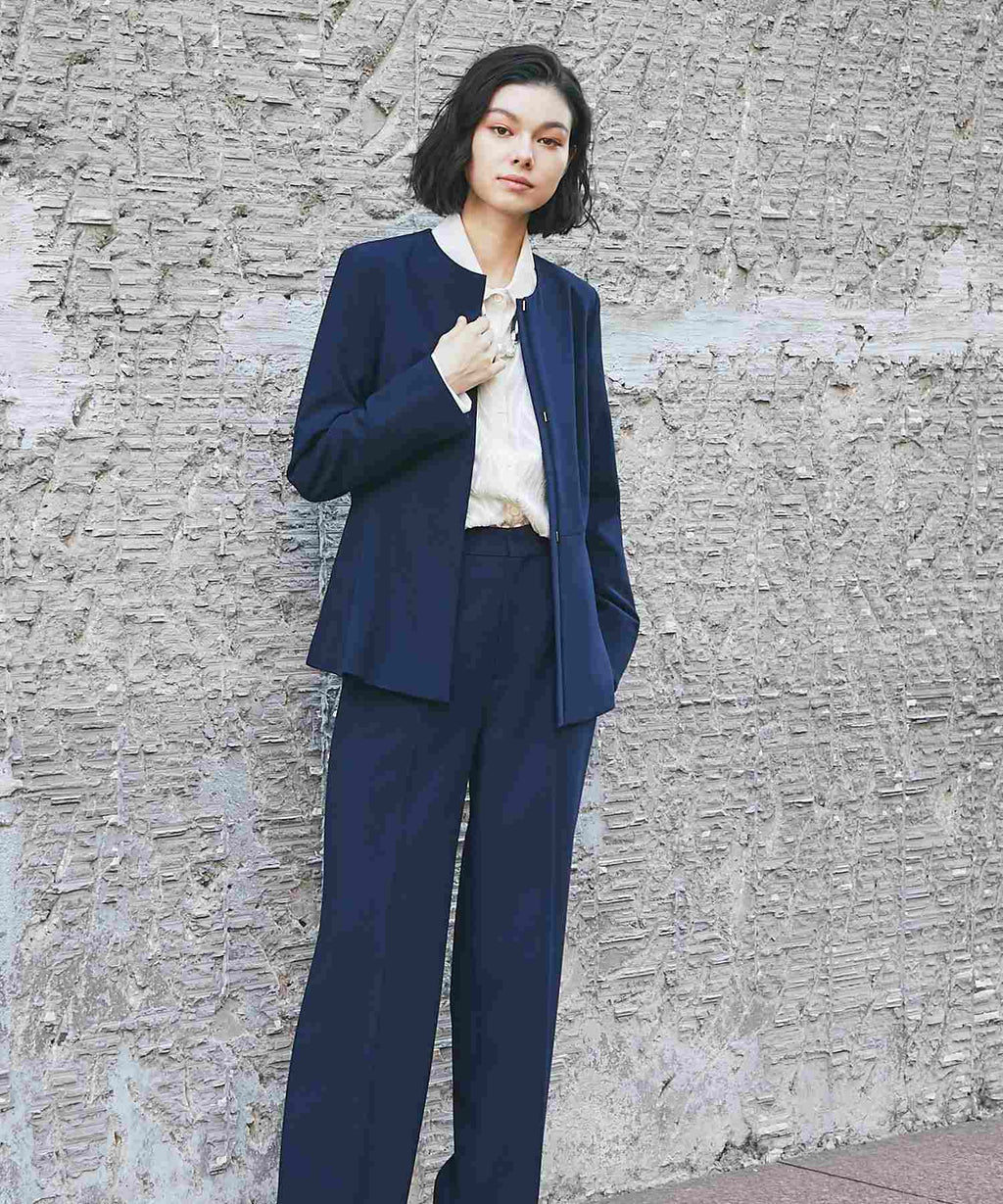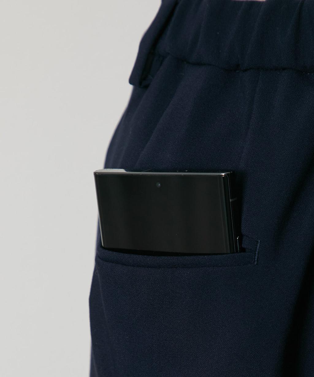 ● The elegant semi-wide pants use a non-stiff, supple material for a refined impression.