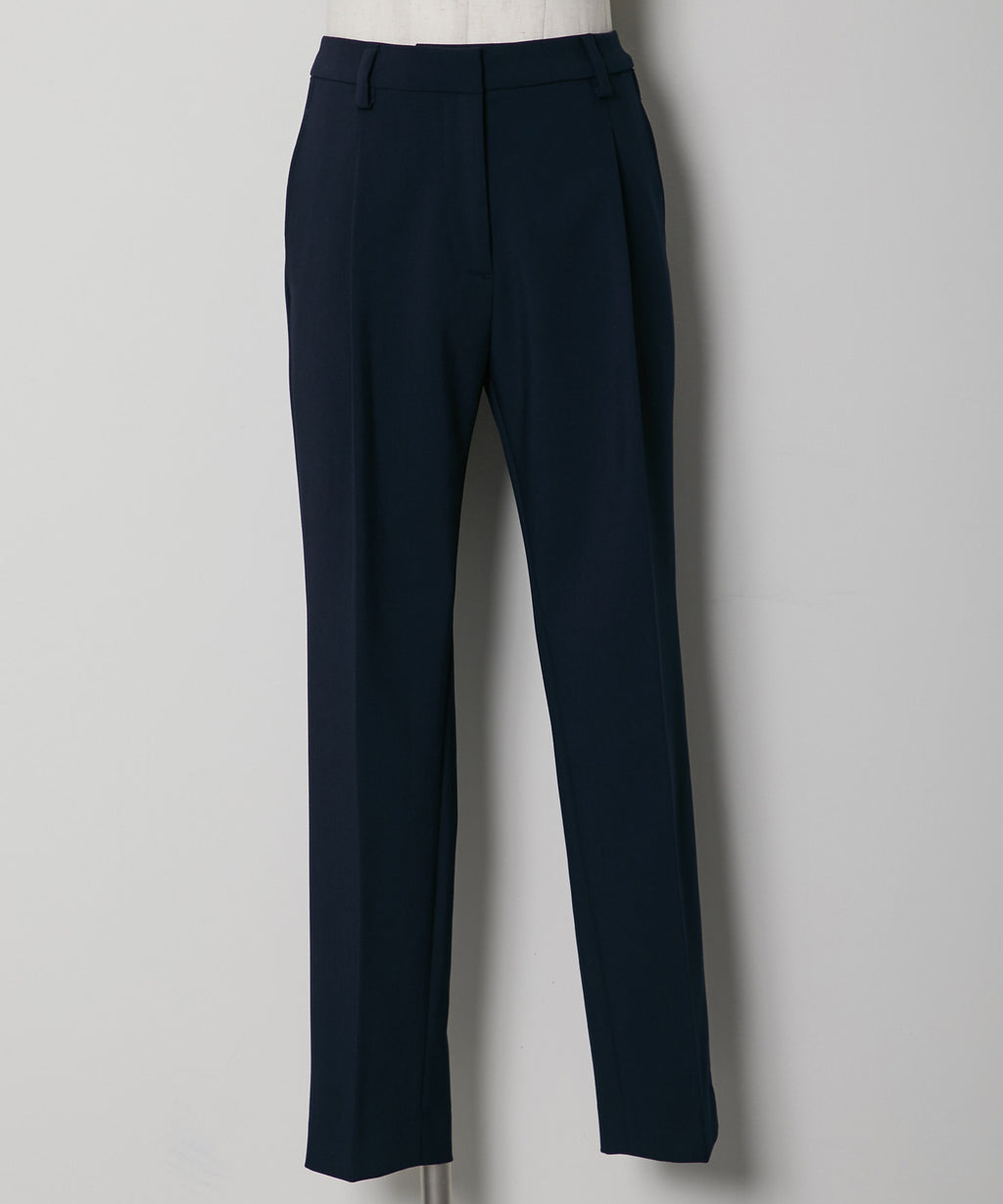 ● Tucked with a relaxed waistline that makes it easy to wear even for those resistant to slim pants, and a silhouette that minimizes the lines of the hips and thighs.