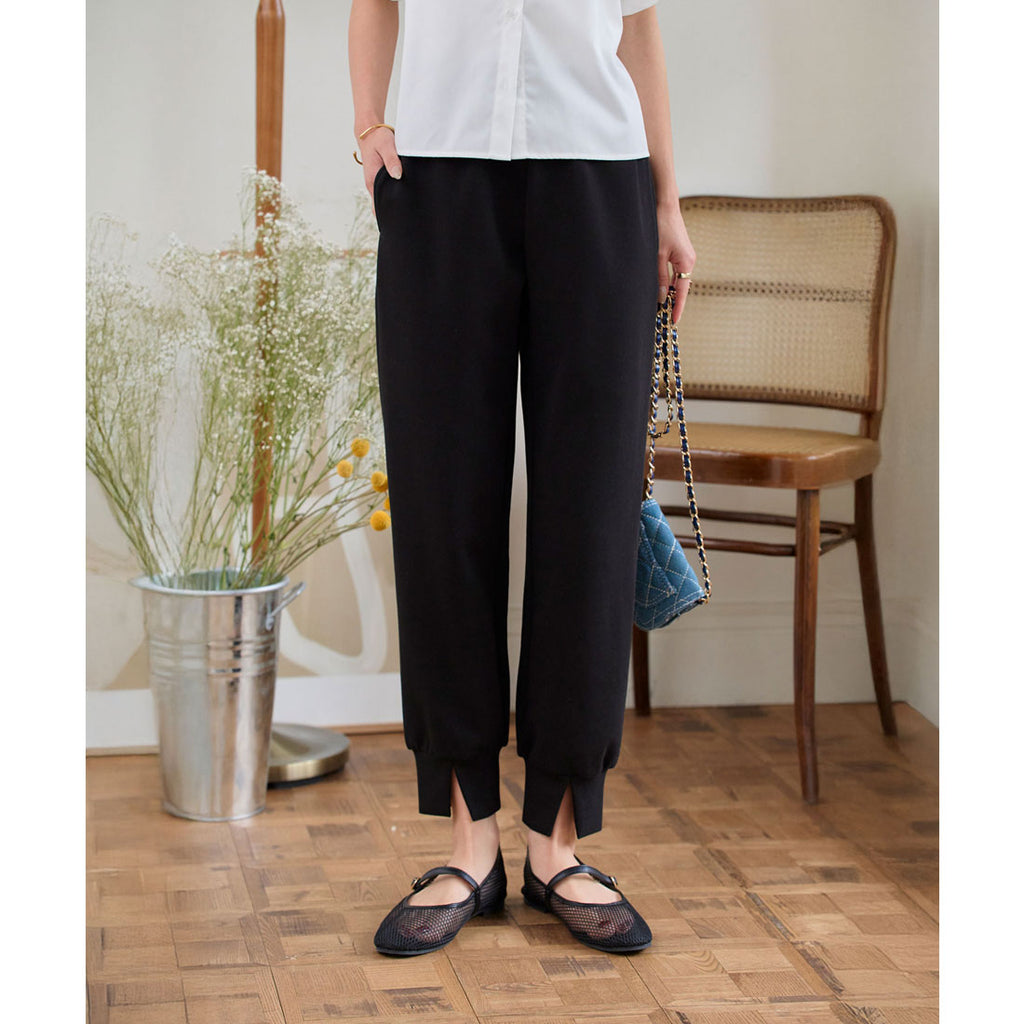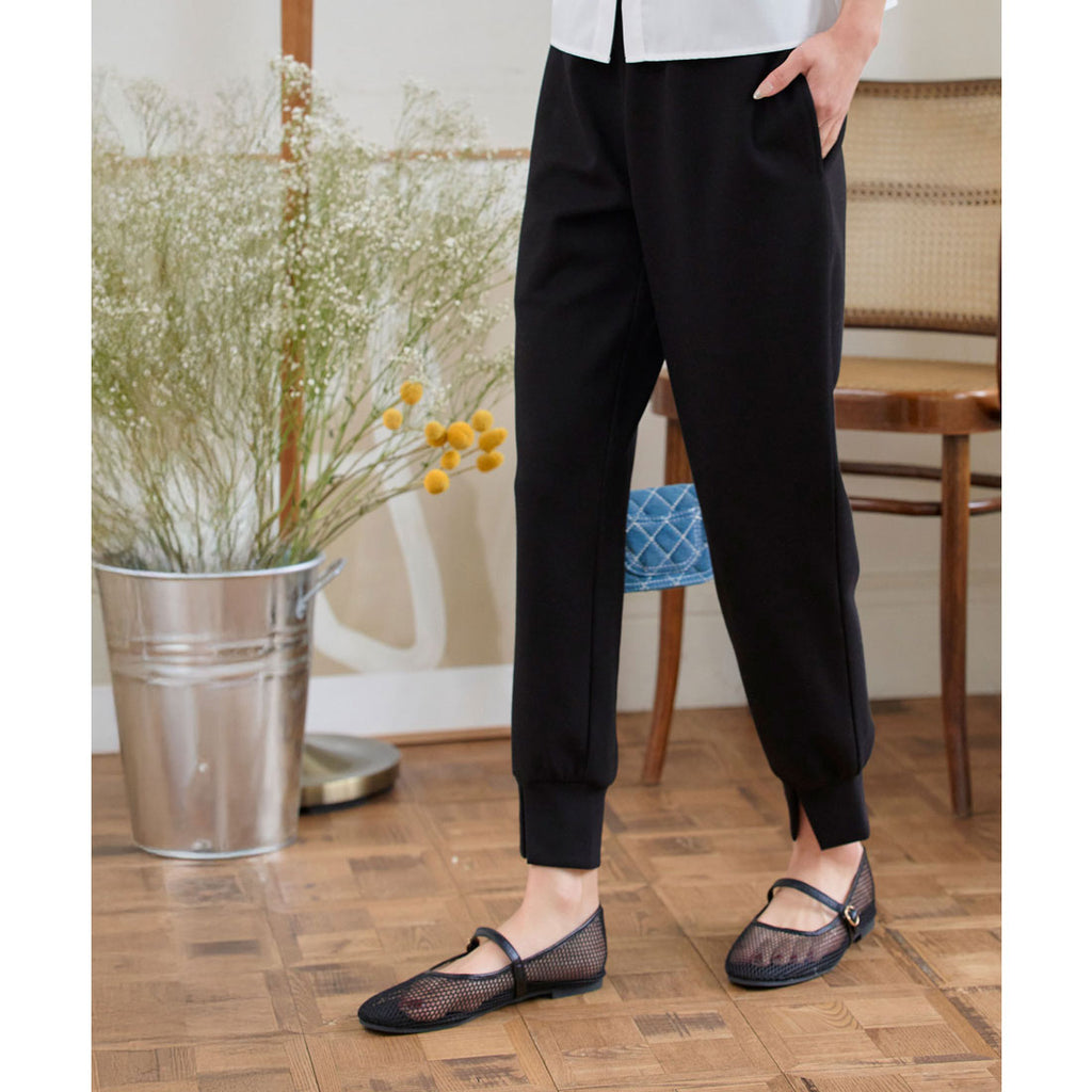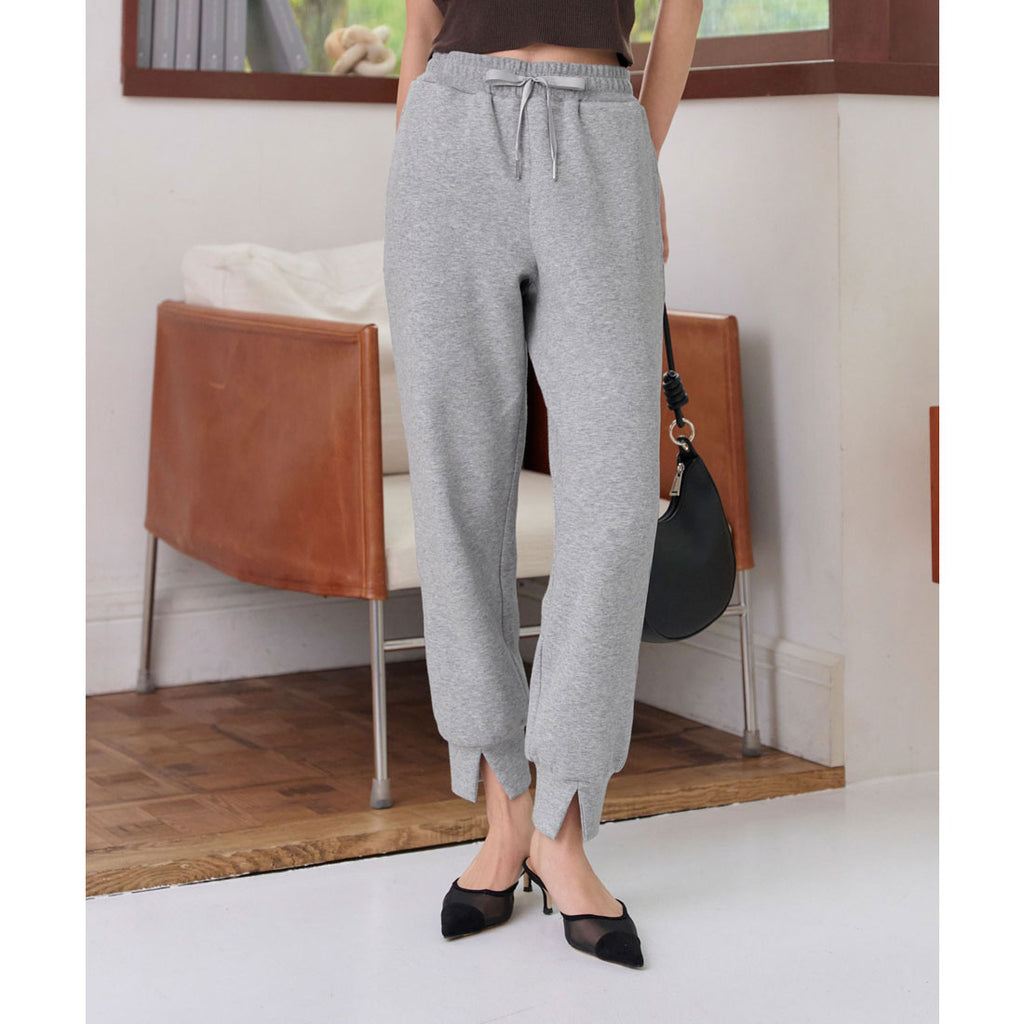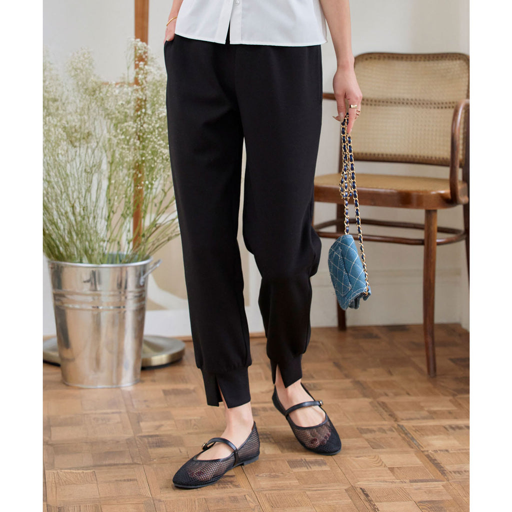 Moderately rough and naturally wearable slit-hem jogger pants.