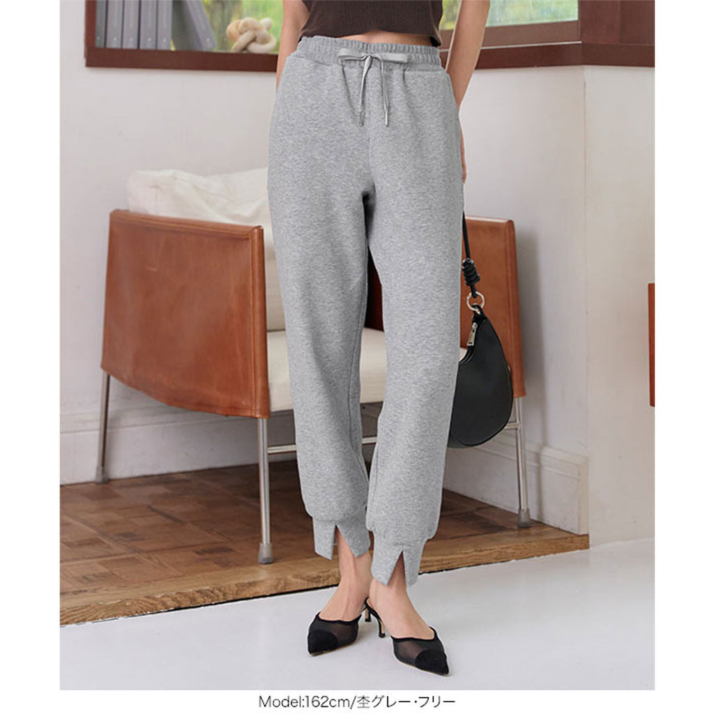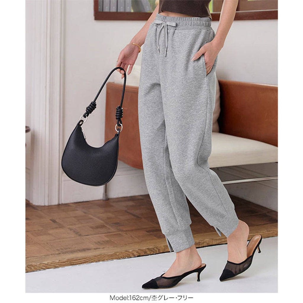 Jogger Pants for Women Tapered Bottoms [M4177] 20s 30s 40s Jogger Pants Neat Exercise Yoga Plus Size Sweat Bottom Pants Waist Elastic Satin Ribbon Stretch Stretchable Ponte Hem Slit Solid gray Spring Summer Autumn black Spring Summer Melange Casual