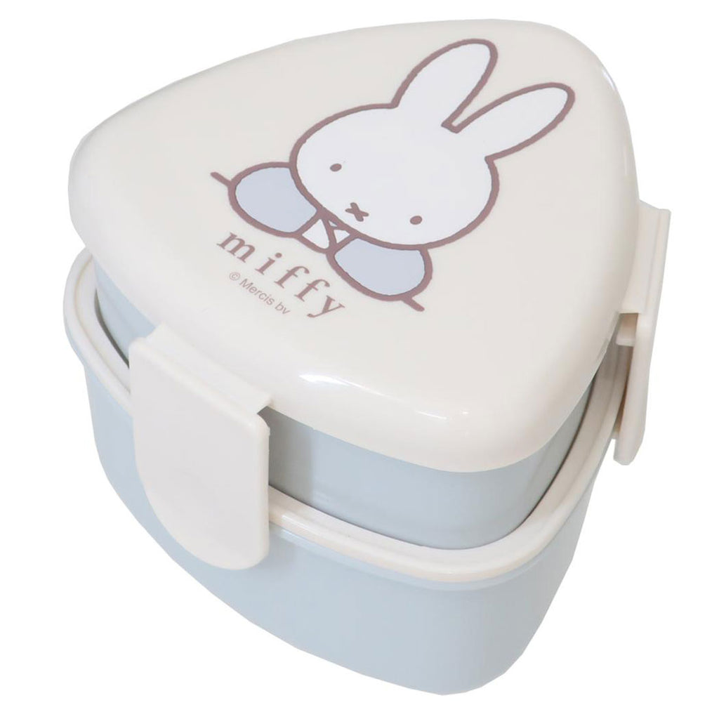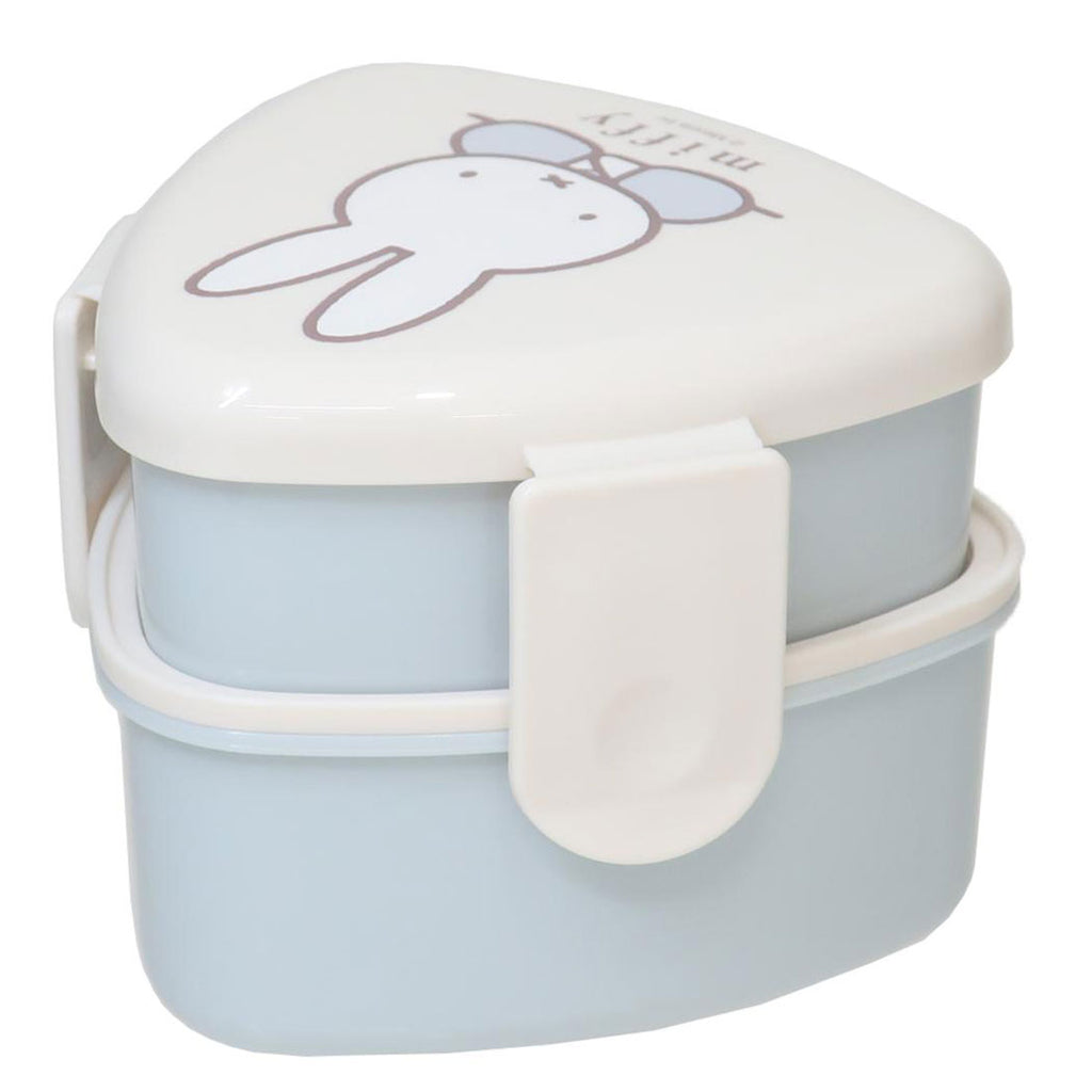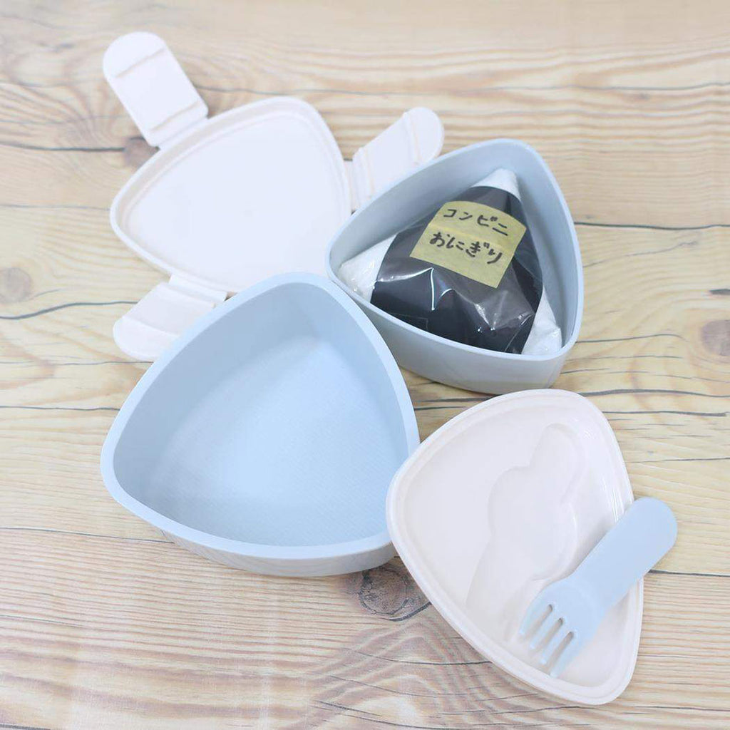 This is a [two-tier triangular rice ball lunch box] that can hold rice balls.