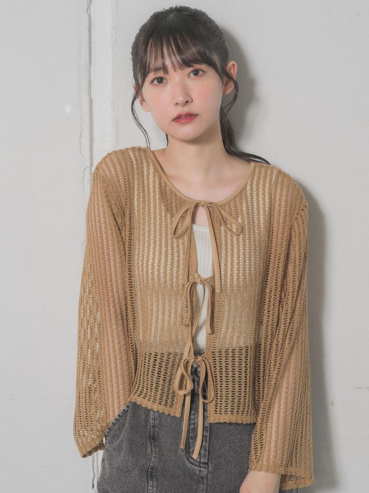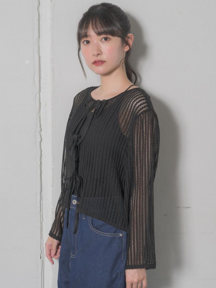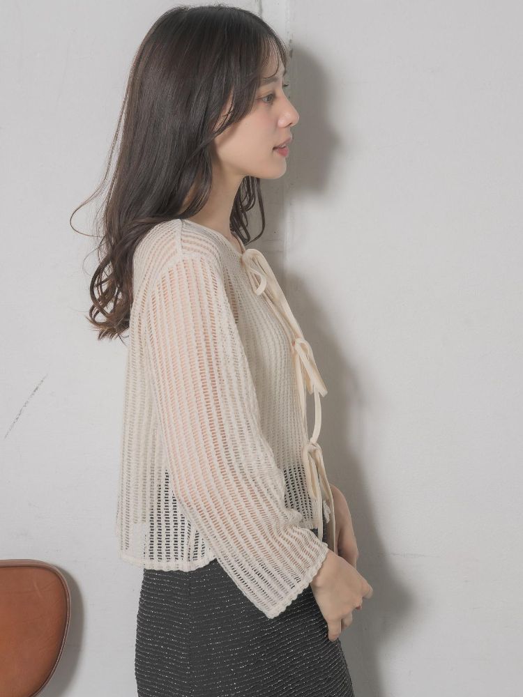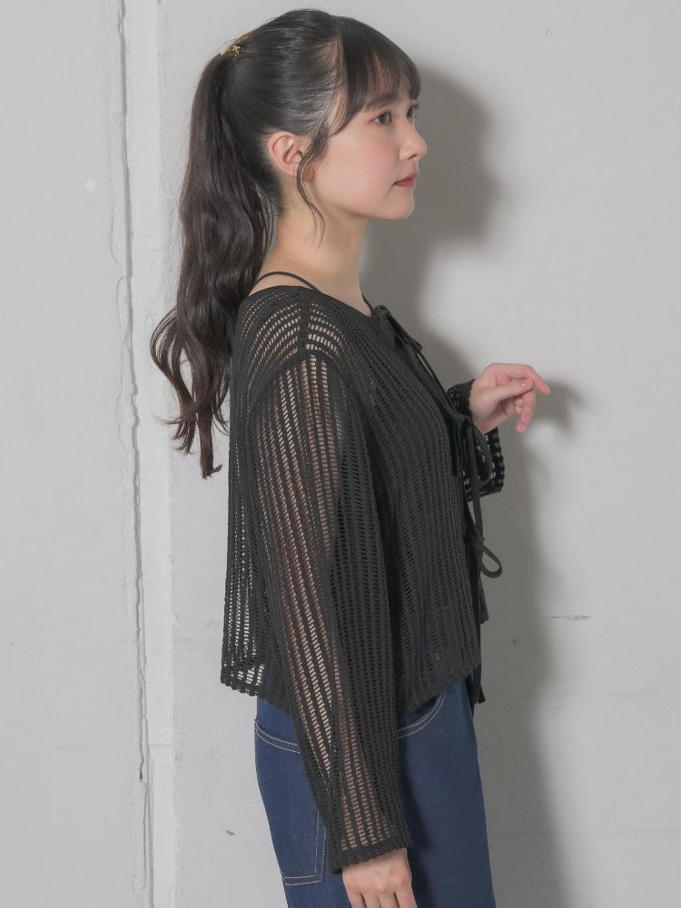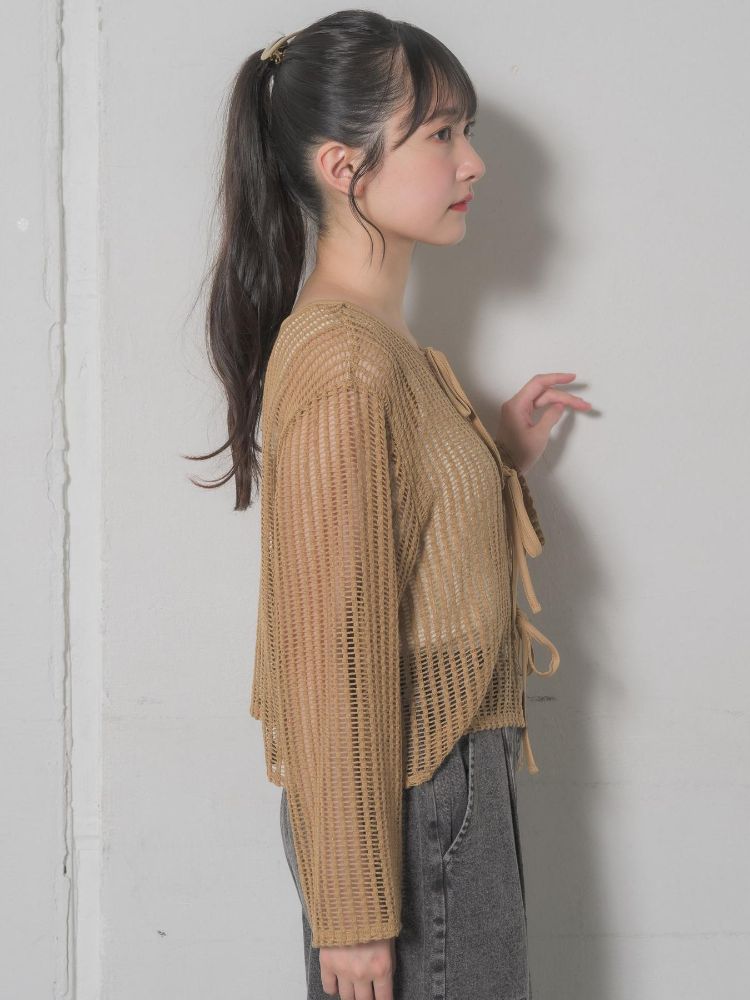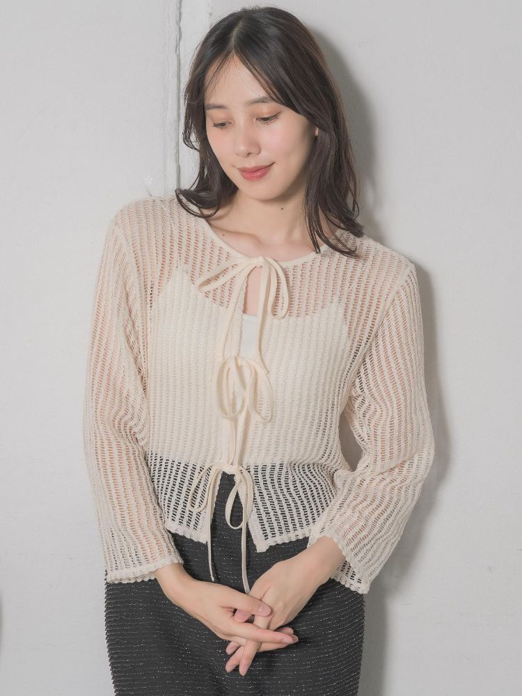 Item number: RE441511T002 / Item name: Ribbon Mesh Cardigan