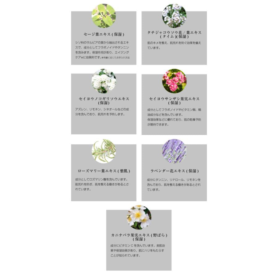 (1) Moisturizing: Contains 7 types of organic certified ingredients along with water-soluble collagen and sodium hyaluronate.
