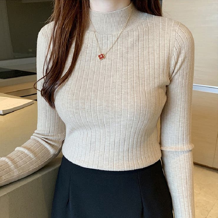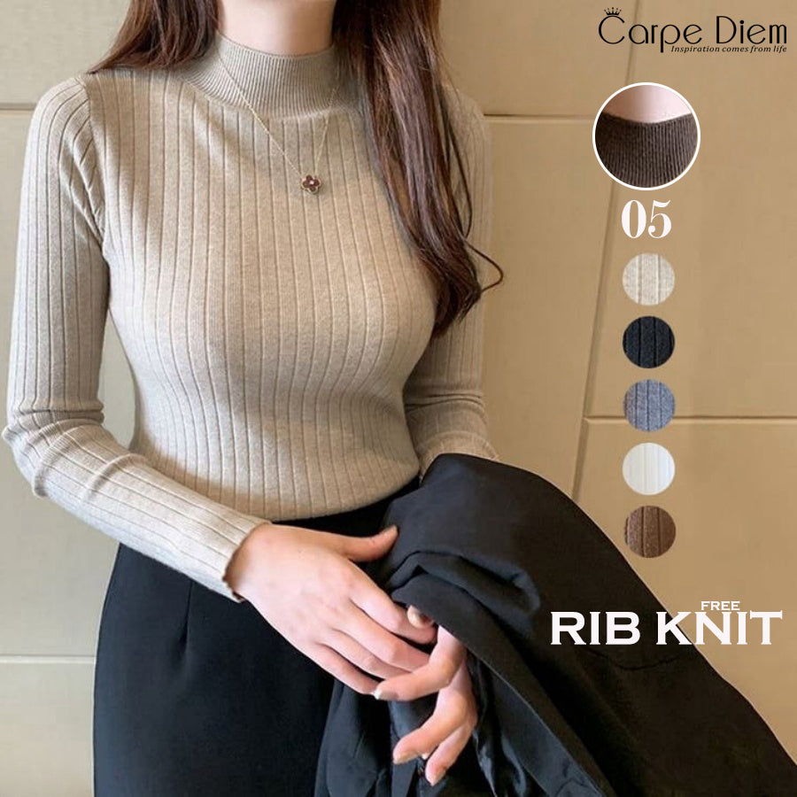 Carpe diem Knit Top Long Sleeve Turtleneck High Neck Rib Knit Thin Knit Sweater Long Sleeve Korean Knit Office Casual Cut and Sew Stylish