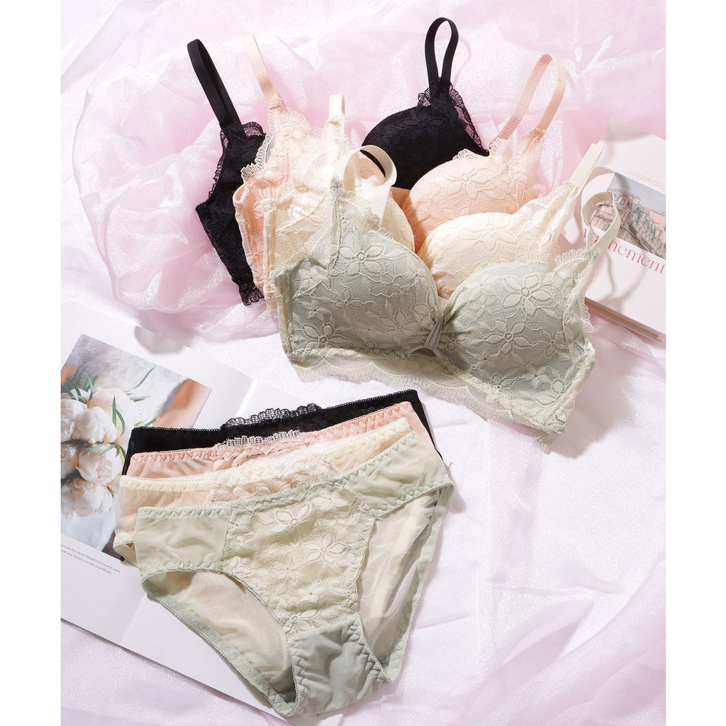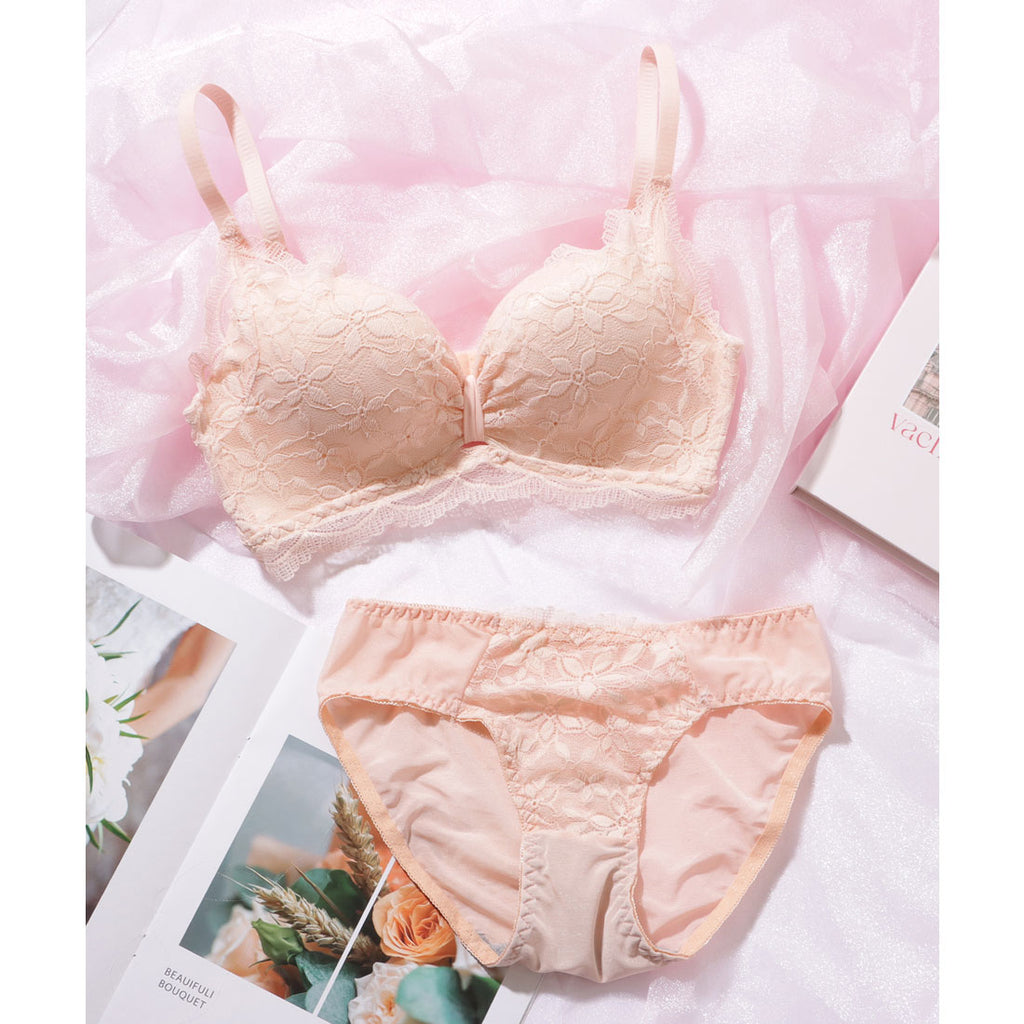 Lace Ladies Lace Ladies Ribbon Gather Cutout Flower Lace Bra & Shorts Set【Non-returnable Item】
