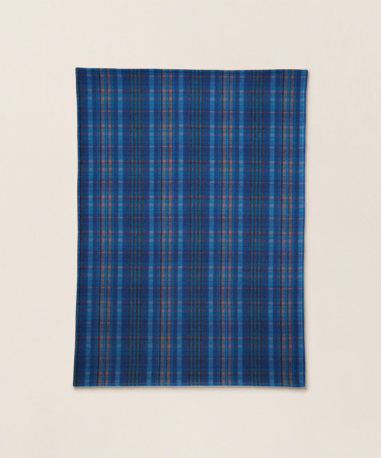 A blanket featuring a colorful yarn-dyed check pattern on the surface and a plain back, finished with a soft brush processing on cotton.