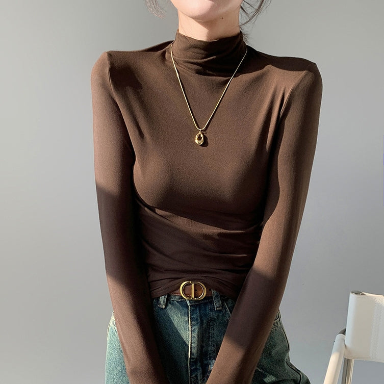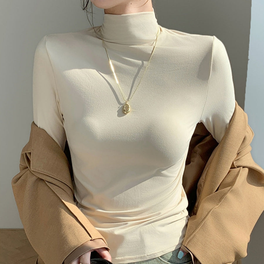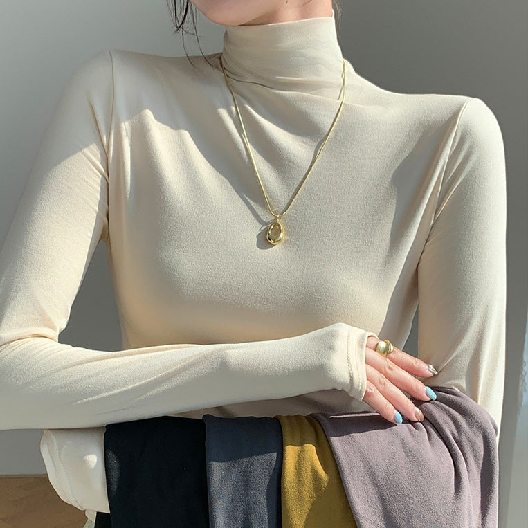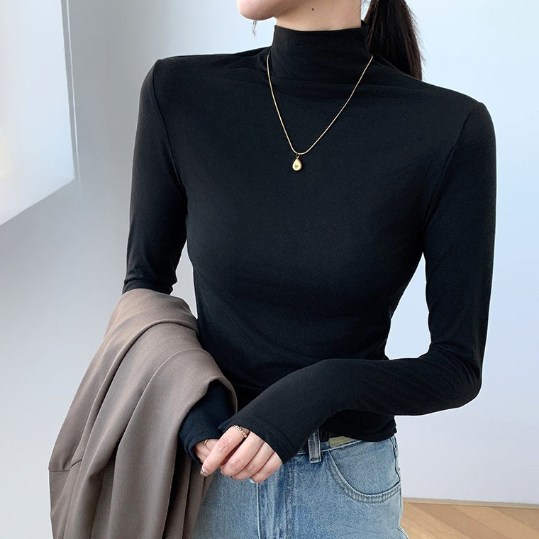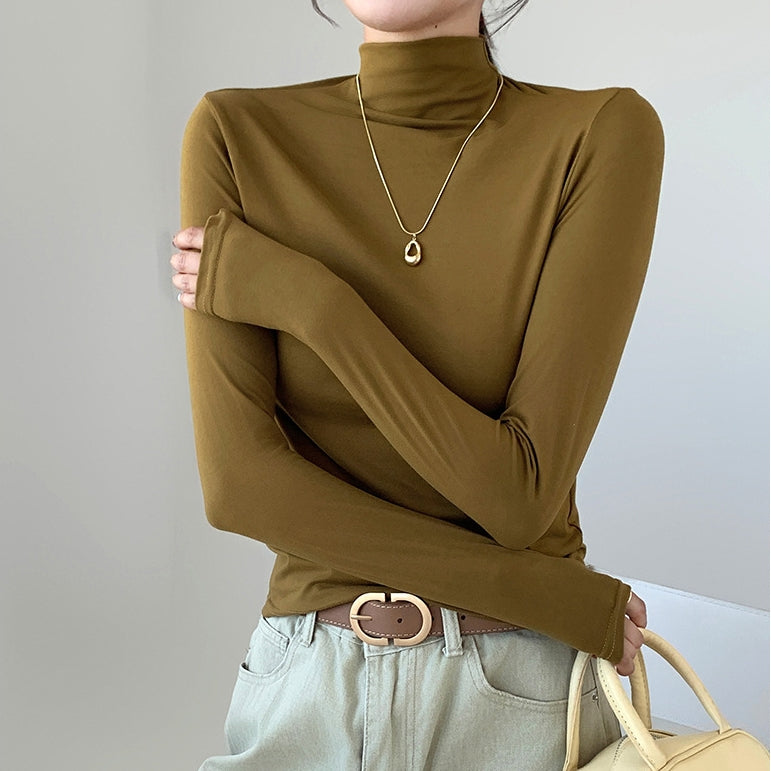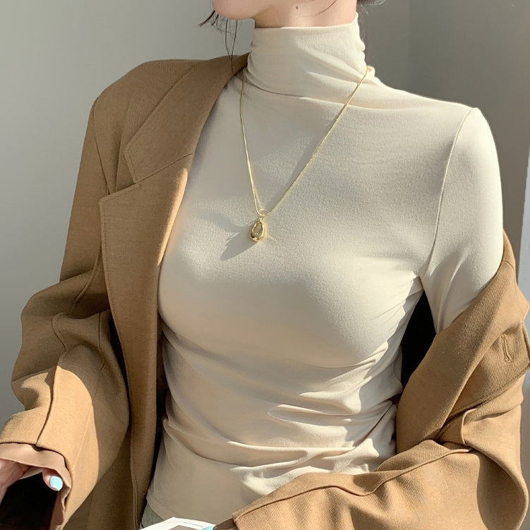 Under knitwear or cardigan → Keep warm up to the neck and create an elegant impression