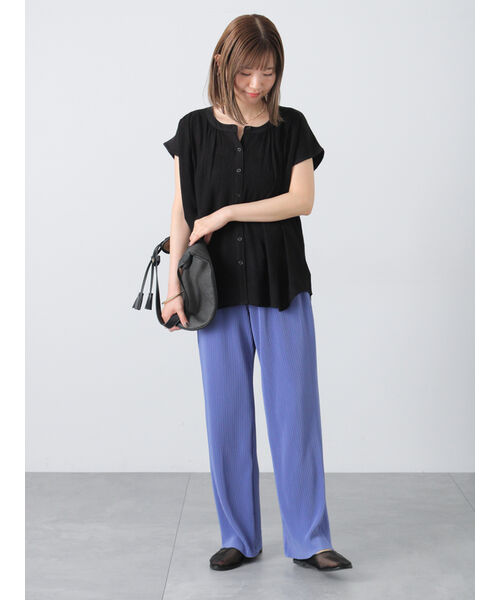 Long pants with slim pleats that create an elegant I-line silhouette.