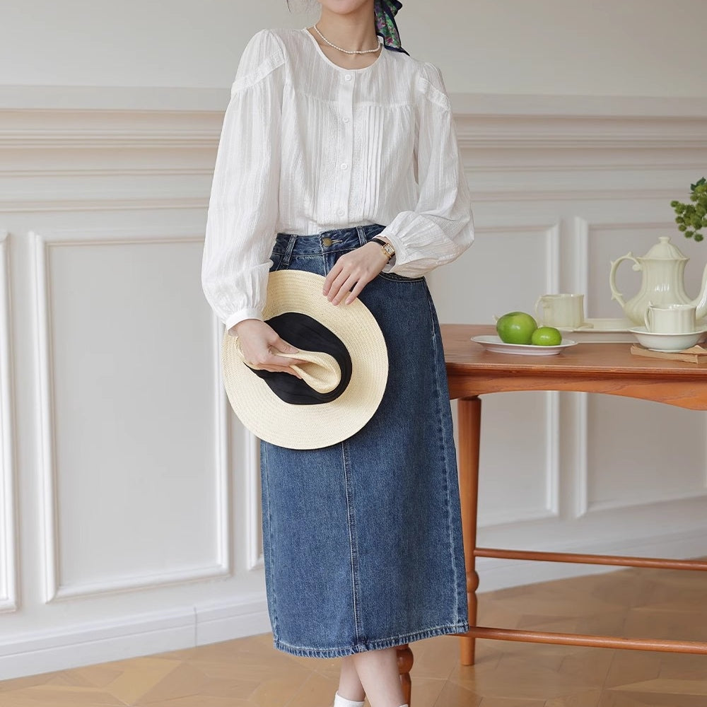 A 'wearing appearance' shirt blouse that is simple yet enhances femininity.