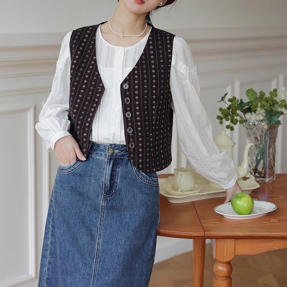 The round neck and delicate lace design give an elegant impression, making it easy to match with various styles such as denim and skirts.
