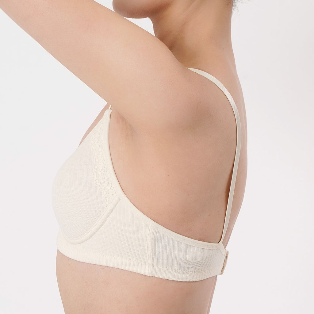 While creating a natural roundness, it provides firm bust support. The kihada (Kihada) bra, with the concept of 'comfortable skin,' features a mold cup type that is less noticeable under outerwear, with a four-stage hook and an adjustable shoulder strap for a perfect fit.
