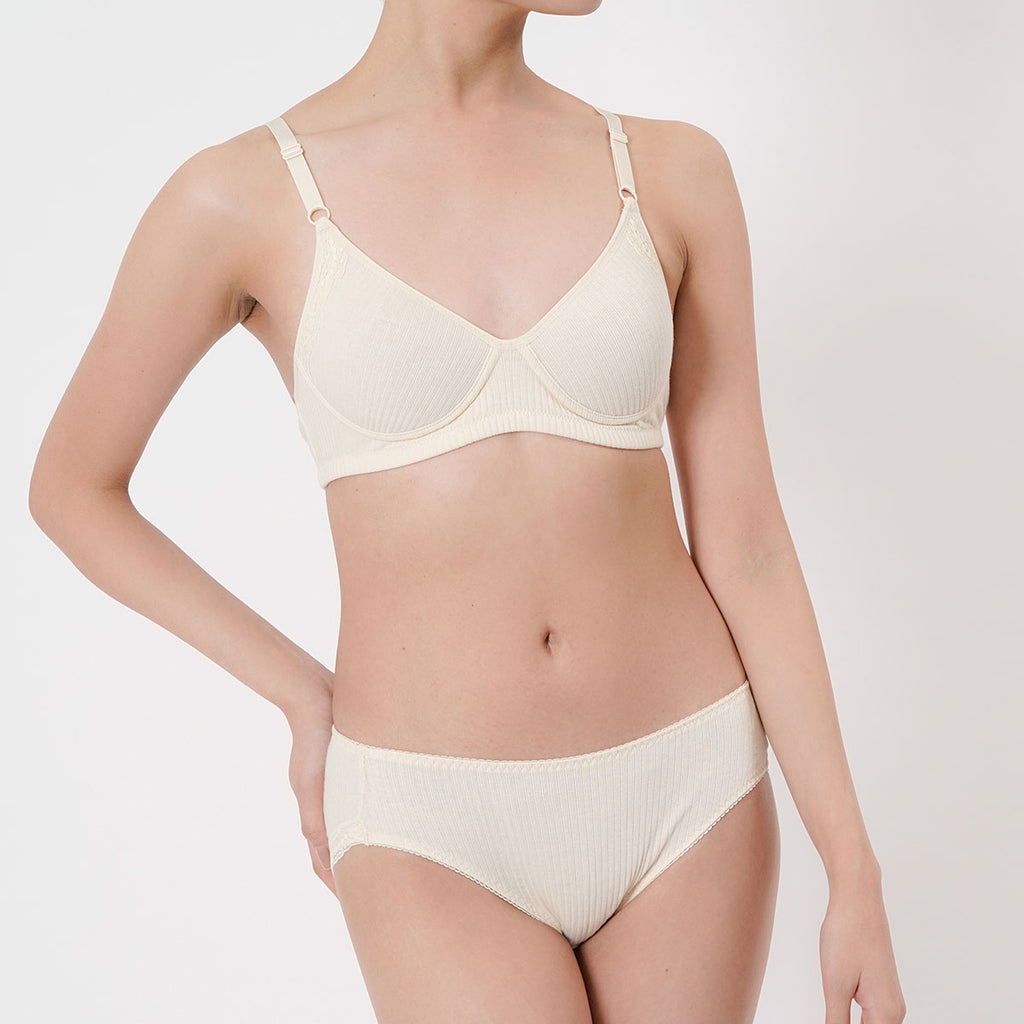 Yellowfin kihada Fukusuke 【kihada】 Molded Bra Plain Part Lace Rib Ladies Women Women Ladies Fukusuke fukuske