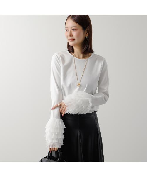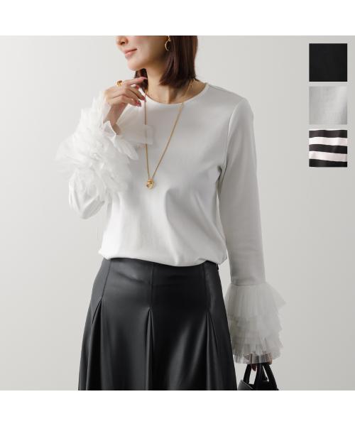 PICCIN PERLA Pitchin Sleeve Tulle Cut and Sew 907140 Women's Crew Neck Cotton Blend Leopard Long Sleeve Color 3 colors