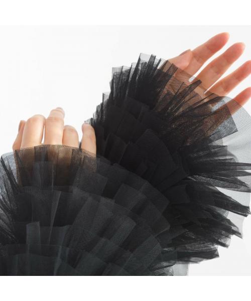The cuffs are adorned with tulle tiered frills, creating a design that is simple yet glamorous and impactful.
